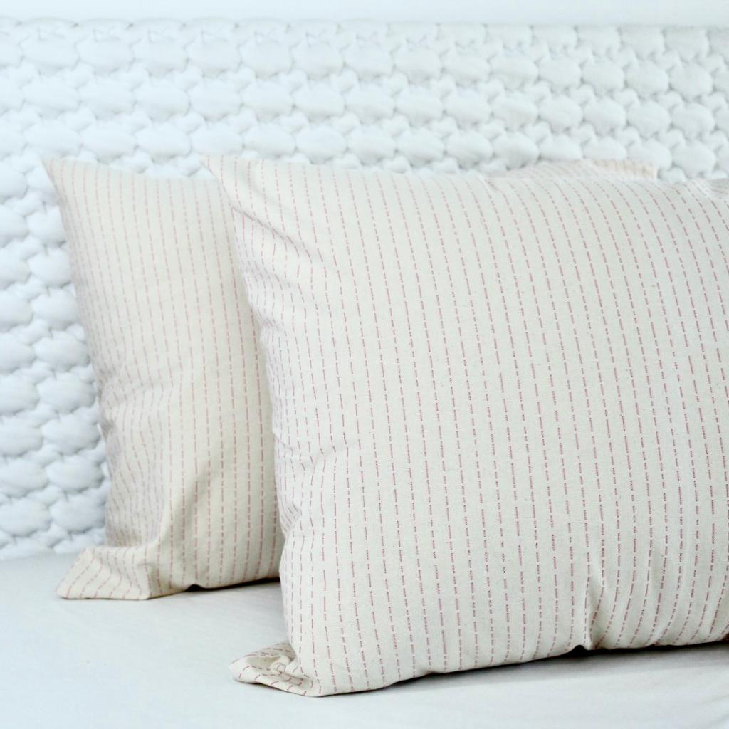 Fronha de Almofada Decorativa, em algodão com padrão de traços em tons de beje com Rosa Fuxia. Abertura com fecho.