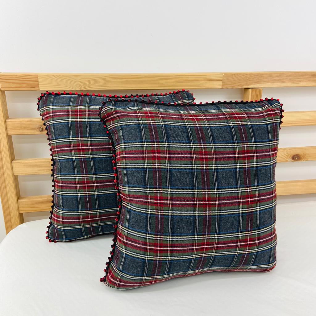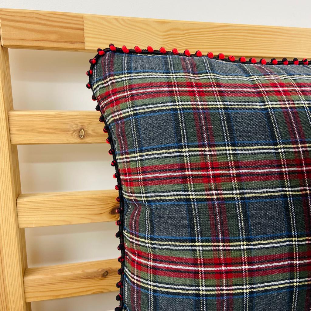 Almofada Decorativa Xadrez Pompom
