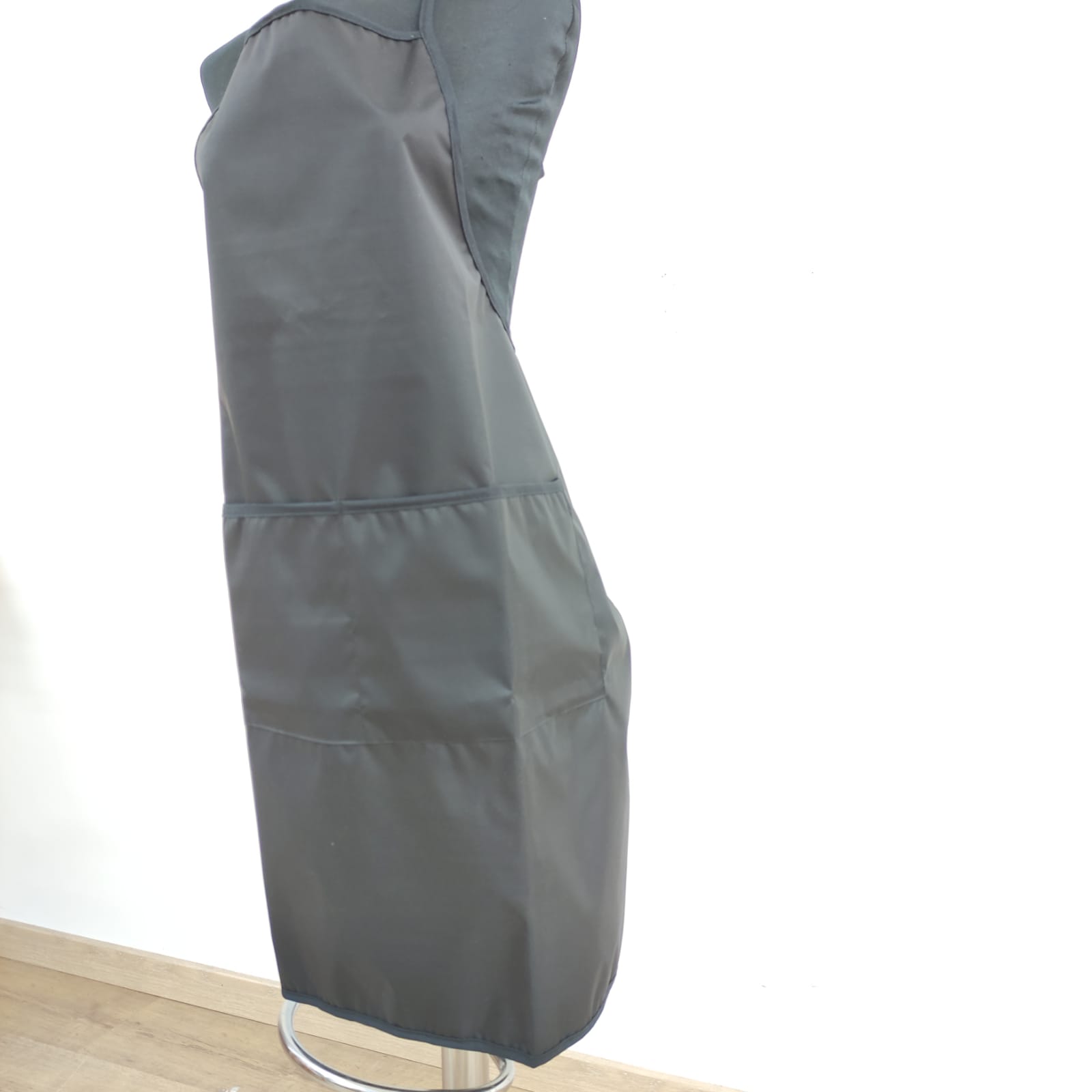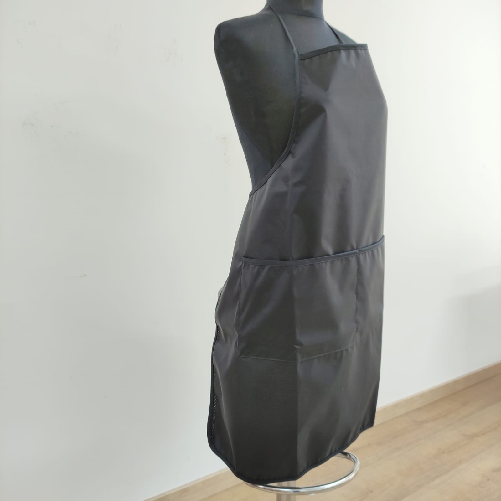Avental de cozinheiro plastificado, largo e prático. Contém um bolso grande.