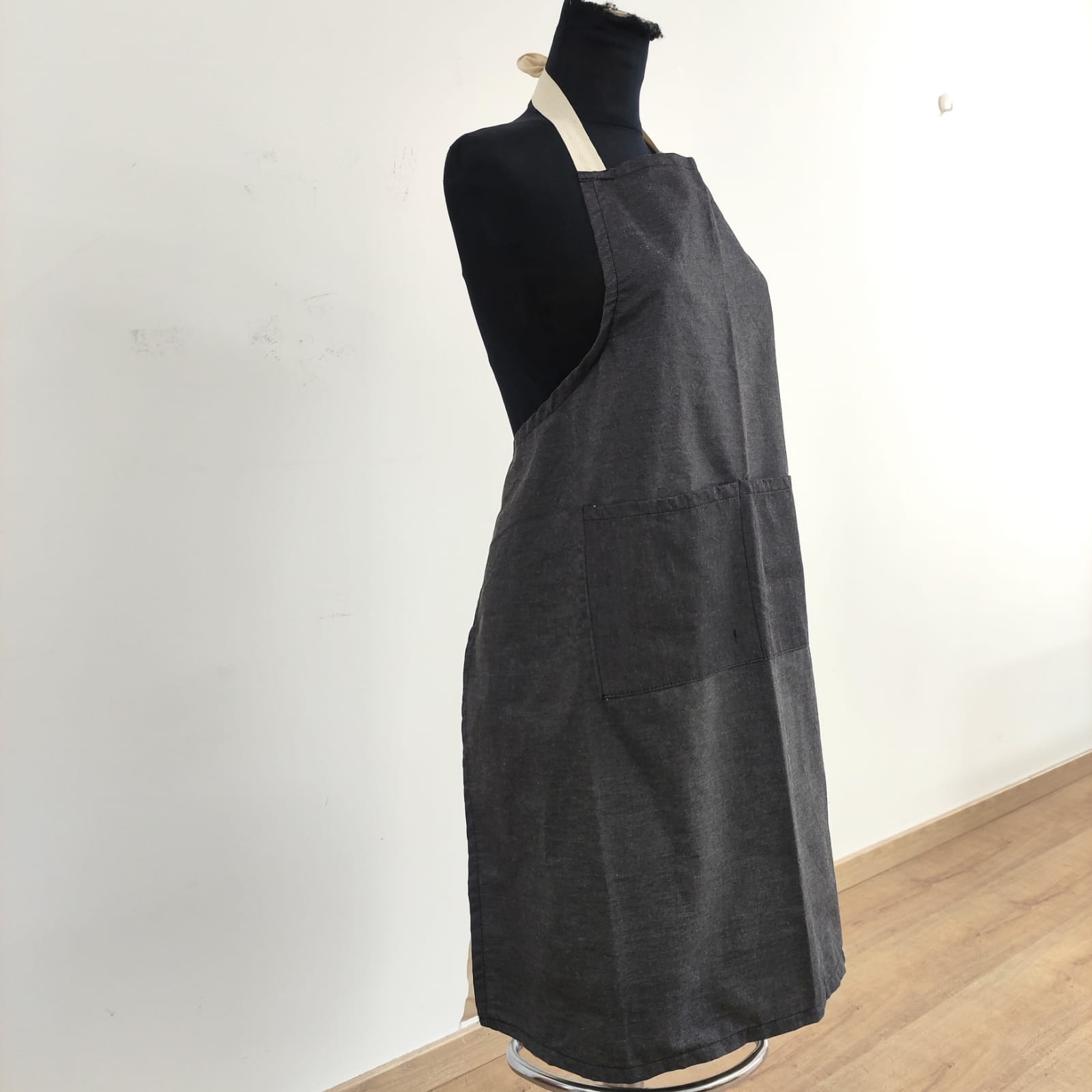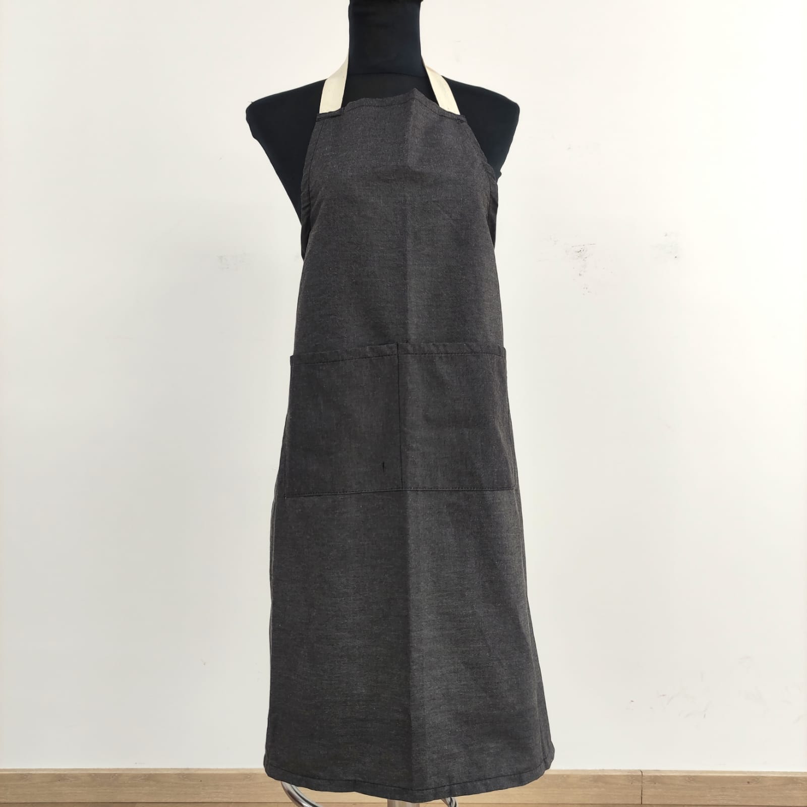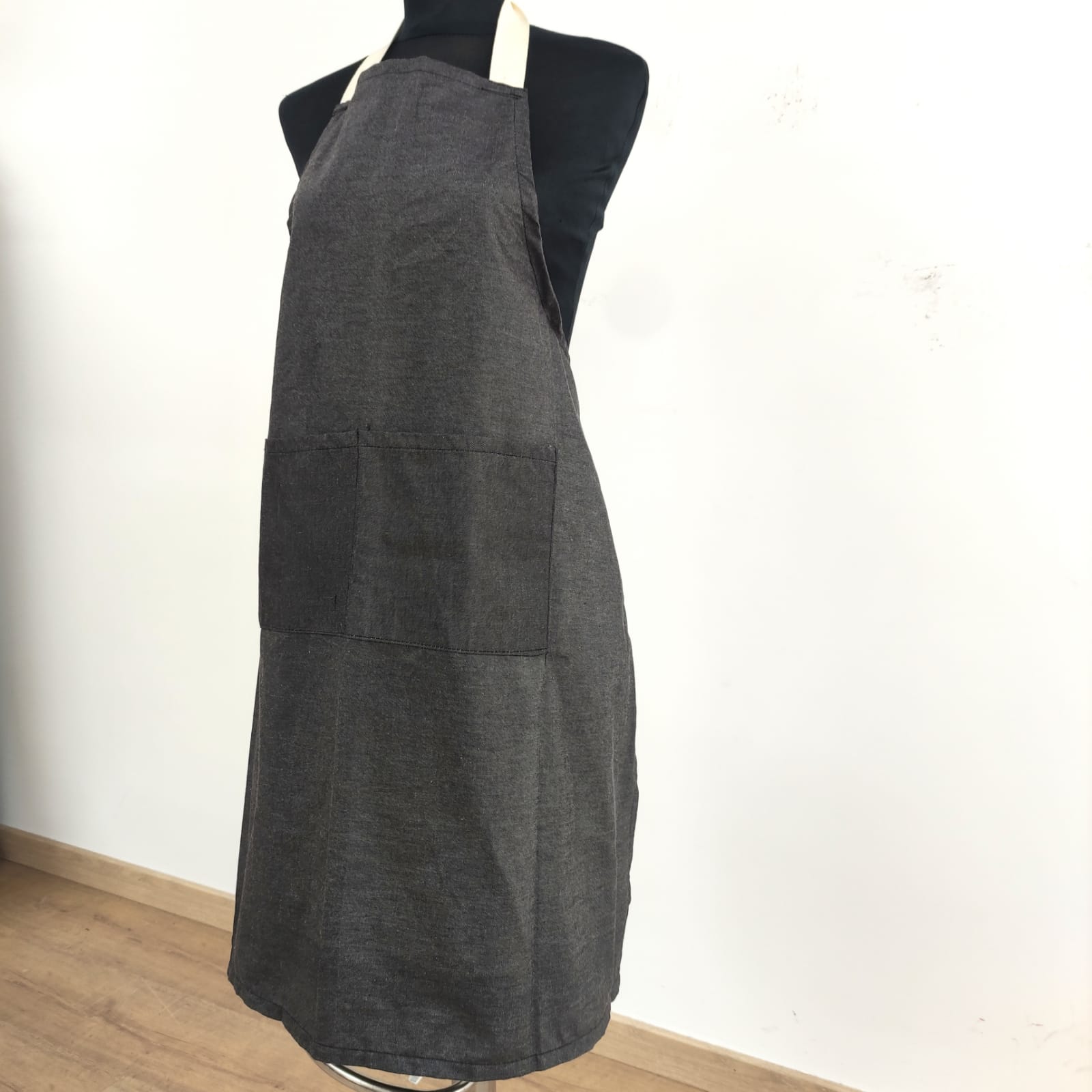 Avental de cozinheiro, largo e prático de fácil lavagem e secagem. Modelo elegante, este avental é ajustável e contém dois bolsos grandes.