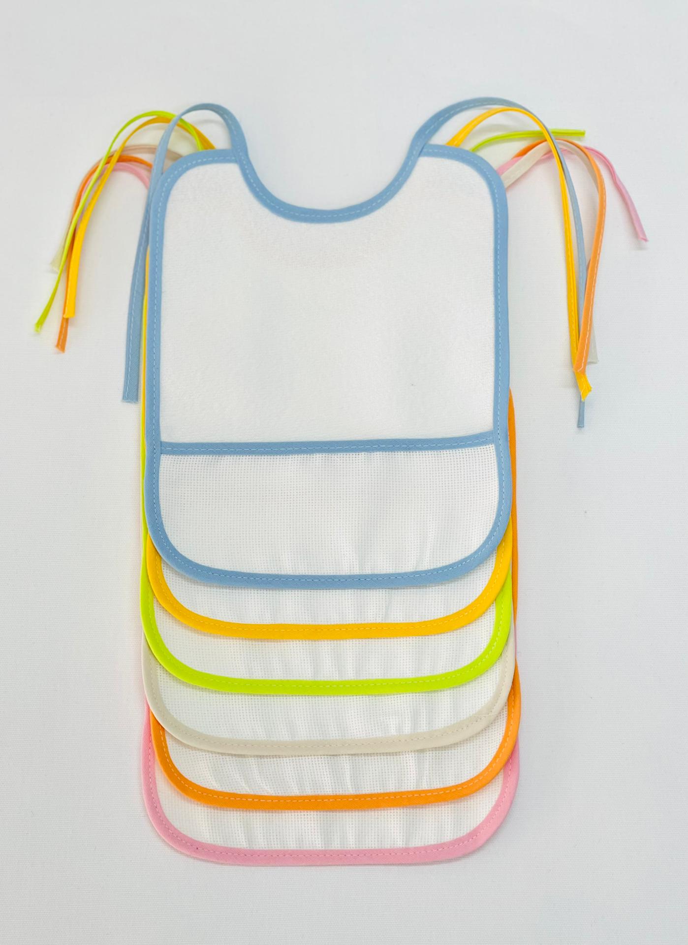 Babete com bolso para bordar e forro com Plástico adaptado ao corpo do bebé.
