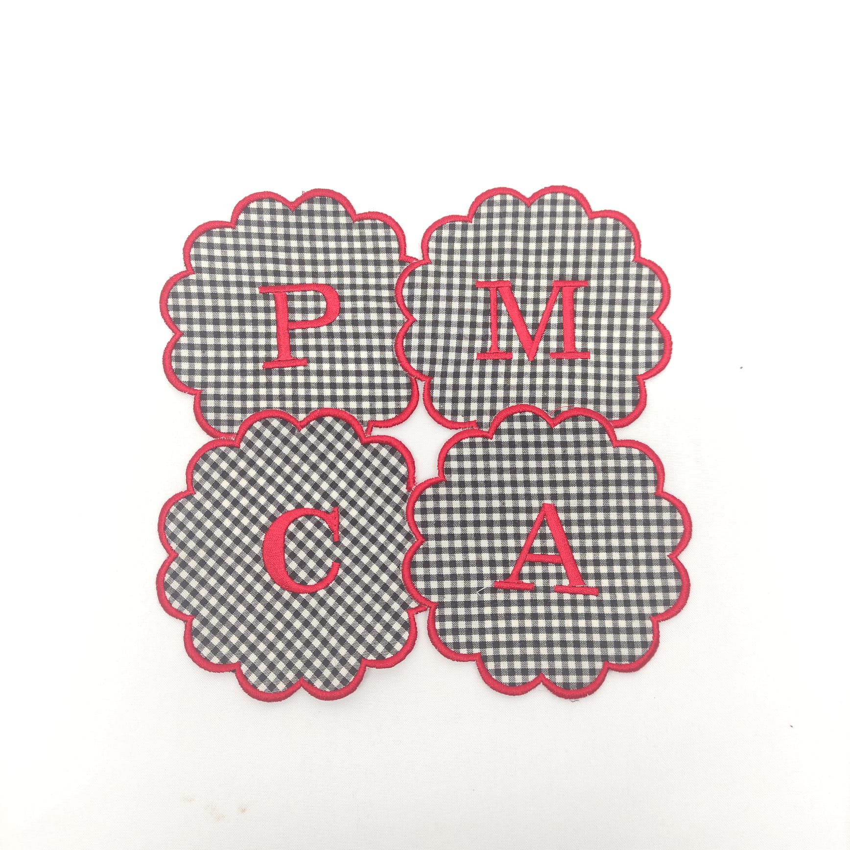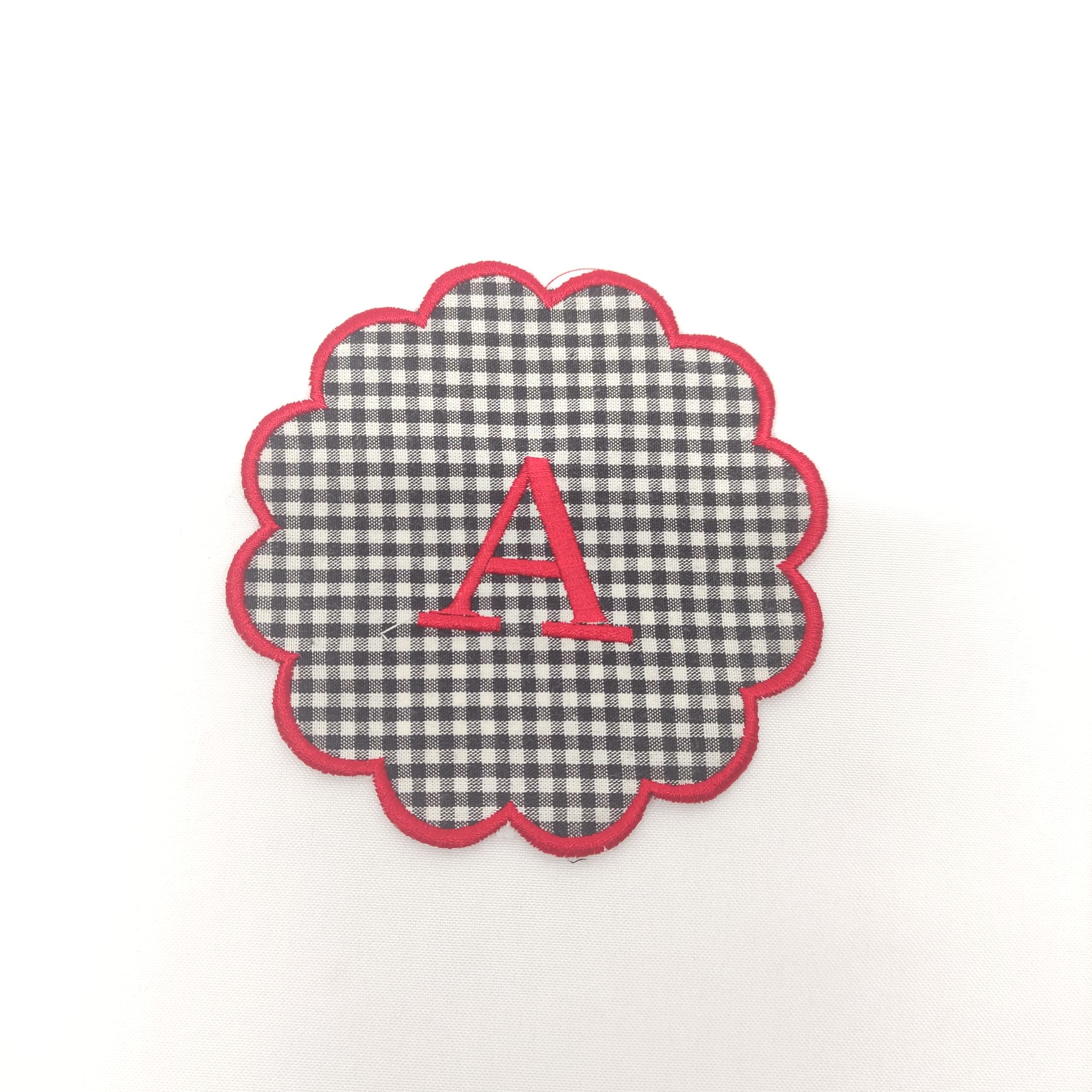 Base Pão/Copo Vichy com acabamento em rolinho com ondas. Disponível em todas as letras do alfabeto.