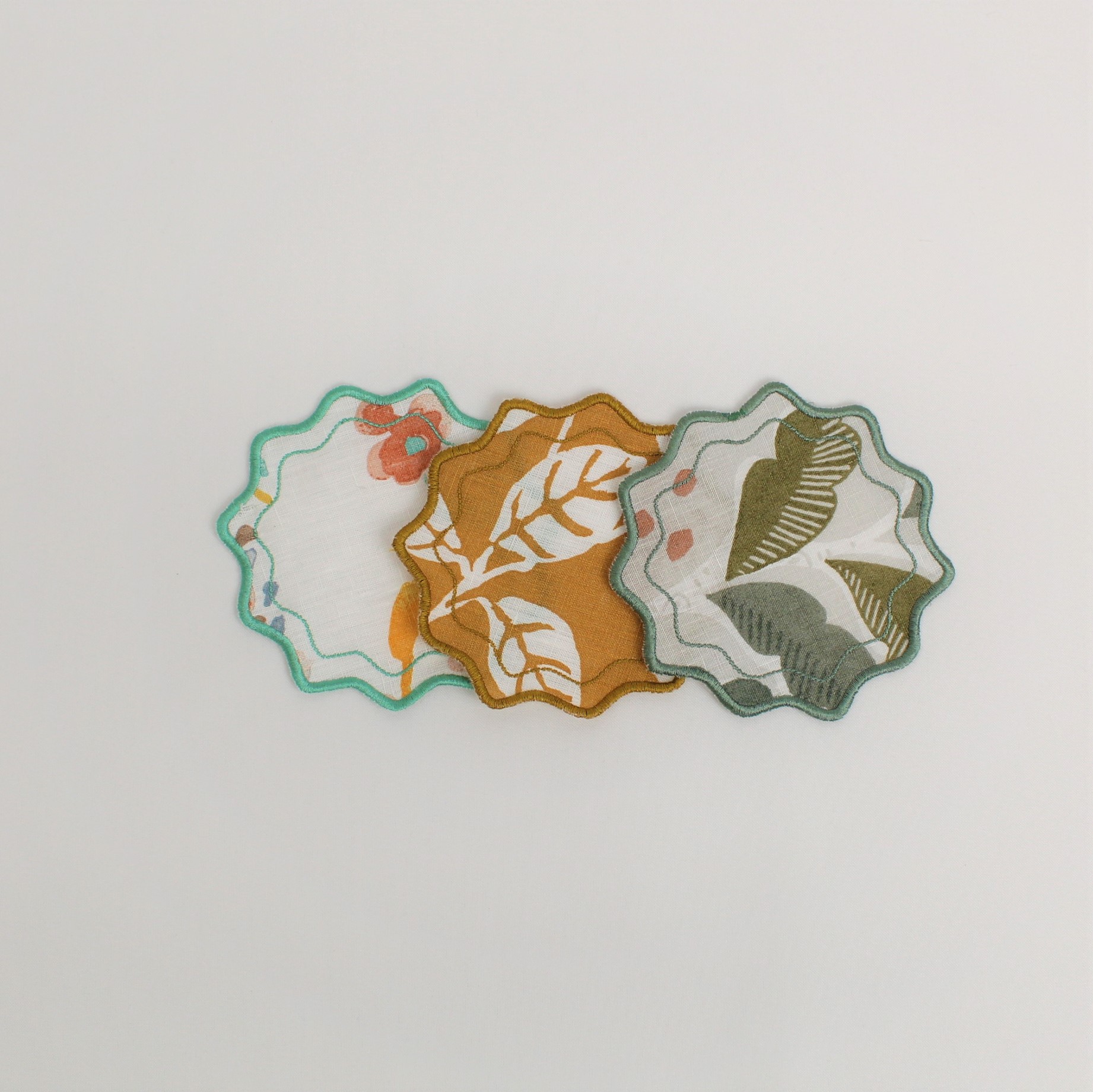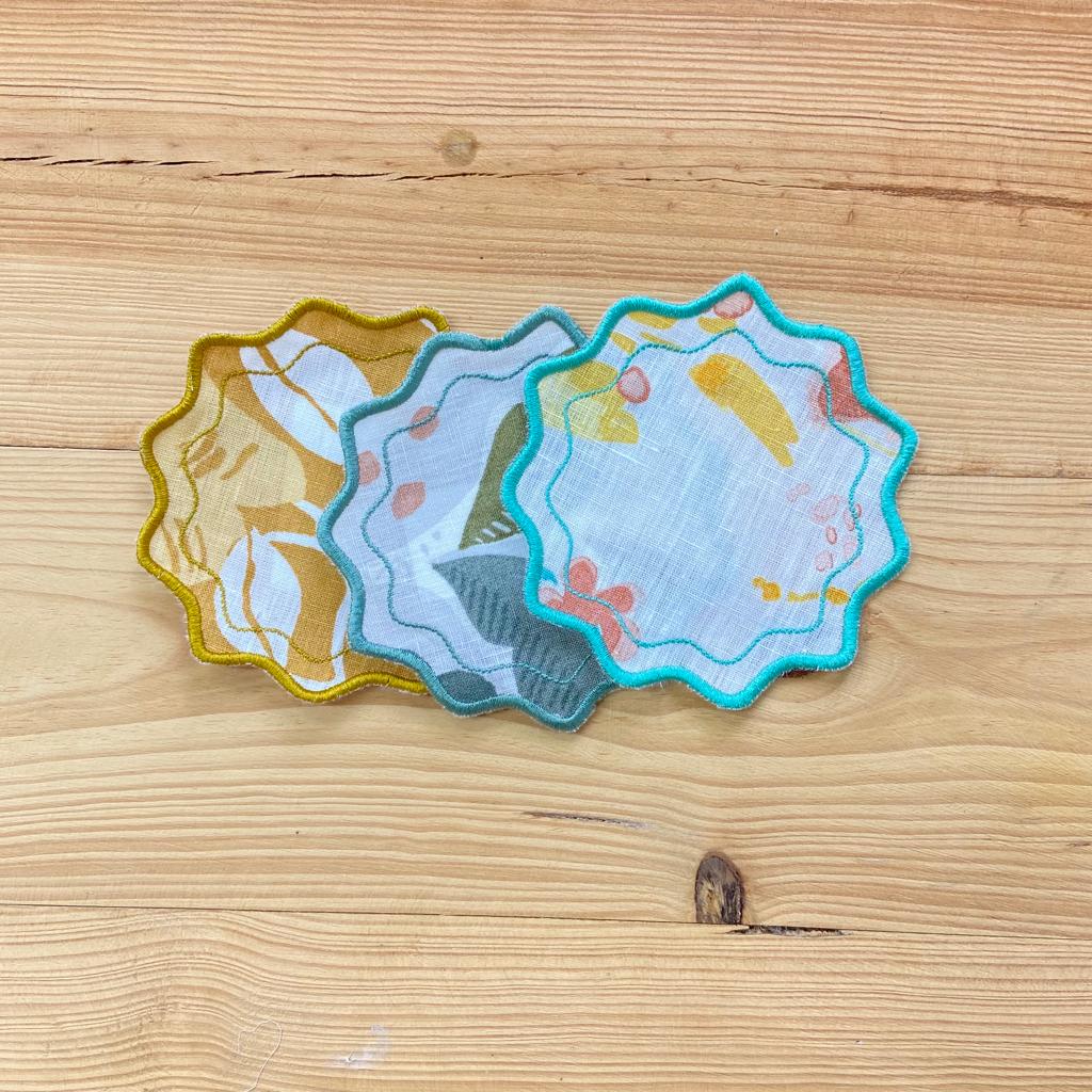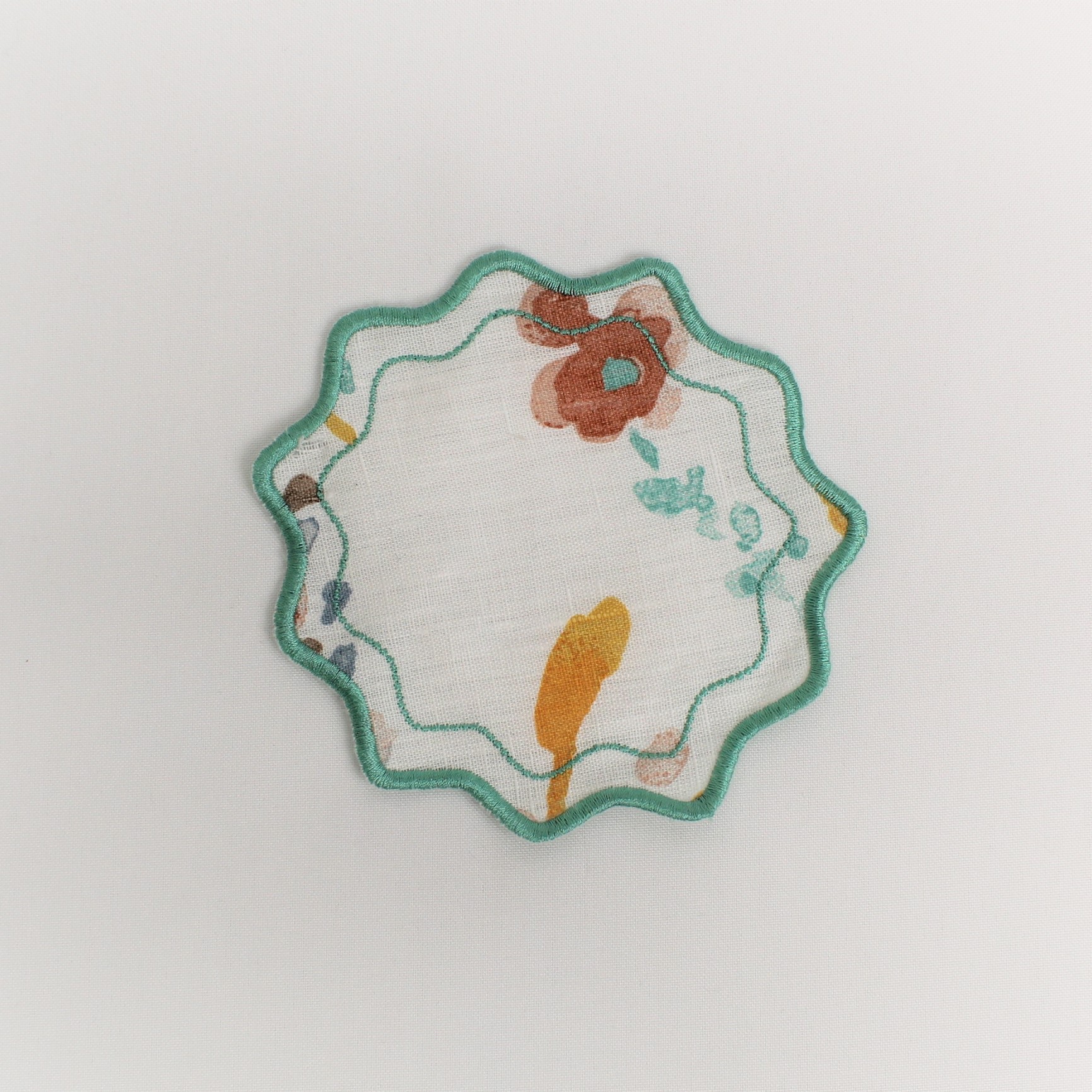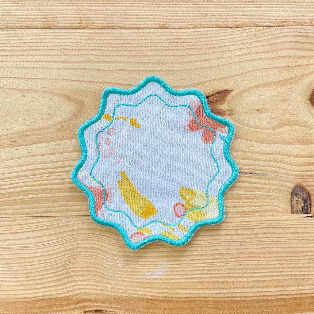 Base Pão/Copo em linho, tecido com padrão, acabamento em rolinho modelo estrela. Disponivel em várias cores.