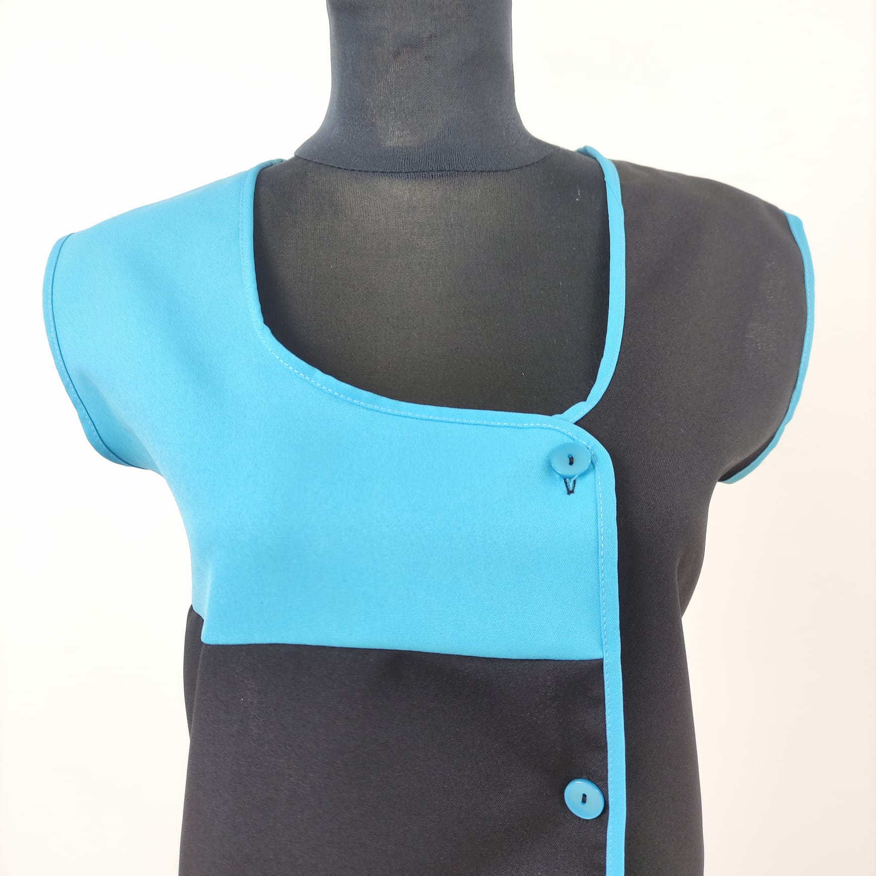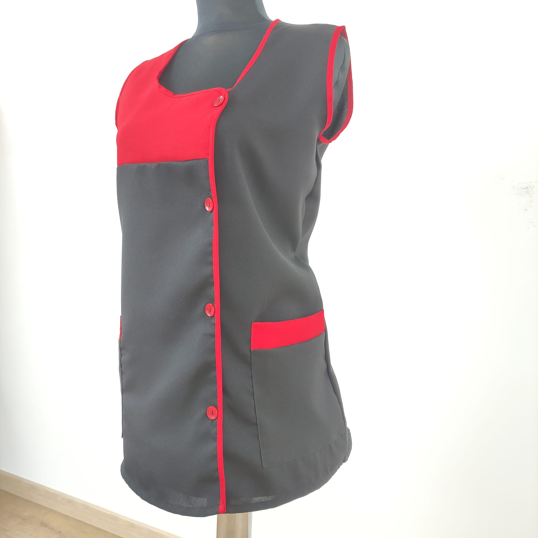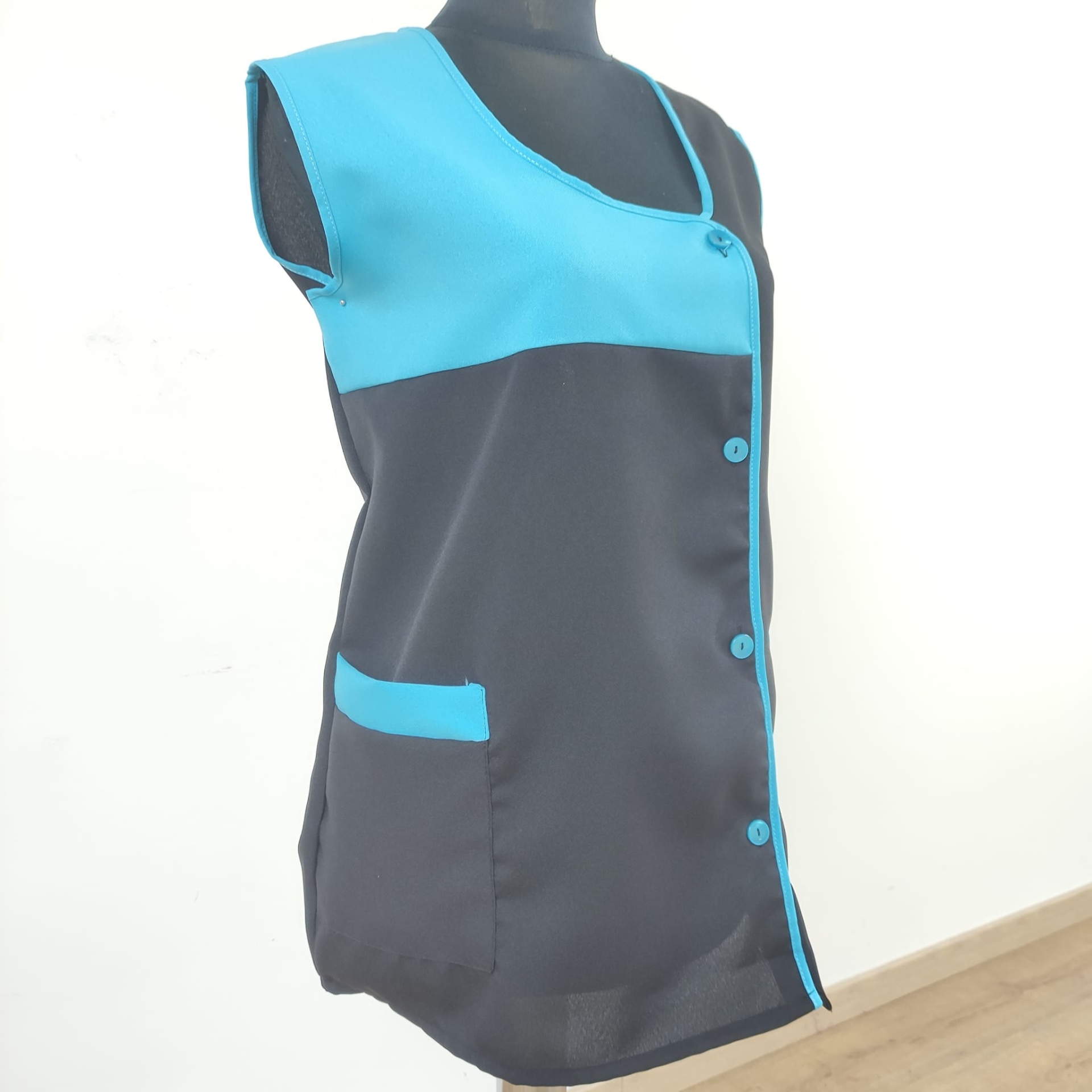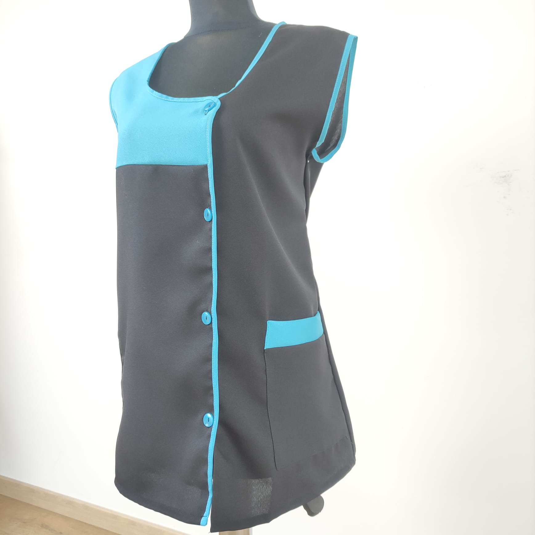 Bata lisa com detalhe de cor. Com botões na frente e bolsos nas laterais,  este é um modelo prático e de fácil lavagem.