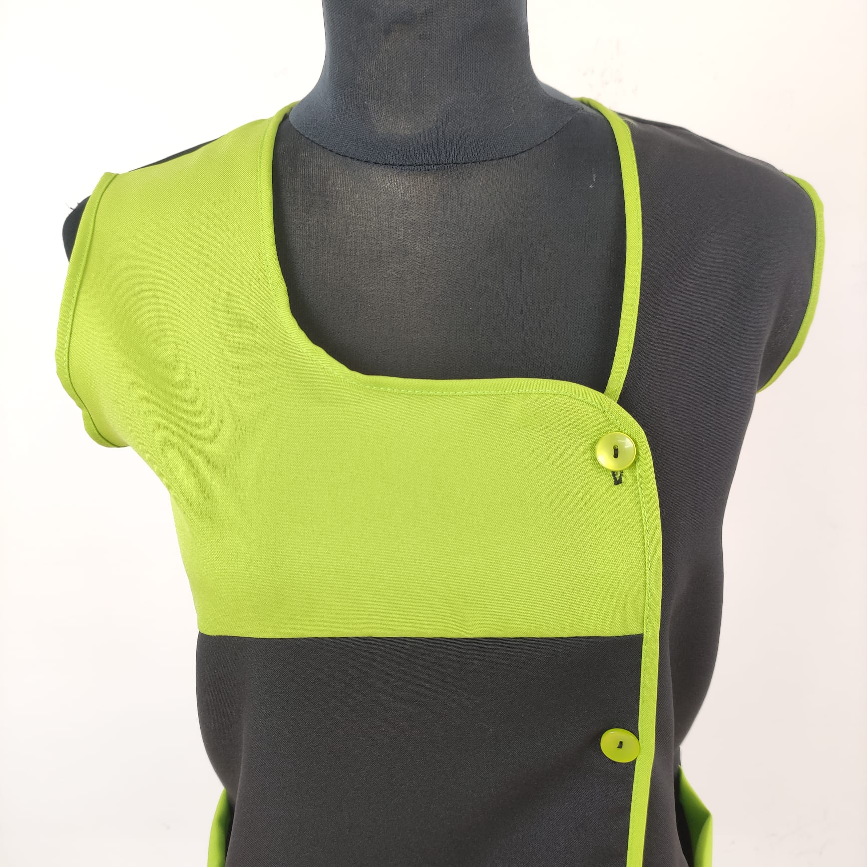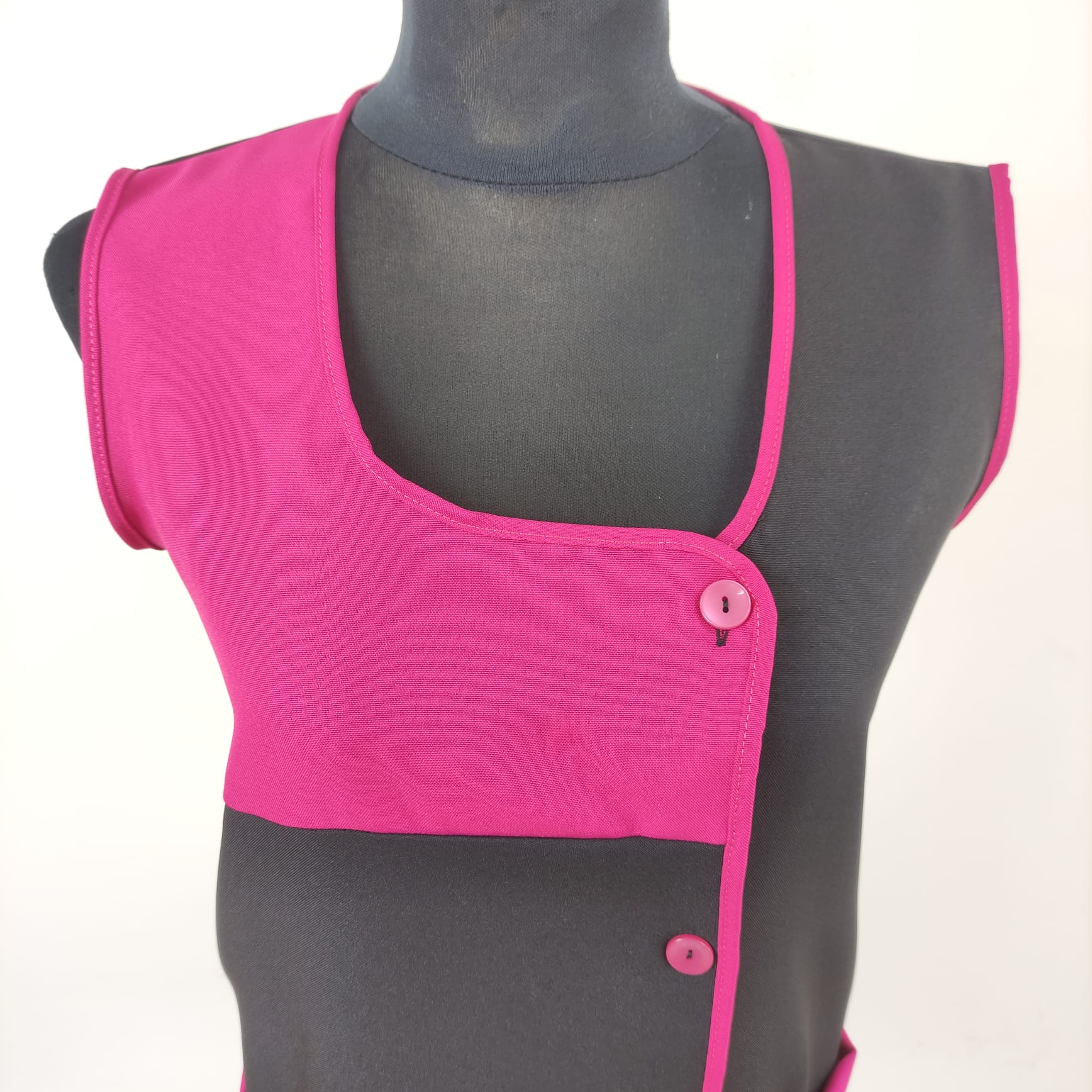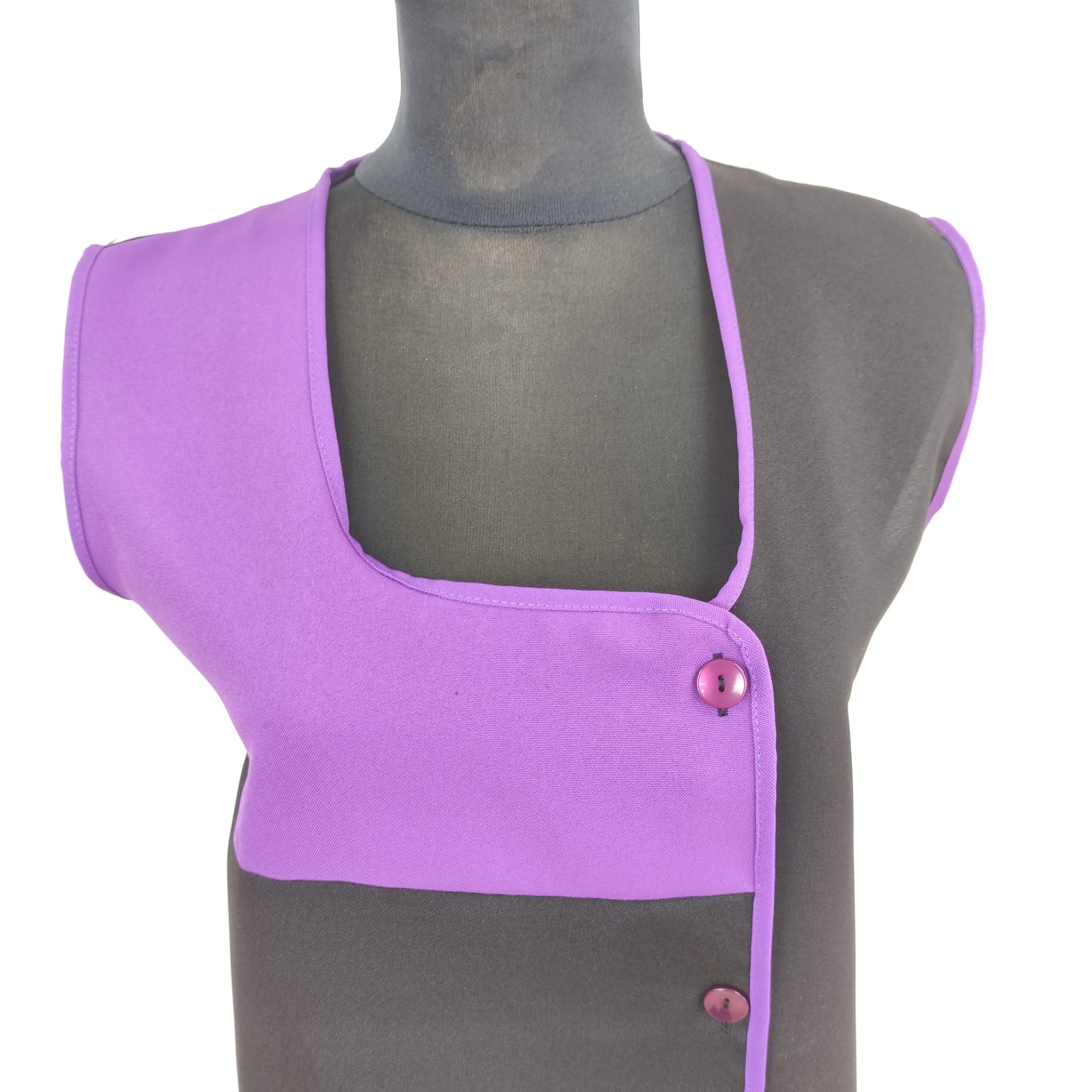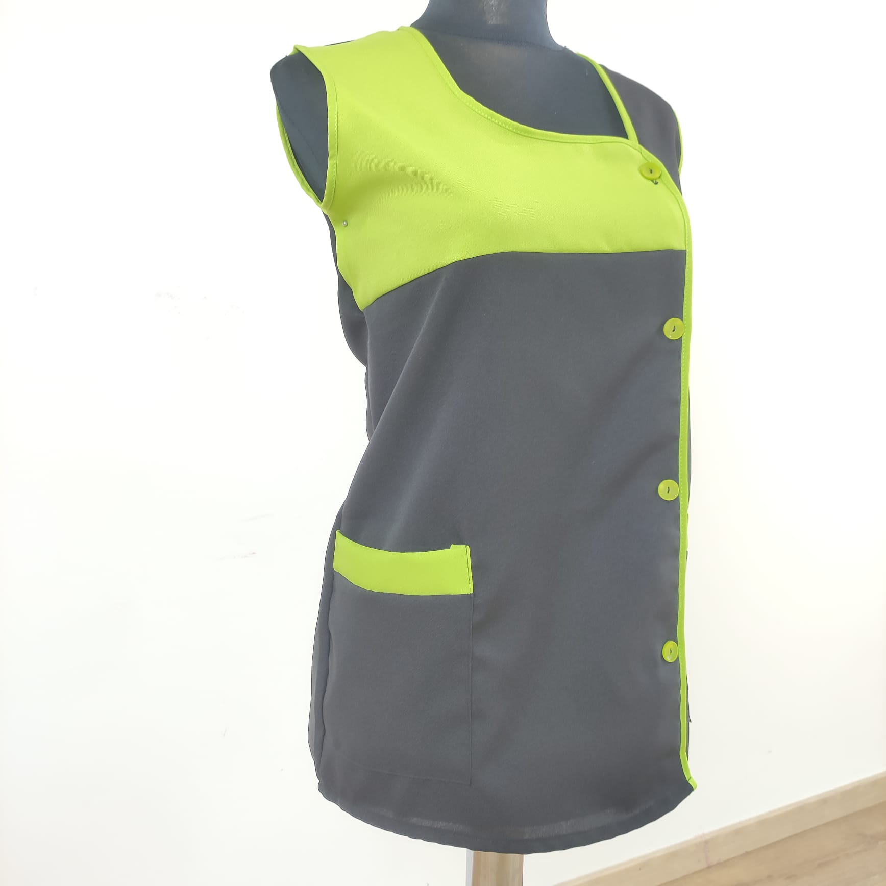 Bata lisa com detalhe de cor. Com botões na frente e bolsos nas laterais,  este é um modelo prático e de fácil lavagem.
