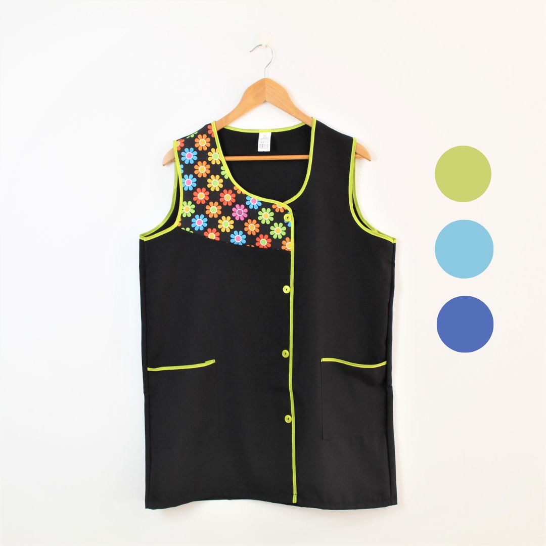 Com botões na frente e bolsos nas laterais,  este é um modelo prático e de fácil lavagem.