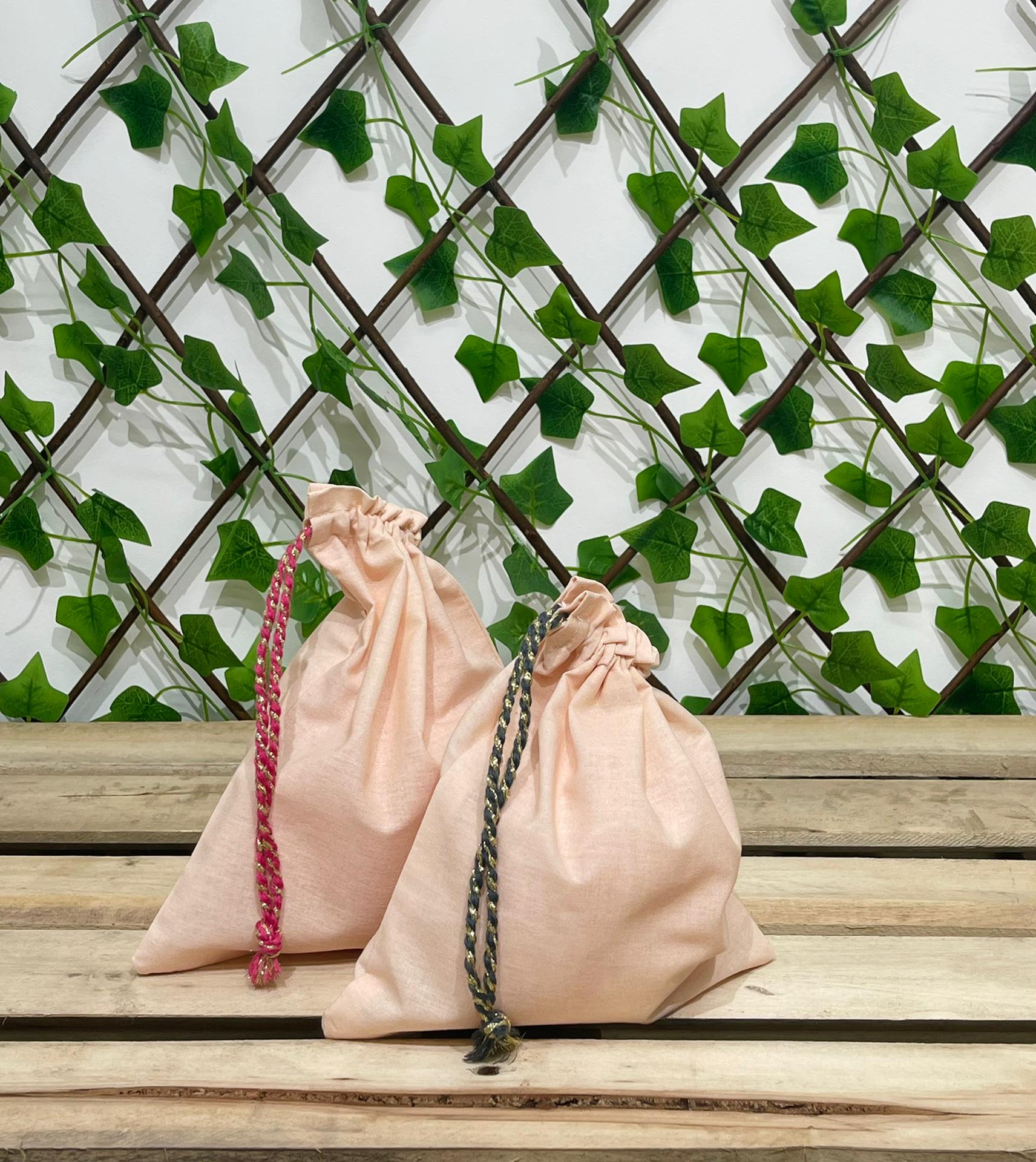 Bolsa em pano, 100% algodão. Disponível na cor Salmão e cordão com brilho.