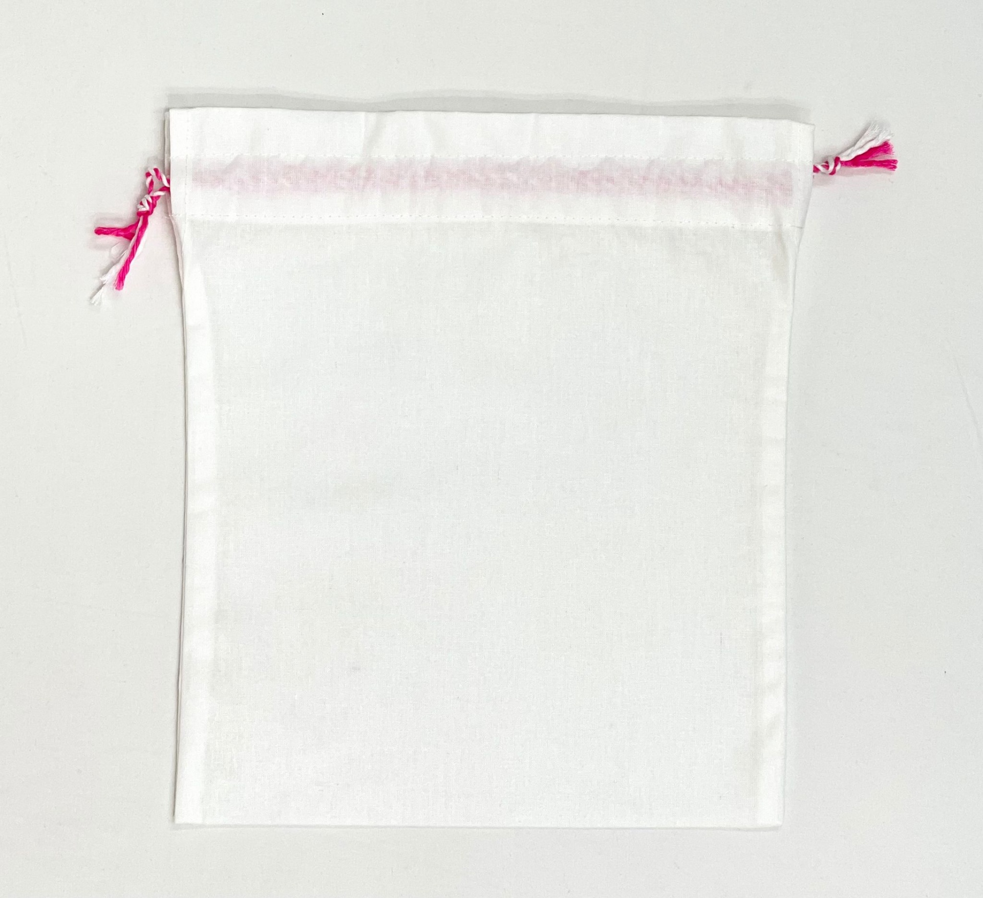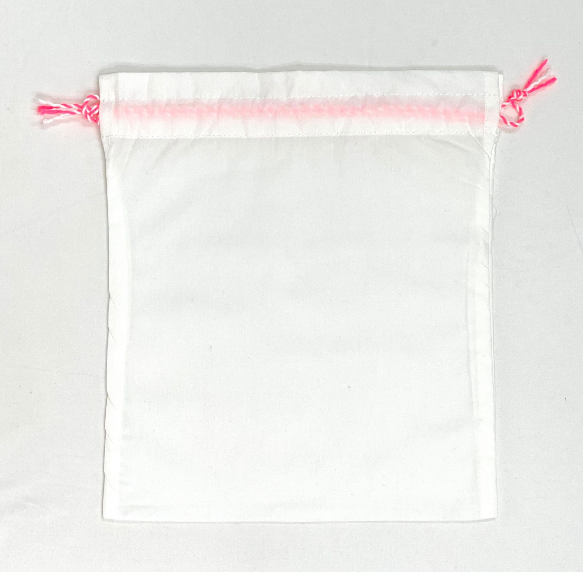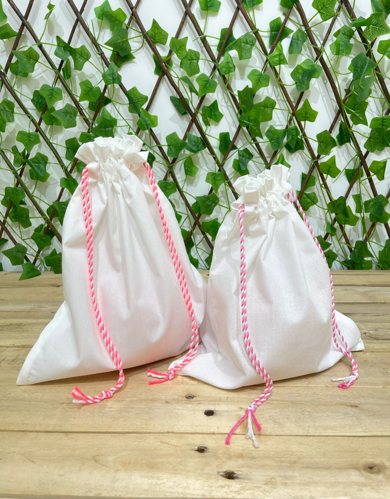 Bolsa em pano, 100% algodão. Disponível na cor branca com cordão Rosa e rosa Fluorescência