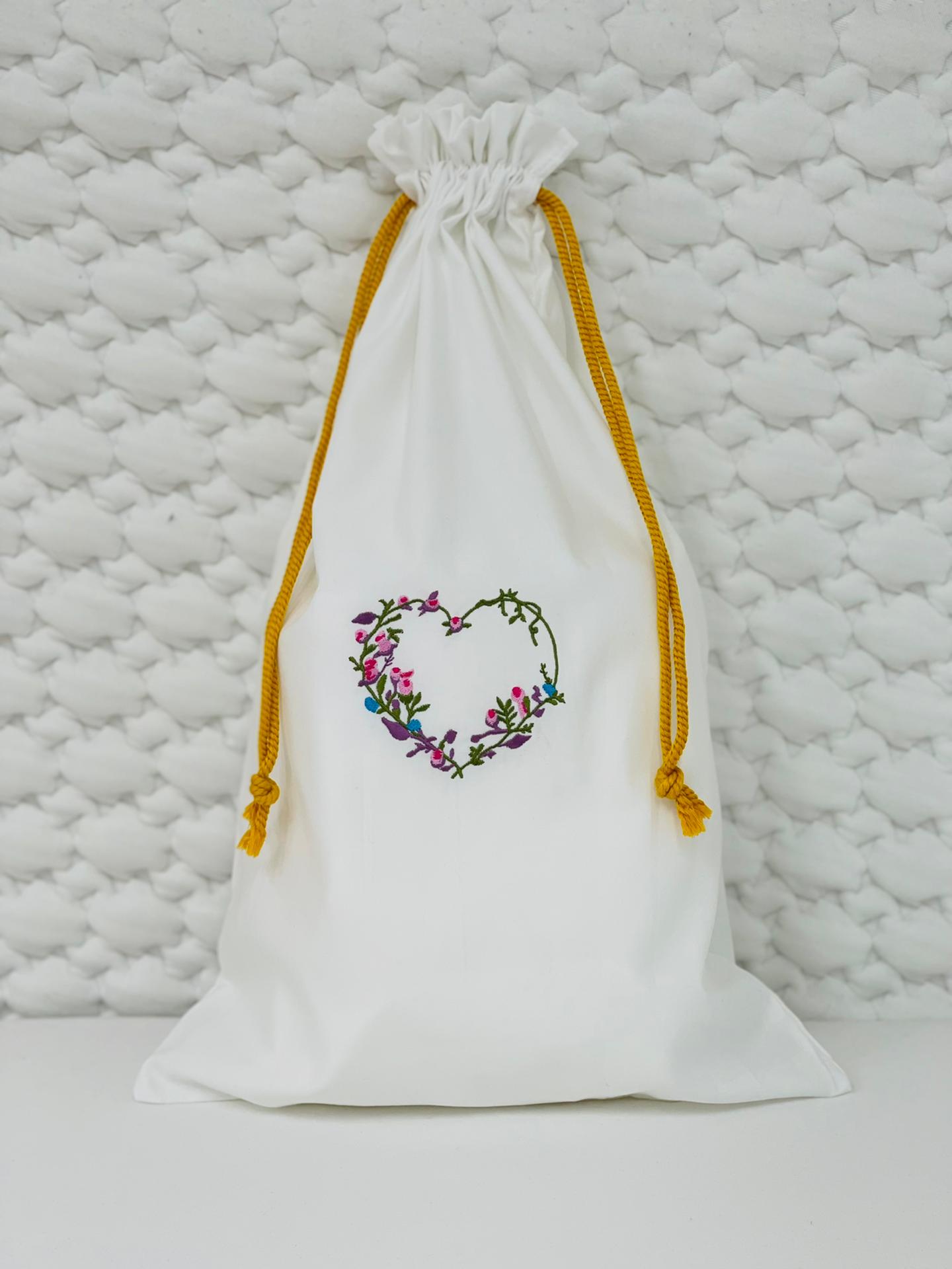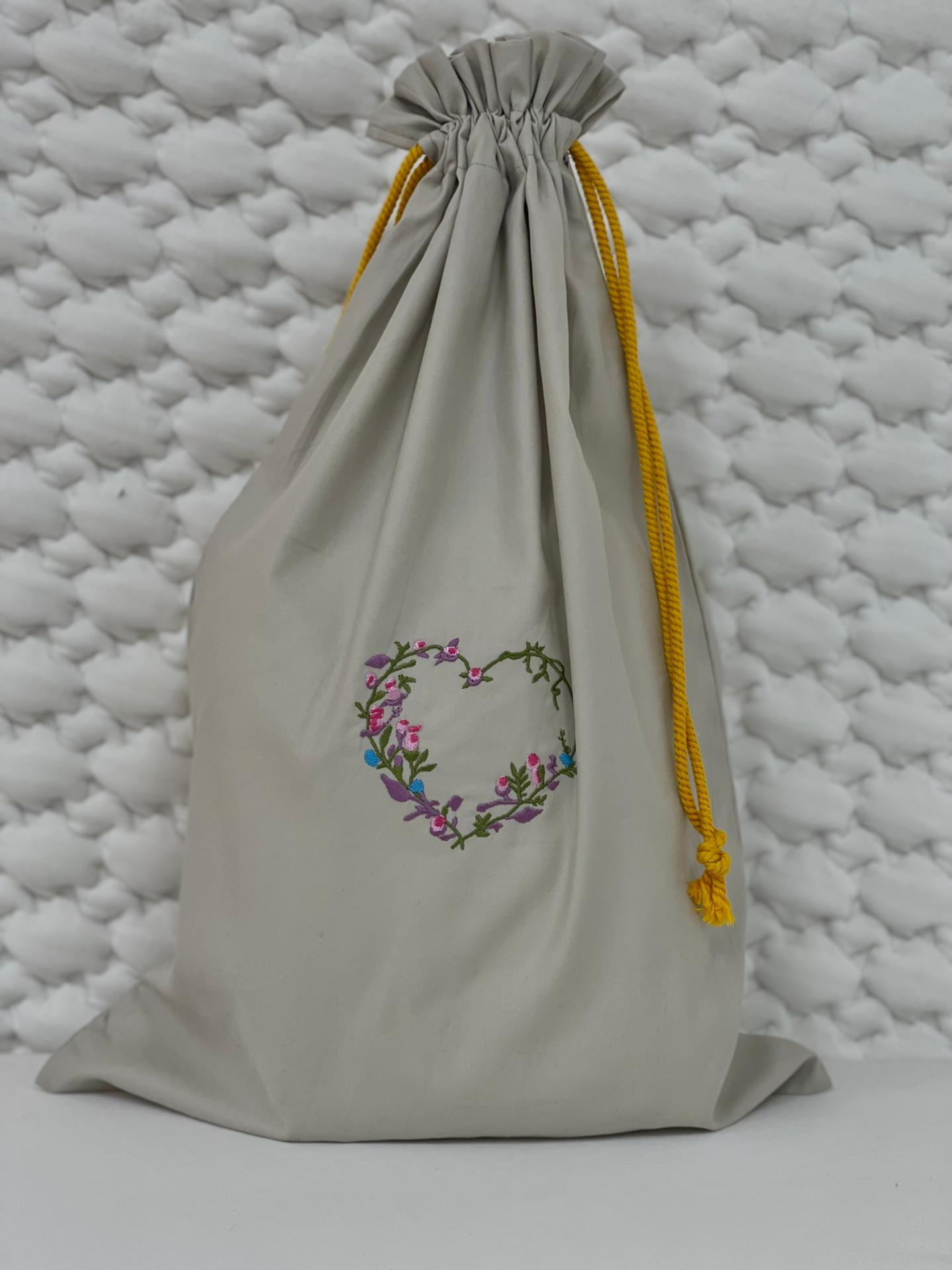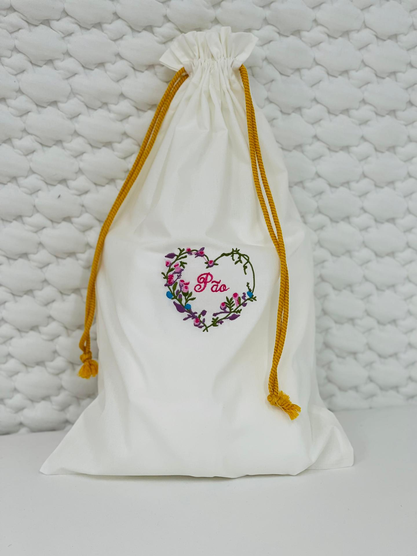 Saco em pano com cordão, 100% algodão disponível em várias cores.
