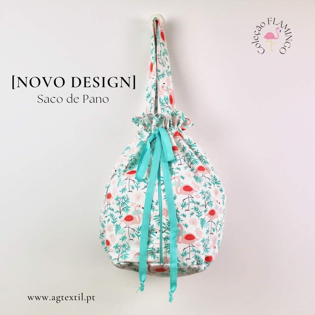 Saco em tecido reutilizável, fabricado com tecido de qualidade para uma estabilidade e durabilidade maior! Tecido estampado coleção flamingo, com aplicação de renda e de fecho prático e elegante.