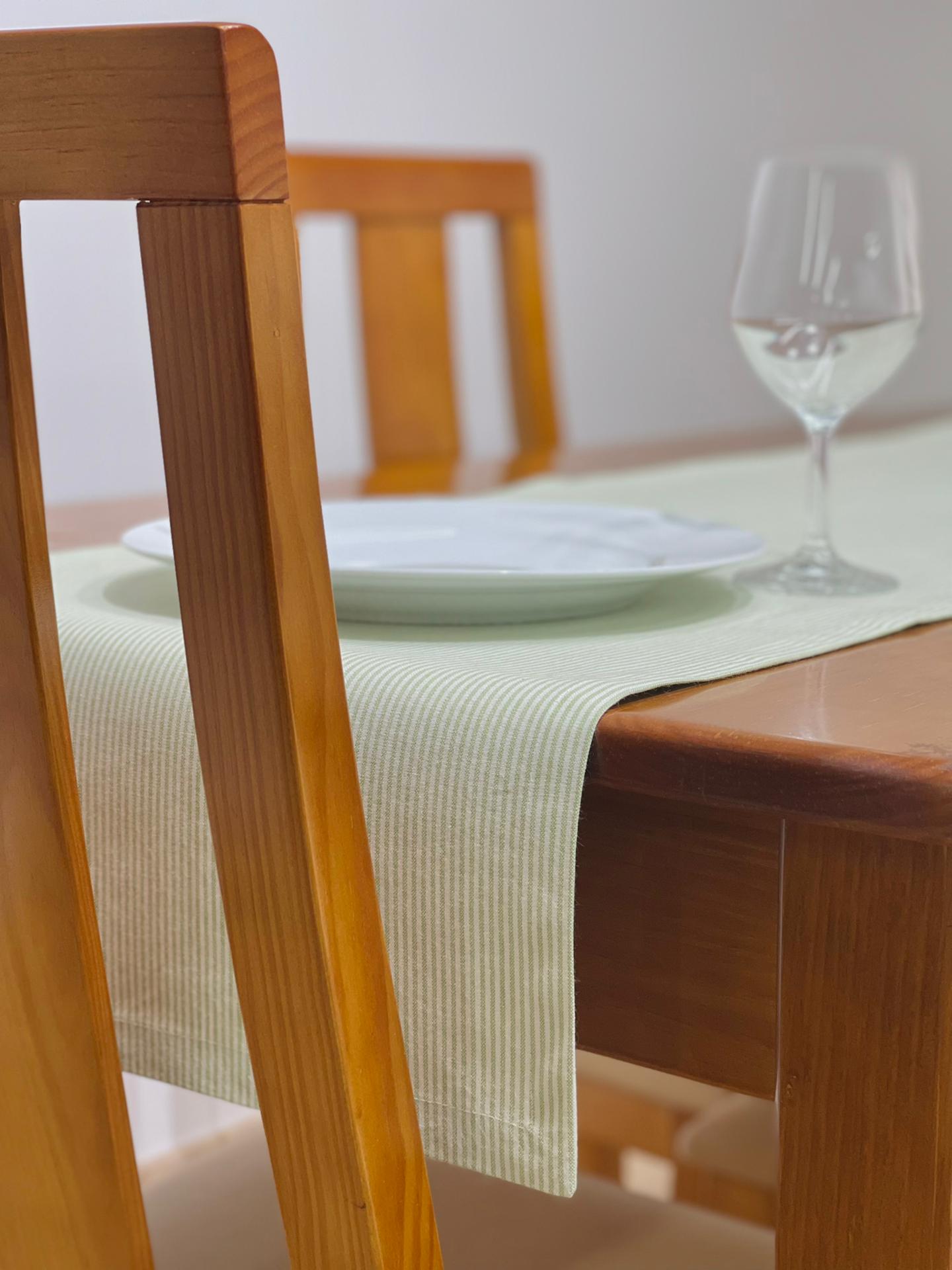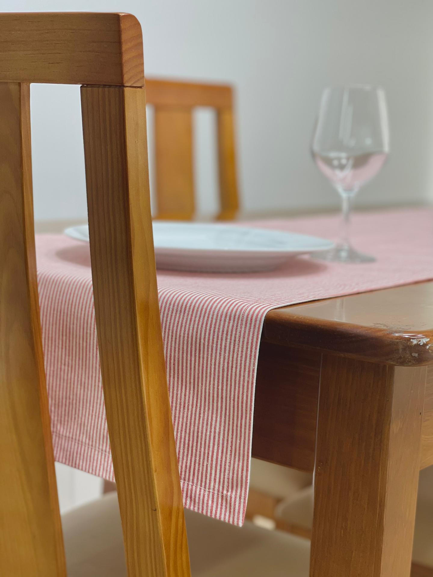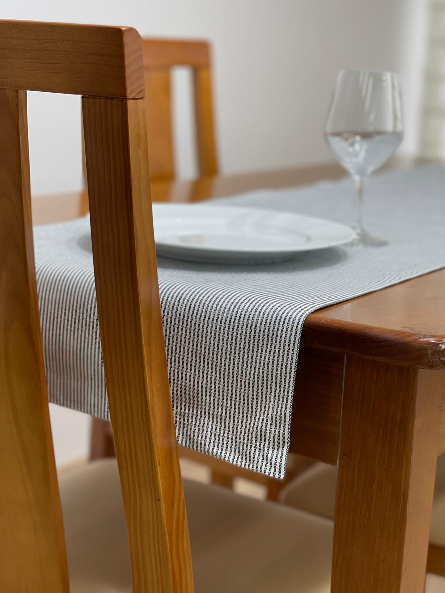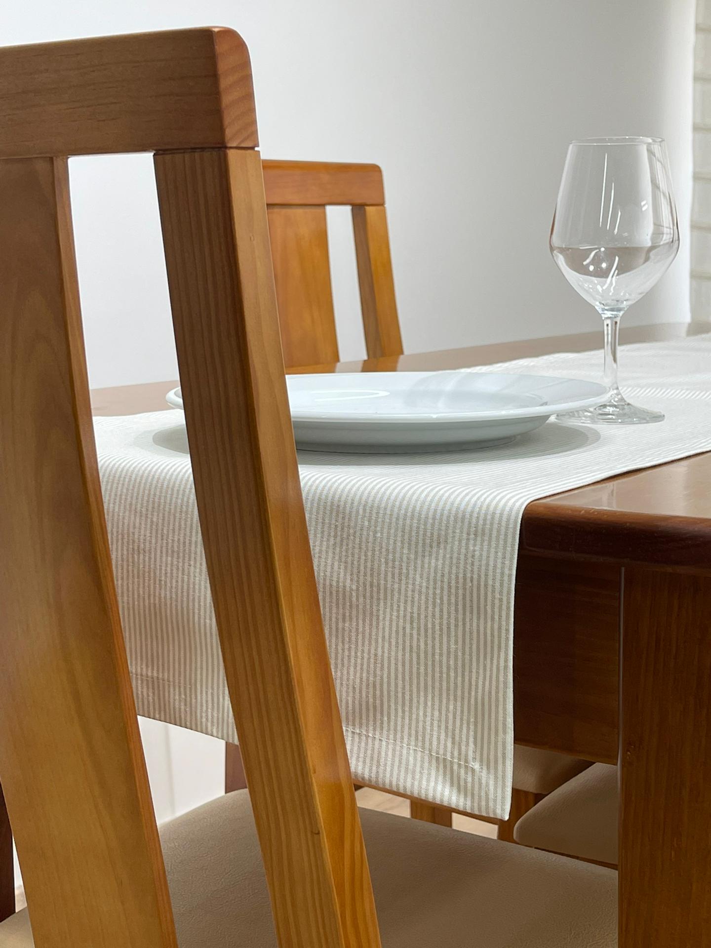 Caminho de mesa em algodão básico com riscas.