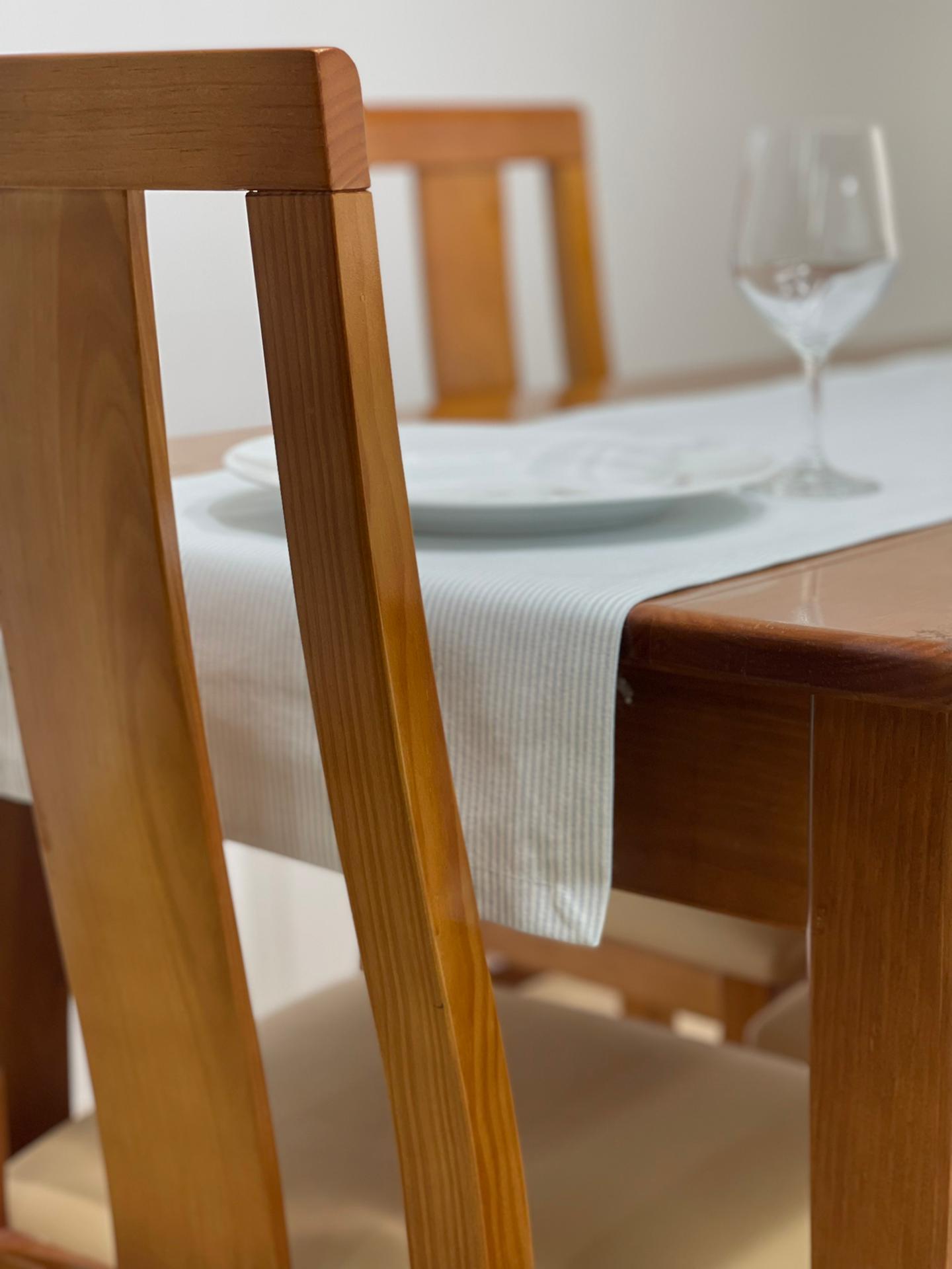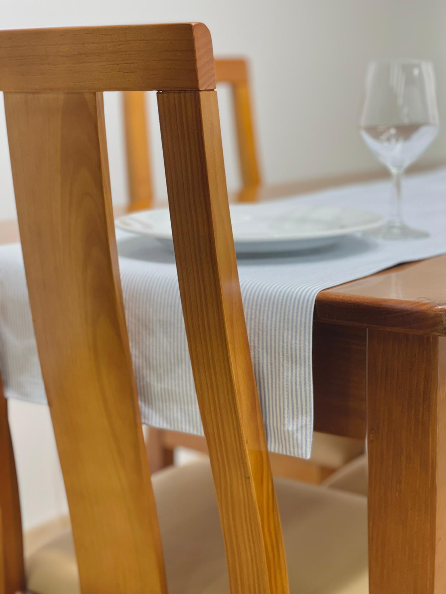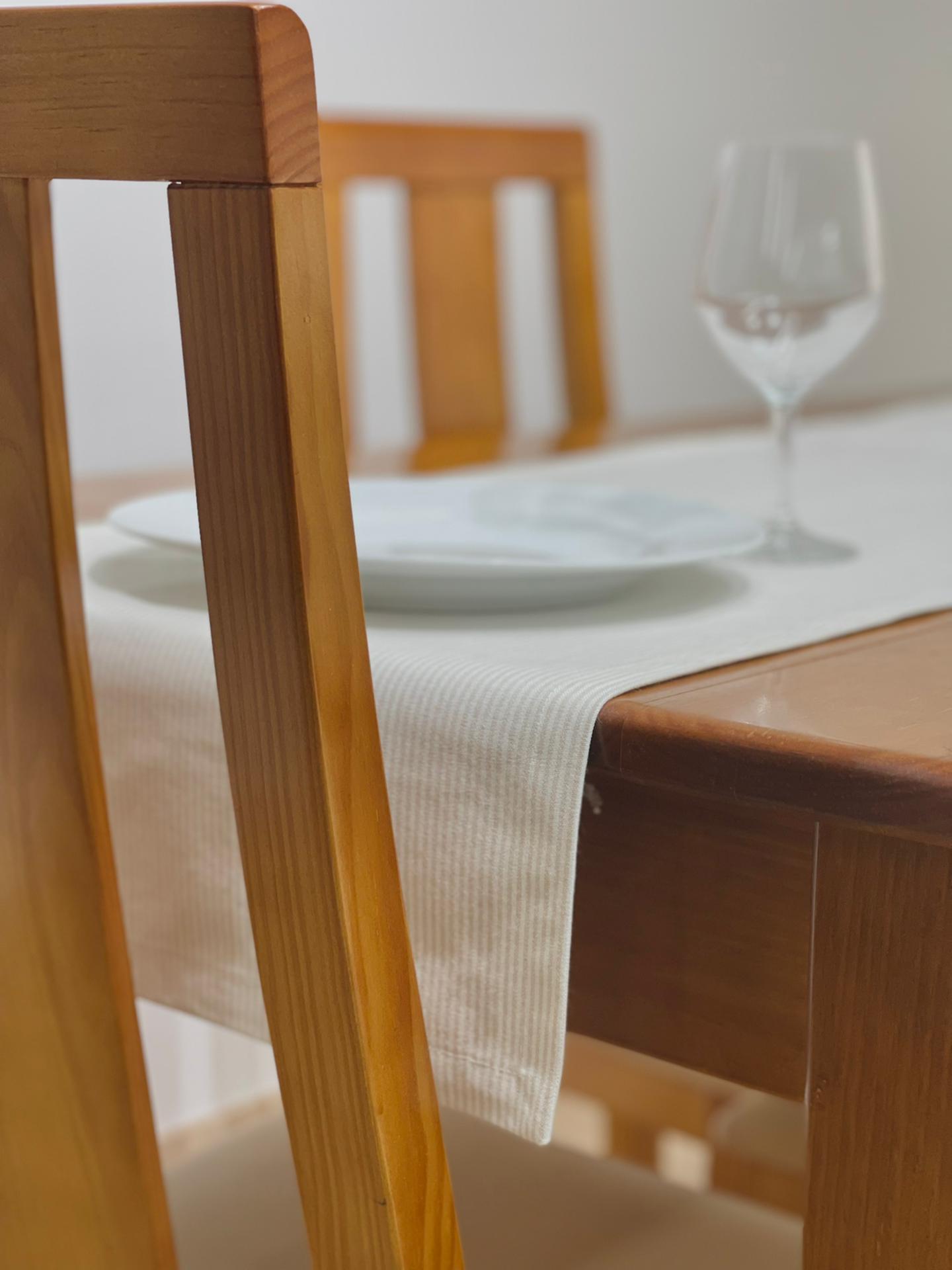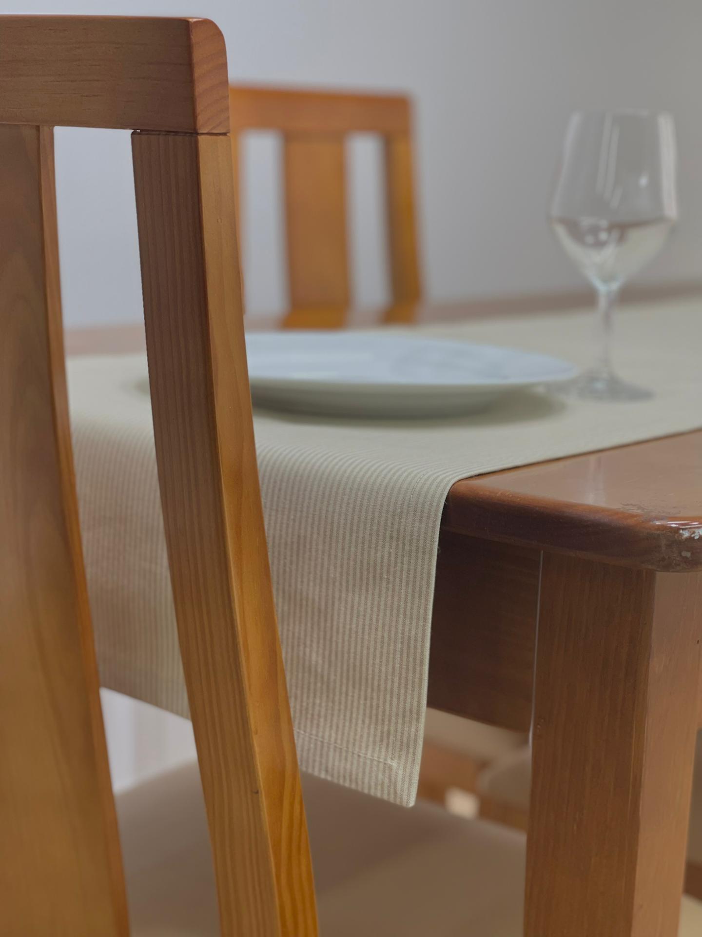 Caminho de mesa em algodão básico com riscas.
