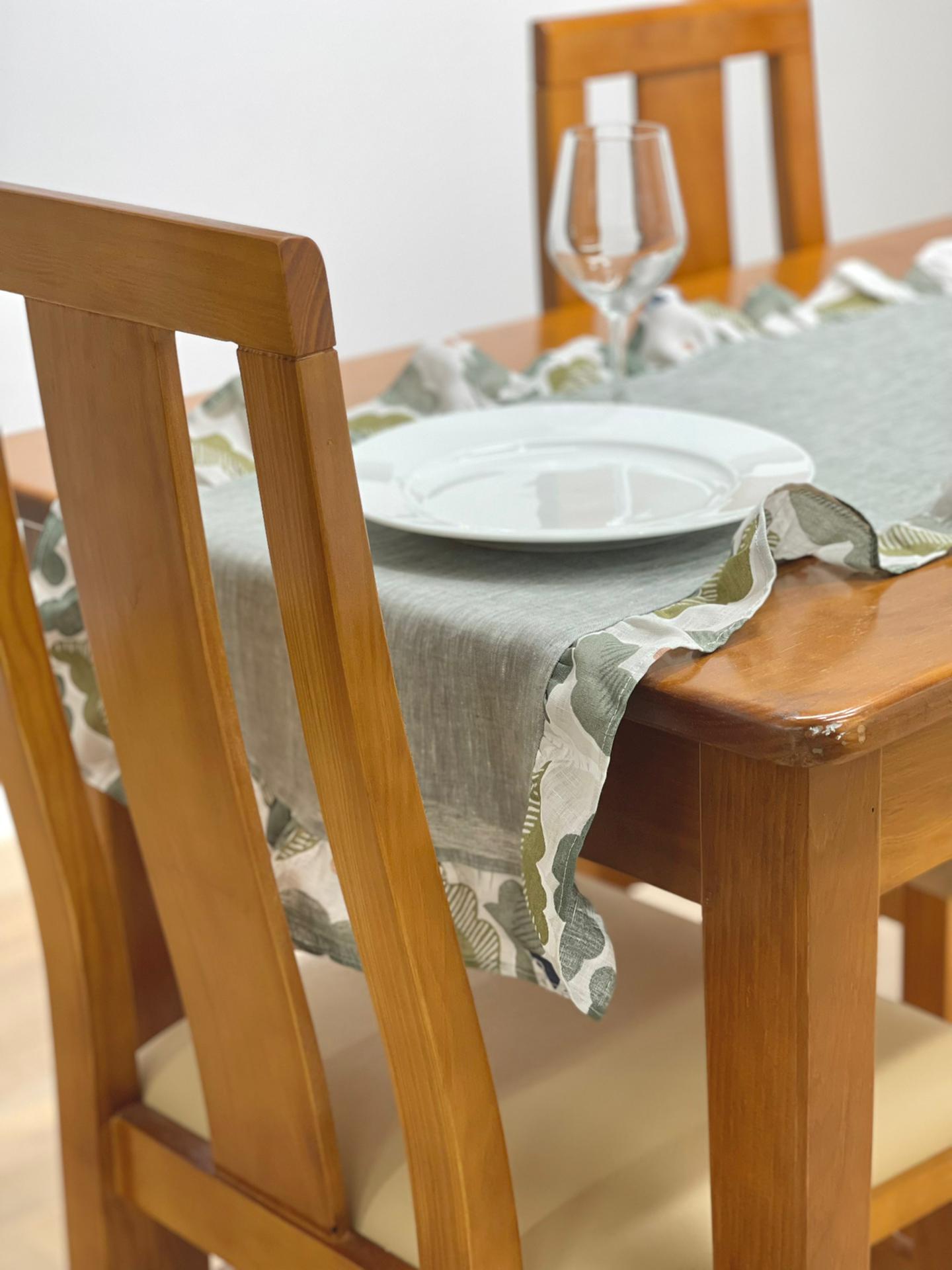 Caminho de mesa em linho com aplicação de folho a toda a volta.