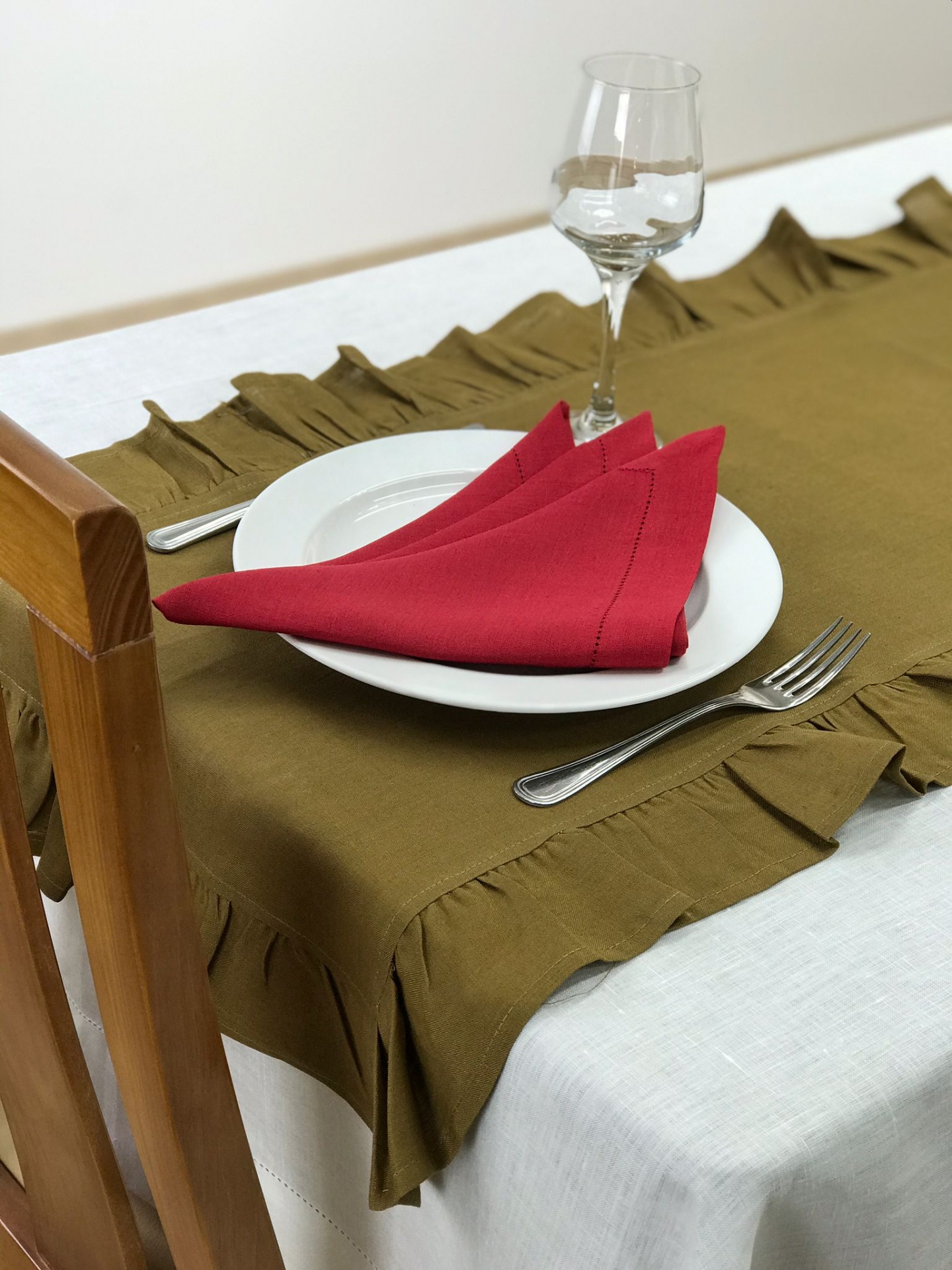 Caminho de mesa em linho com aplicação de folho a toda a volta.