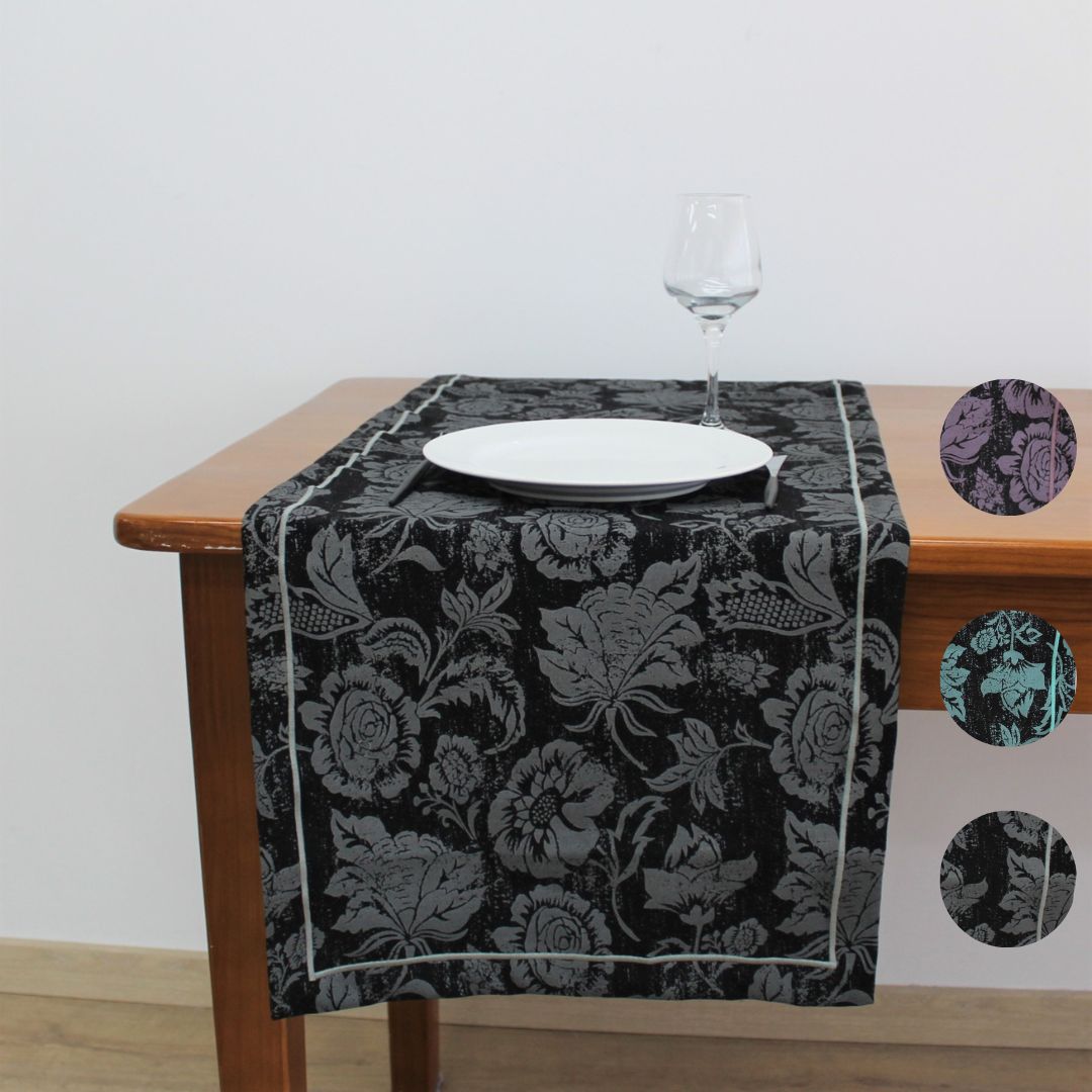 Caminho de mesa em algodão com estampado de Flora com acabamento em bainha Inglesa com rolinho.