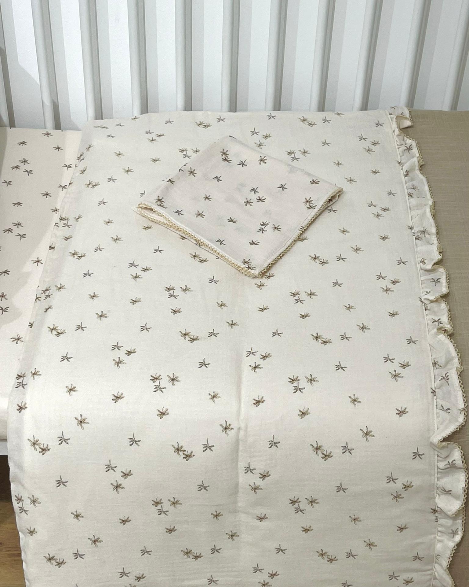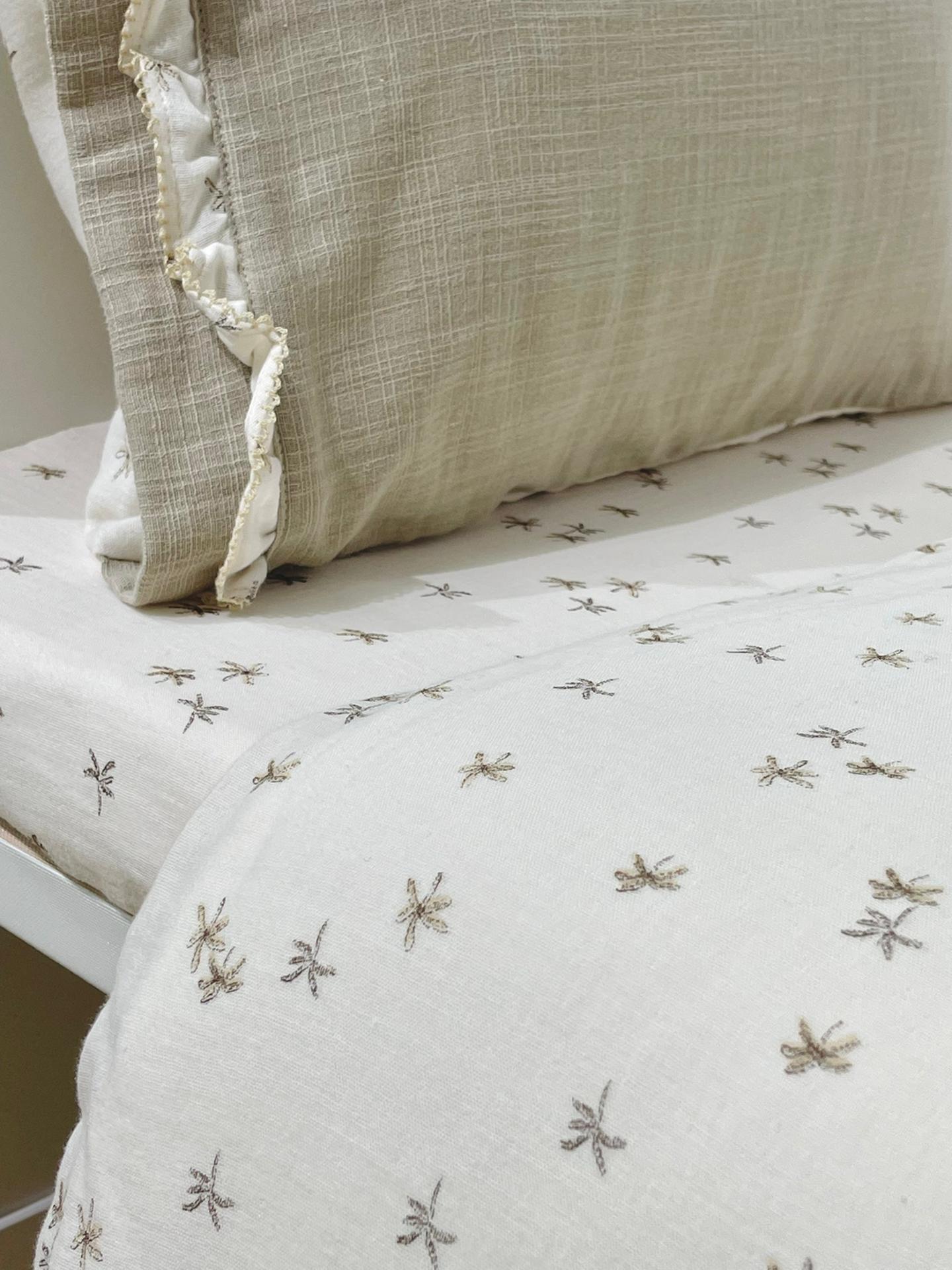 Conjunto com Capa de edredão infantil em algodão na cor Bege ou Castanha com estampa de Flolhas.
