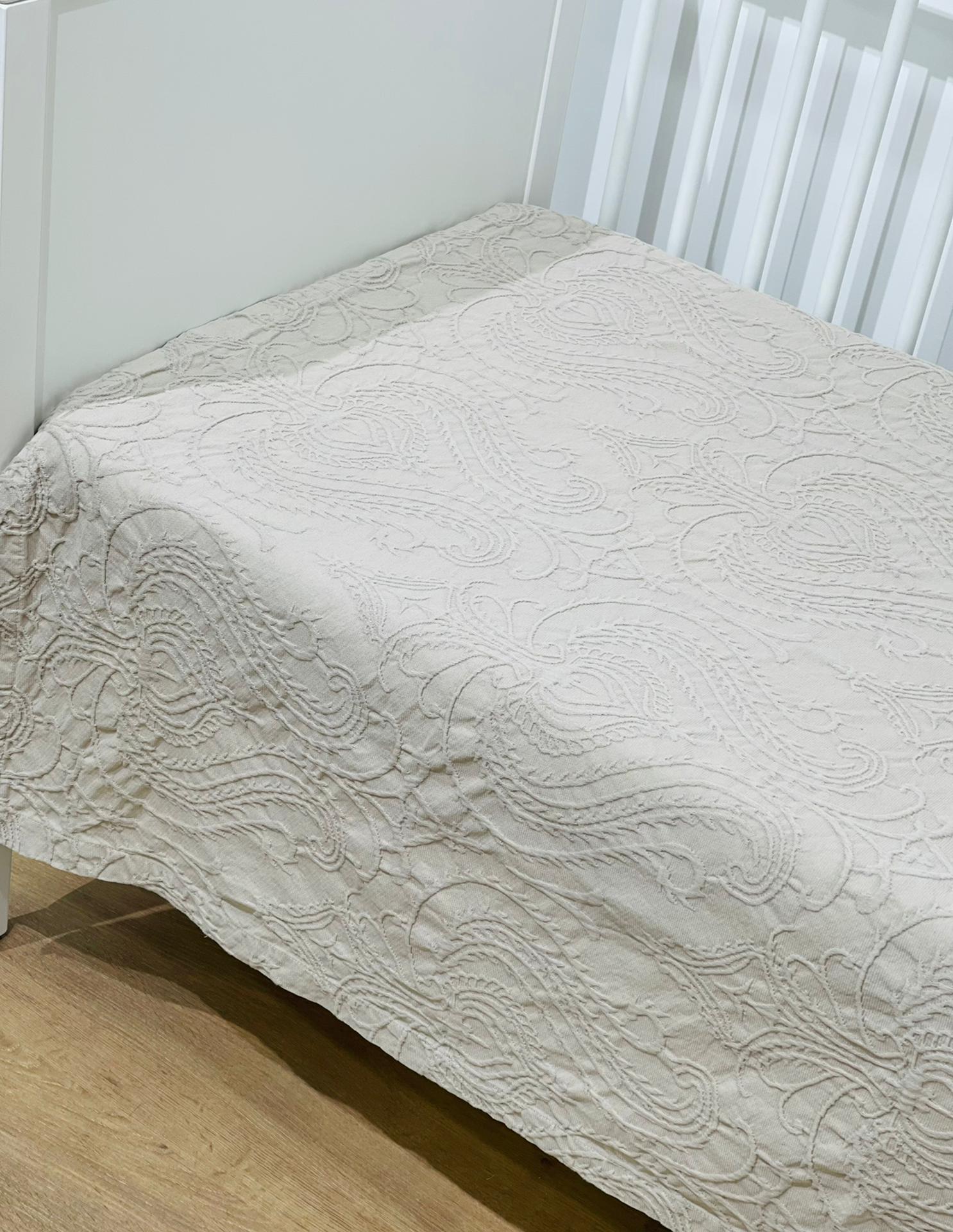 Colcha de algodão para berço com estilo tradicional, elegante e delicado evidenciado pela qualidade das matérias-primas escolhidas.