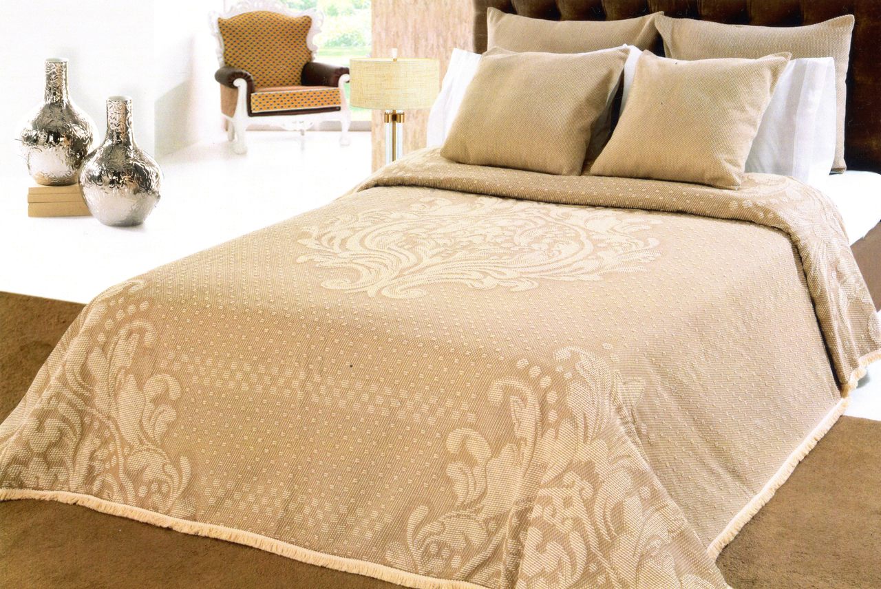 Colcha em algodão, com detalhe de brasão. Modelo resistente e de toque suave.