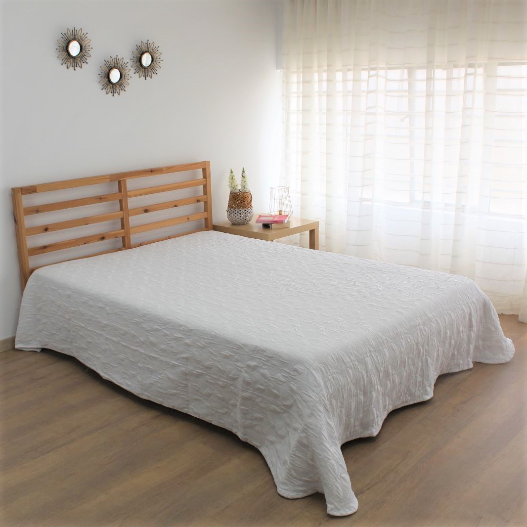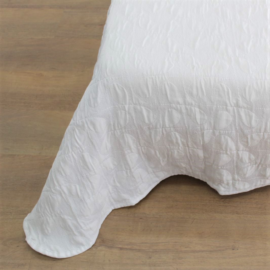 Colcha modelo Flavin em tom branco, com um design discreto.