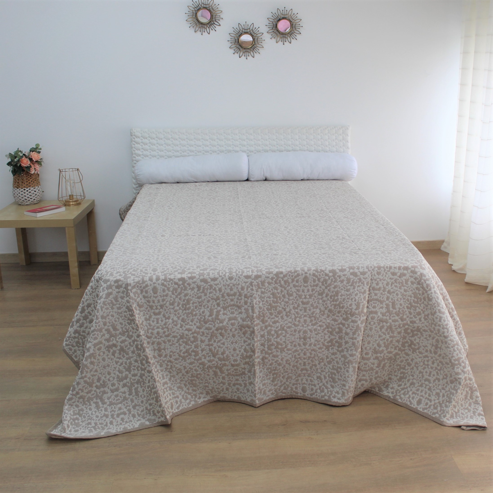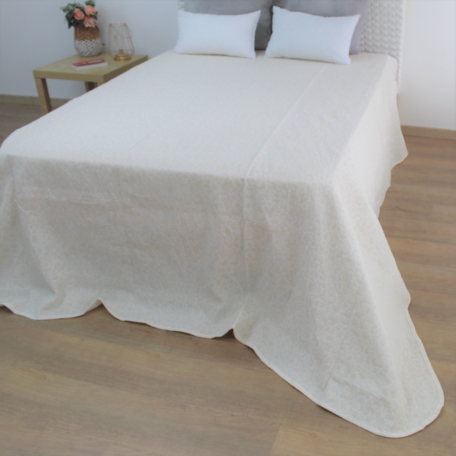 Colcha modelo Freital, com um design discreto, disponível em várias cores.