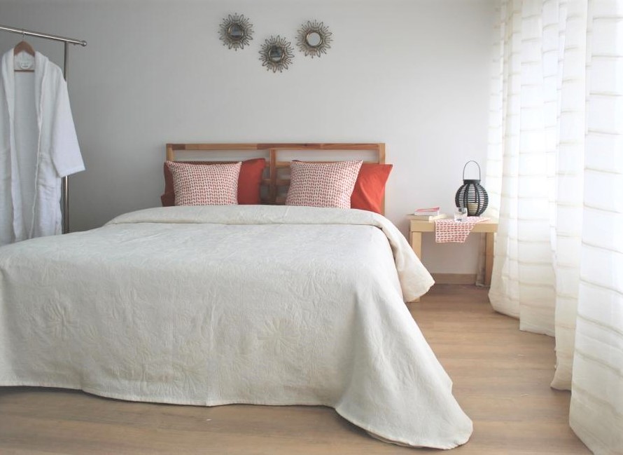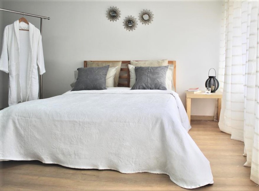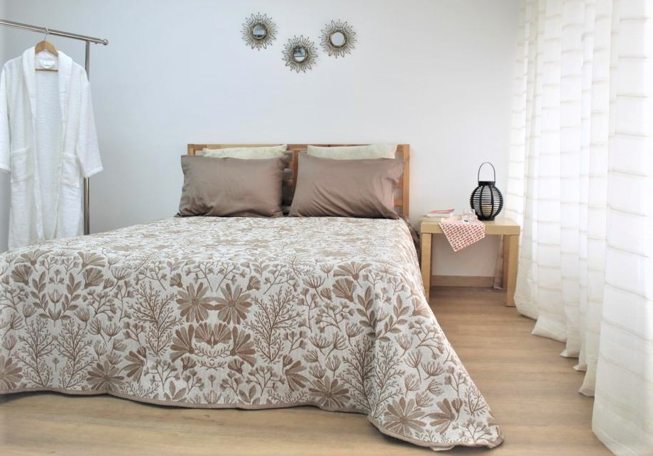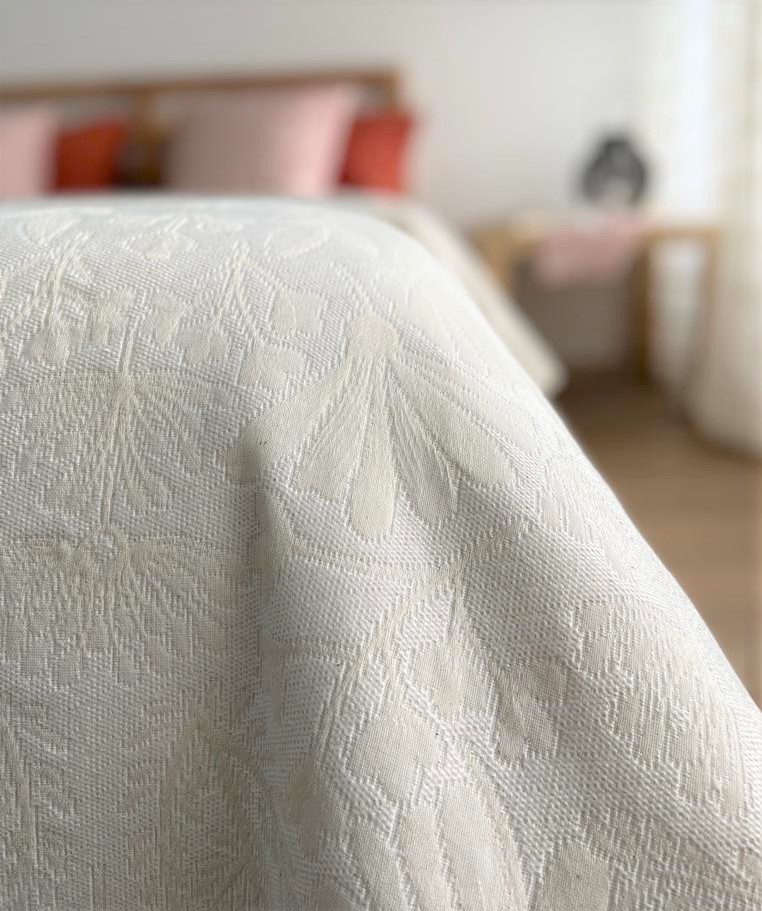 Colcha Piana , com  padrão Flowers disponível em 3 cores.