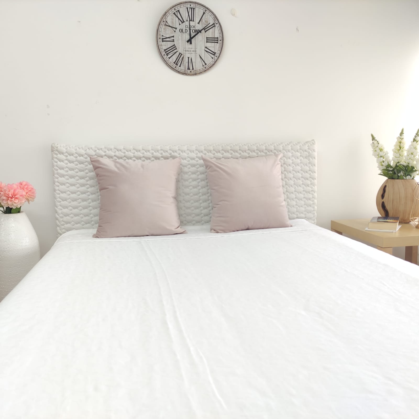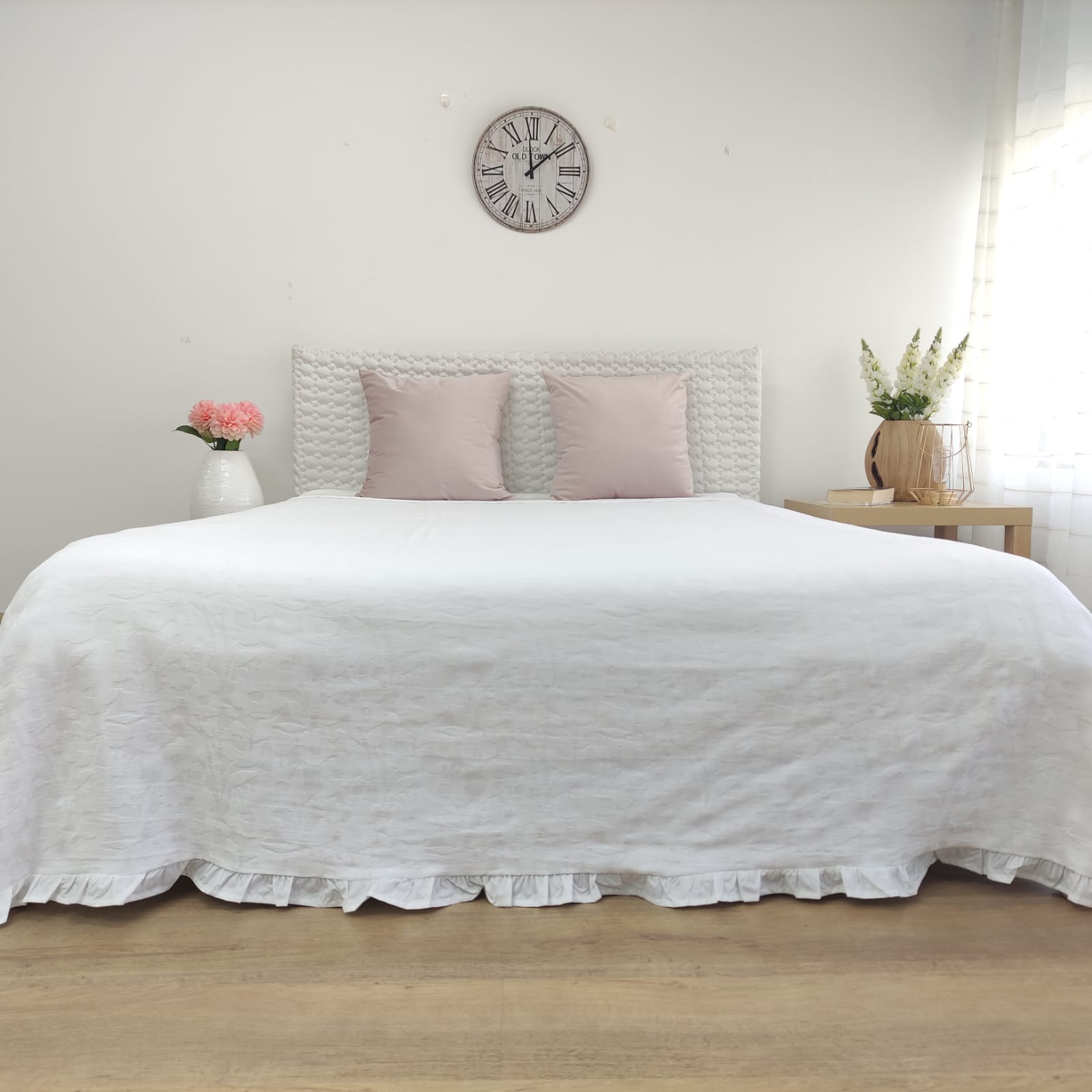 Colcha Siena em algodão branco com textura e acabamento em renda