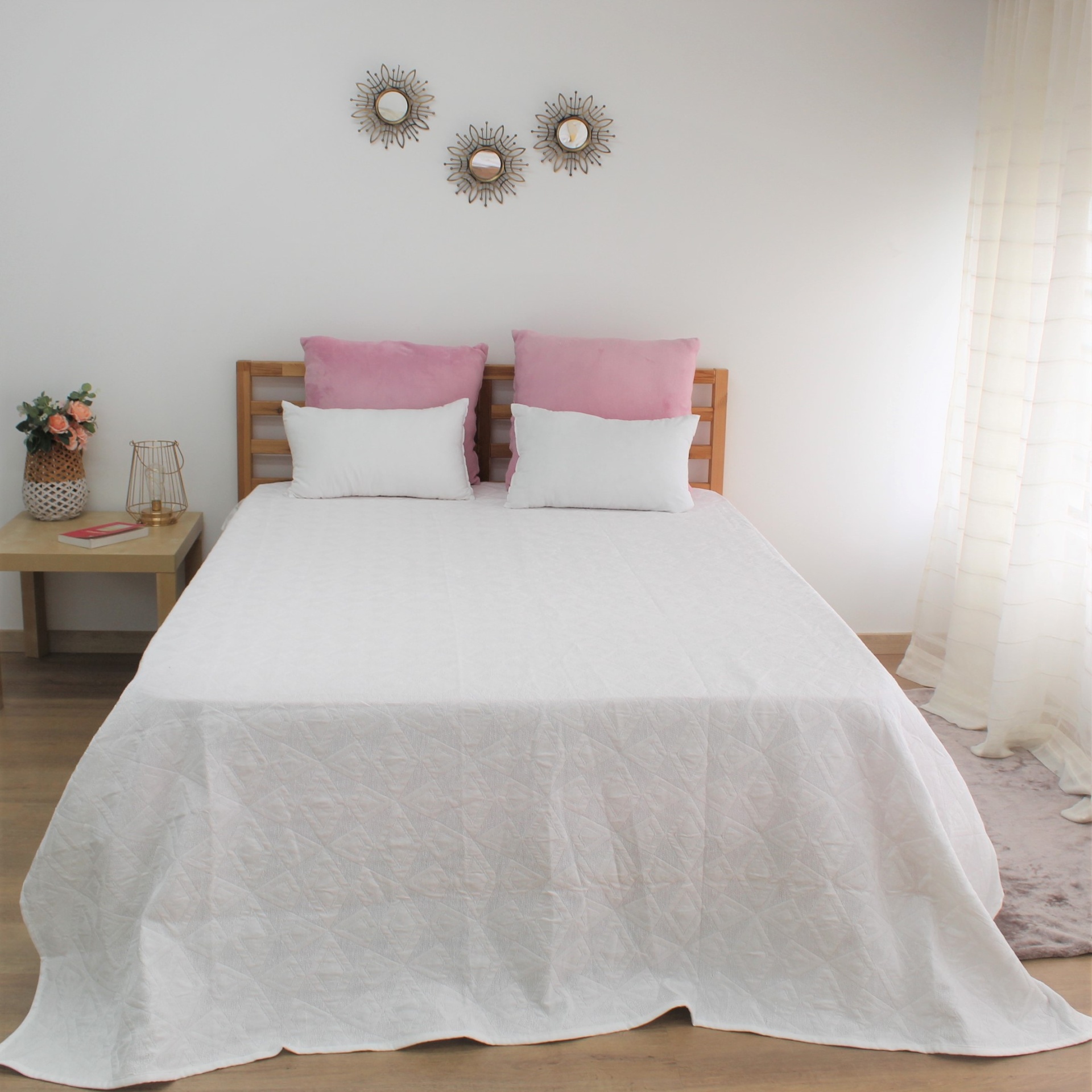 Colcha modelo Sotta, com um design discreto.