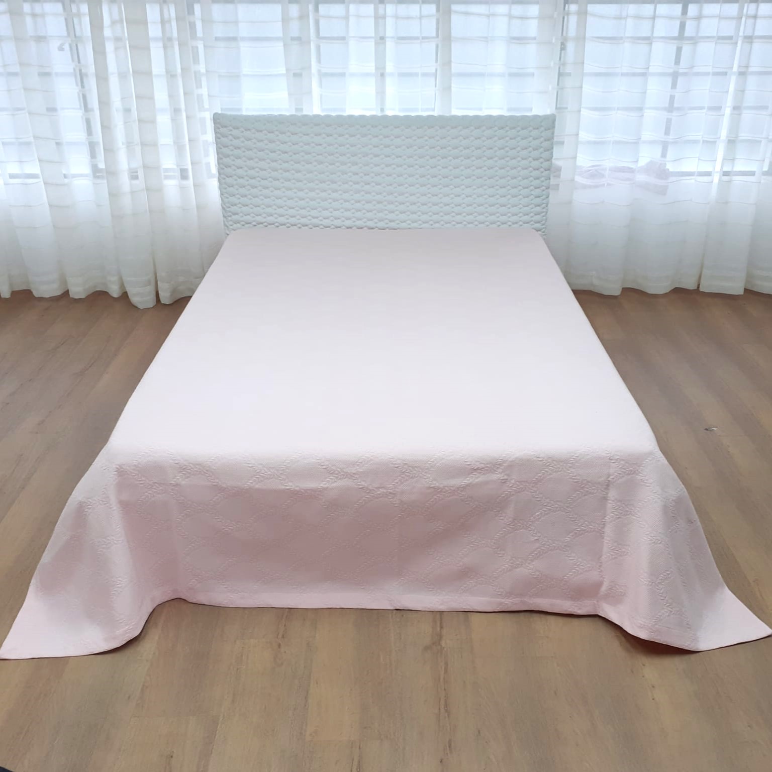 Colcha com um design discreto. Suave ao toque com efeito de relevo.