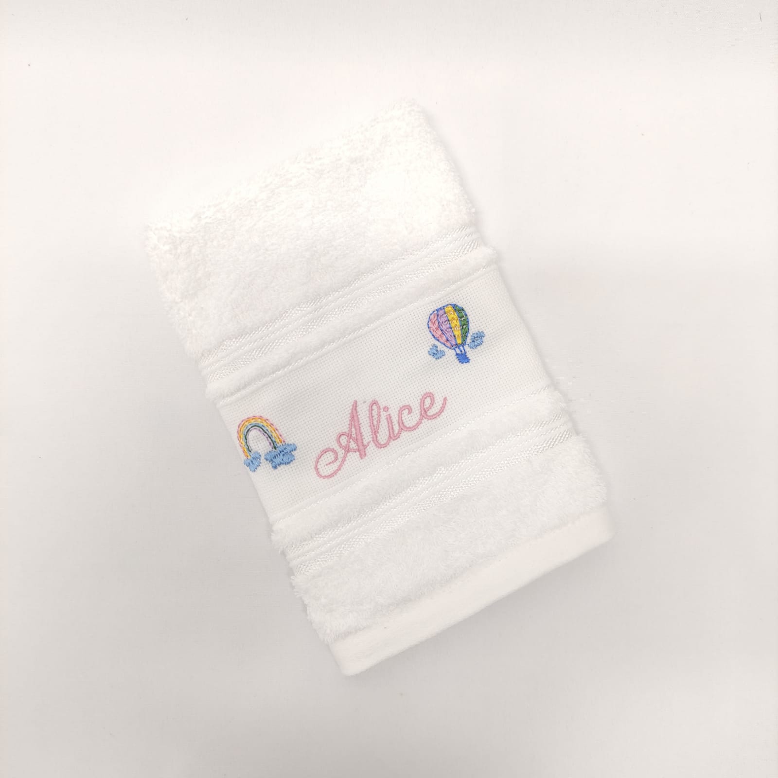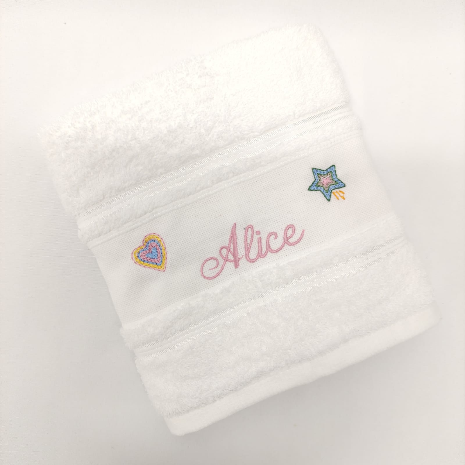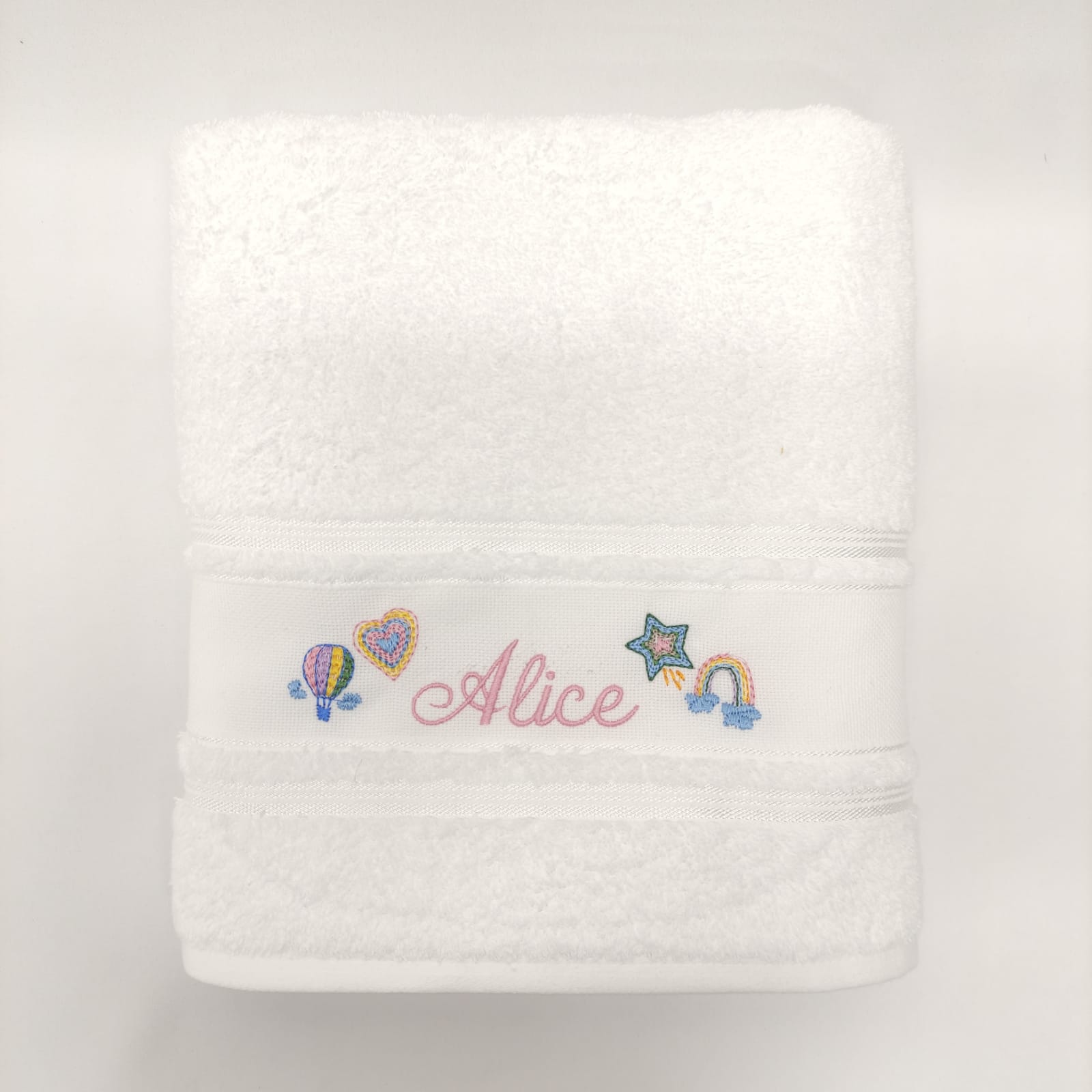 Conjunto de duche ou banho, 100% algodão. Modelo simples com detalhe de bordado personalizado.
