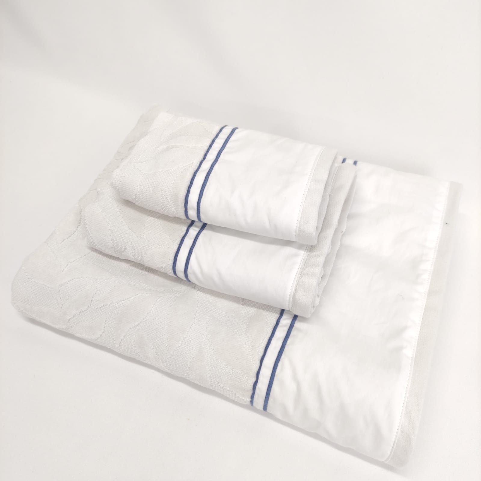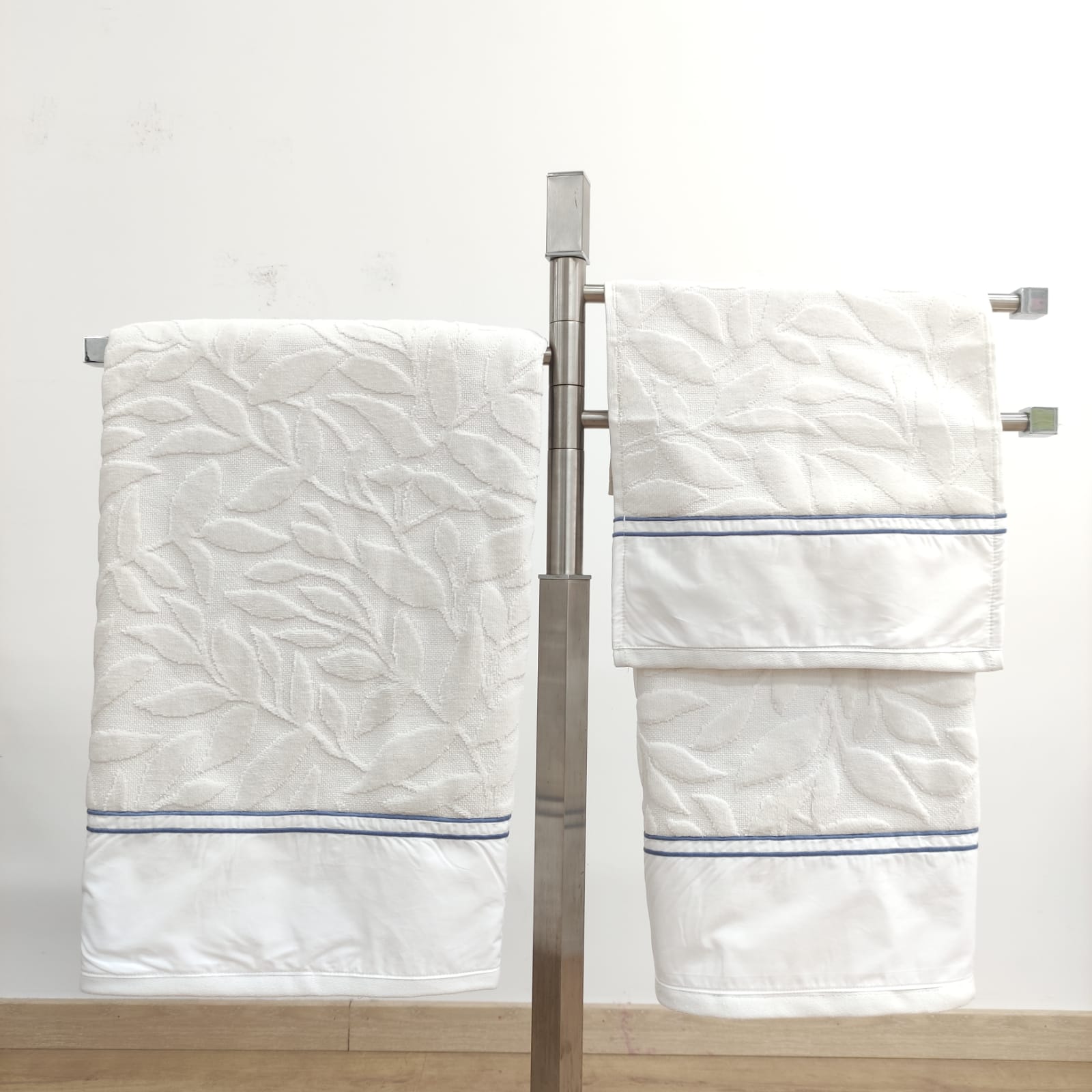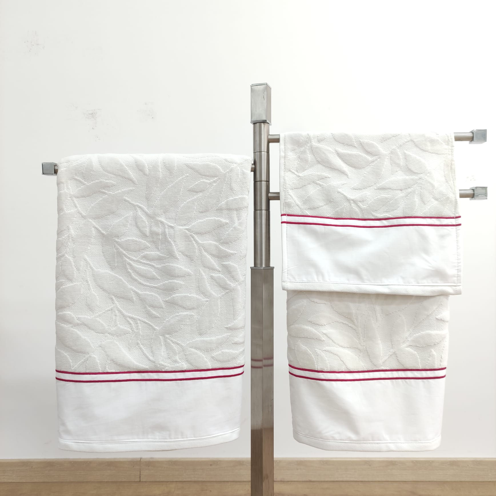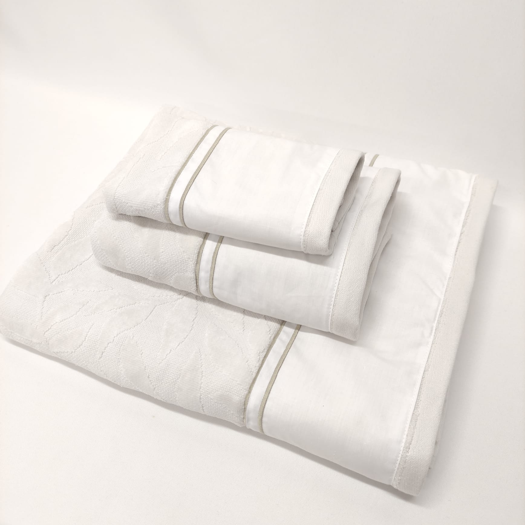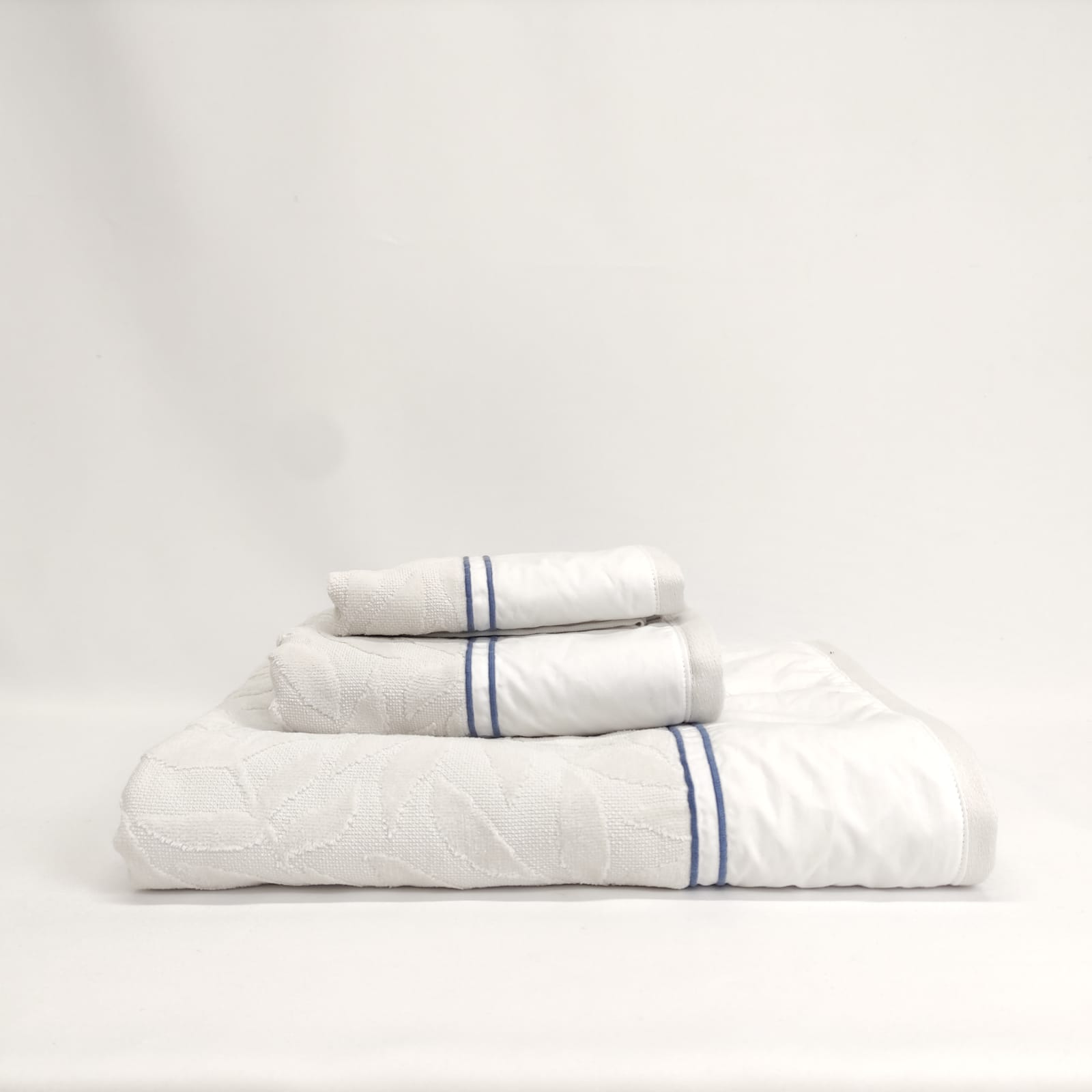 Conjunto de toalhas de Banho, em felpo de algodão na cor cinza, com pormenor de dois rolinhos.
