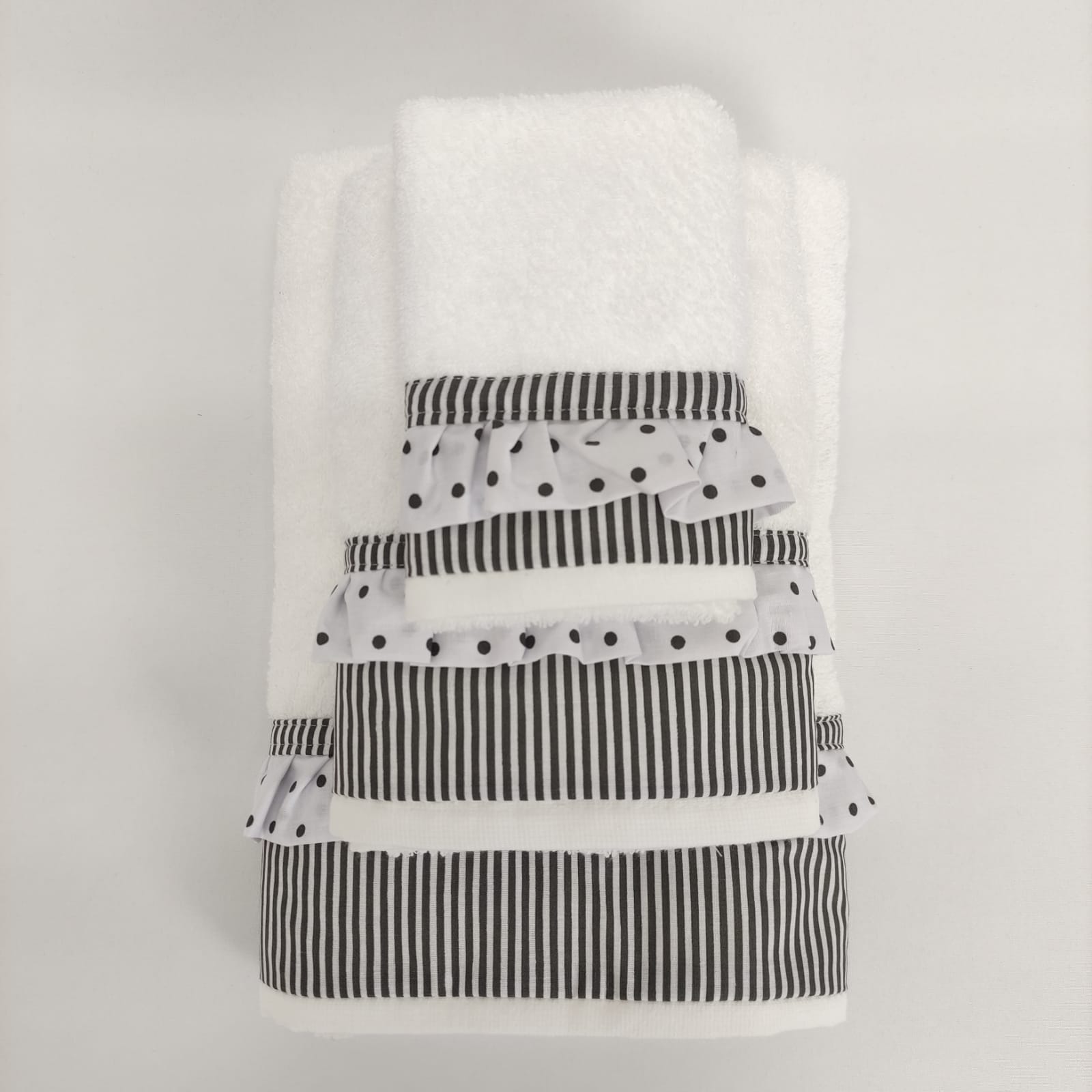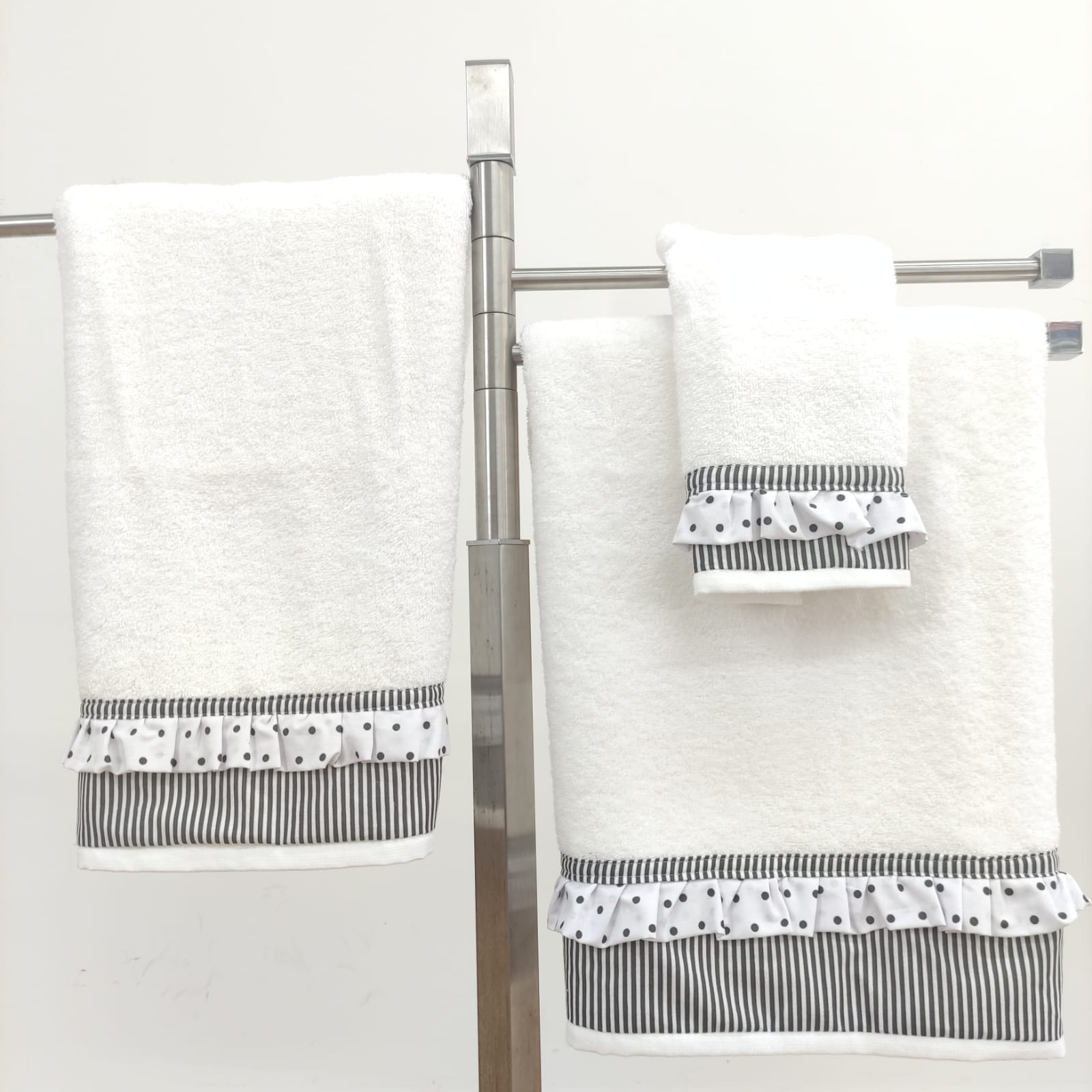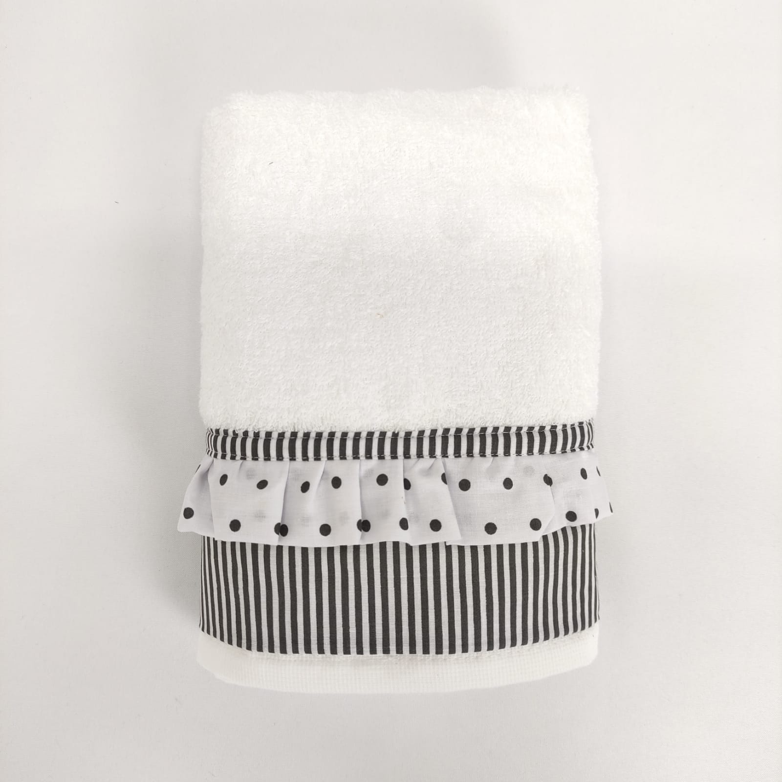 Conjunto de toalhas em algodão 400g/m2 com acabamento em folho.