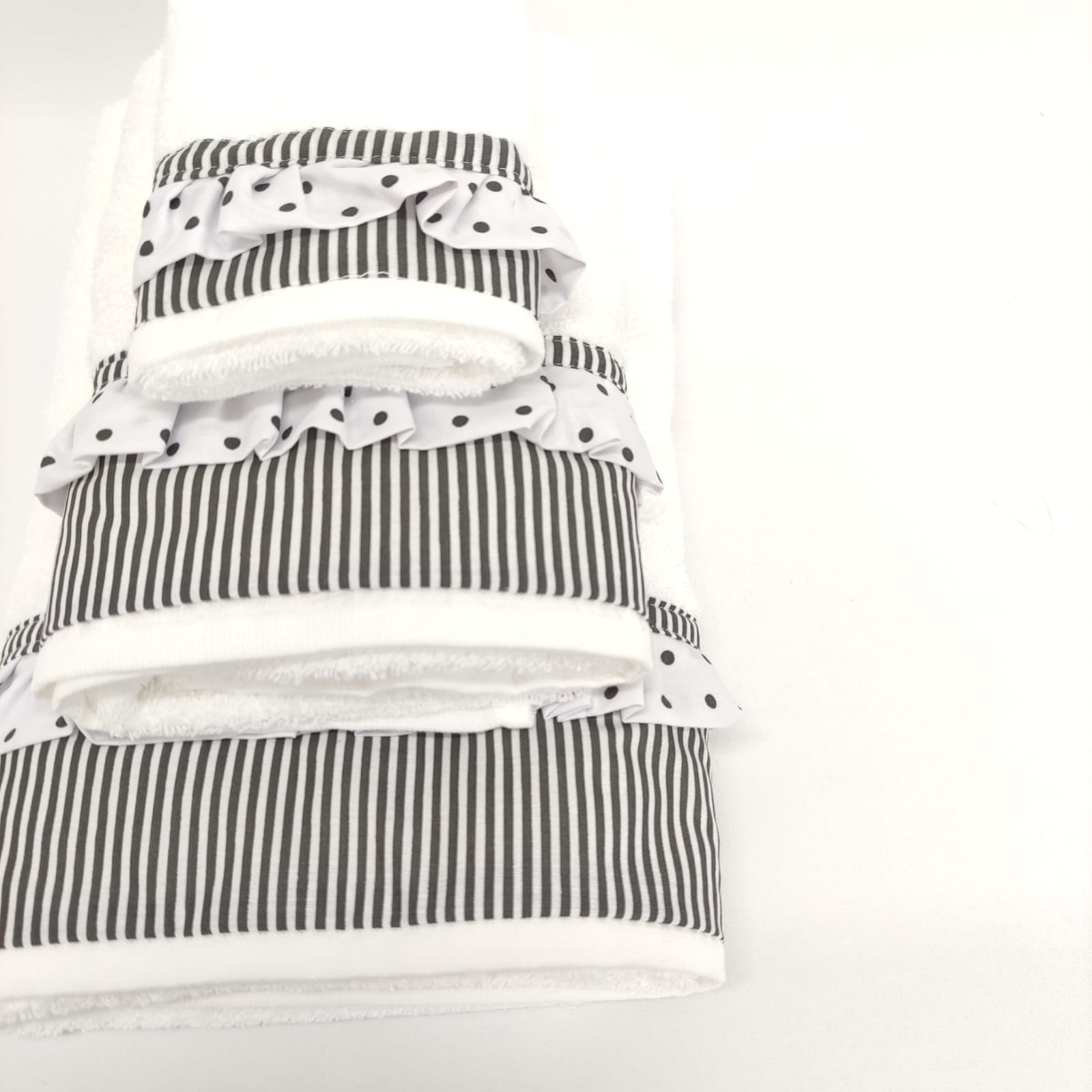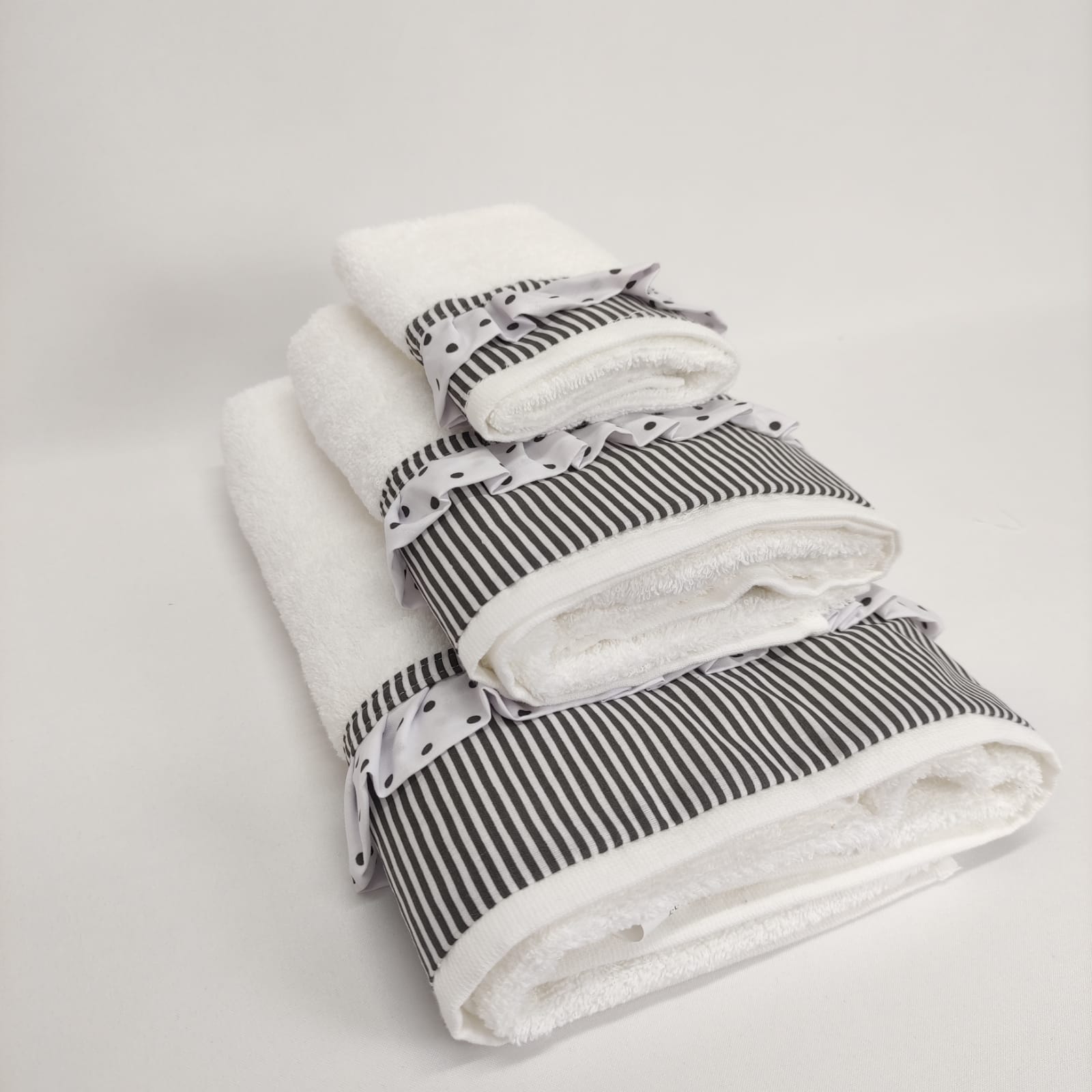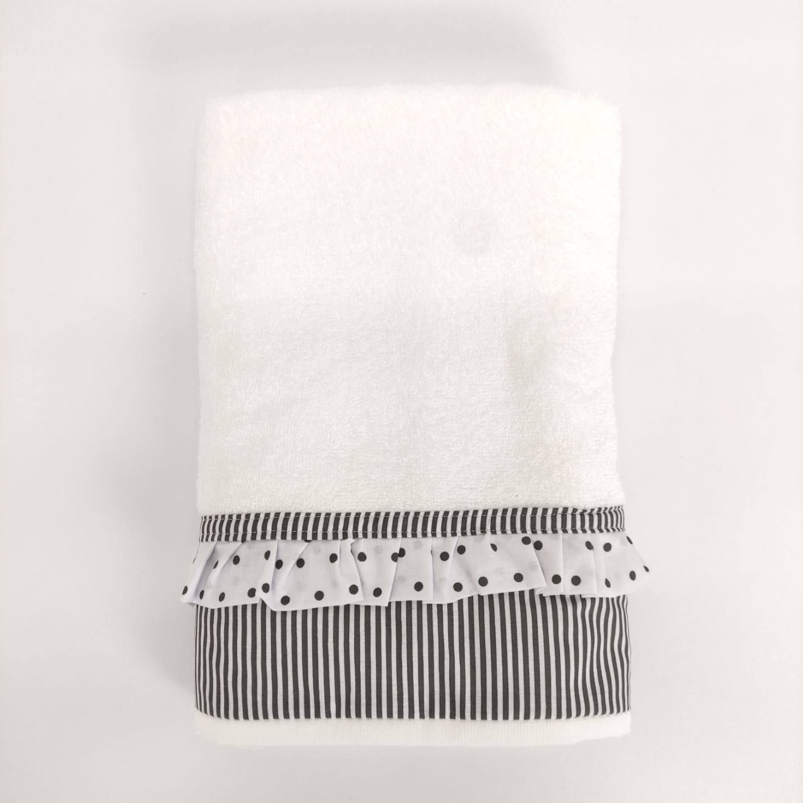 Conjunto de toalhas em algodão 400g/m2 com acabamento em folho.