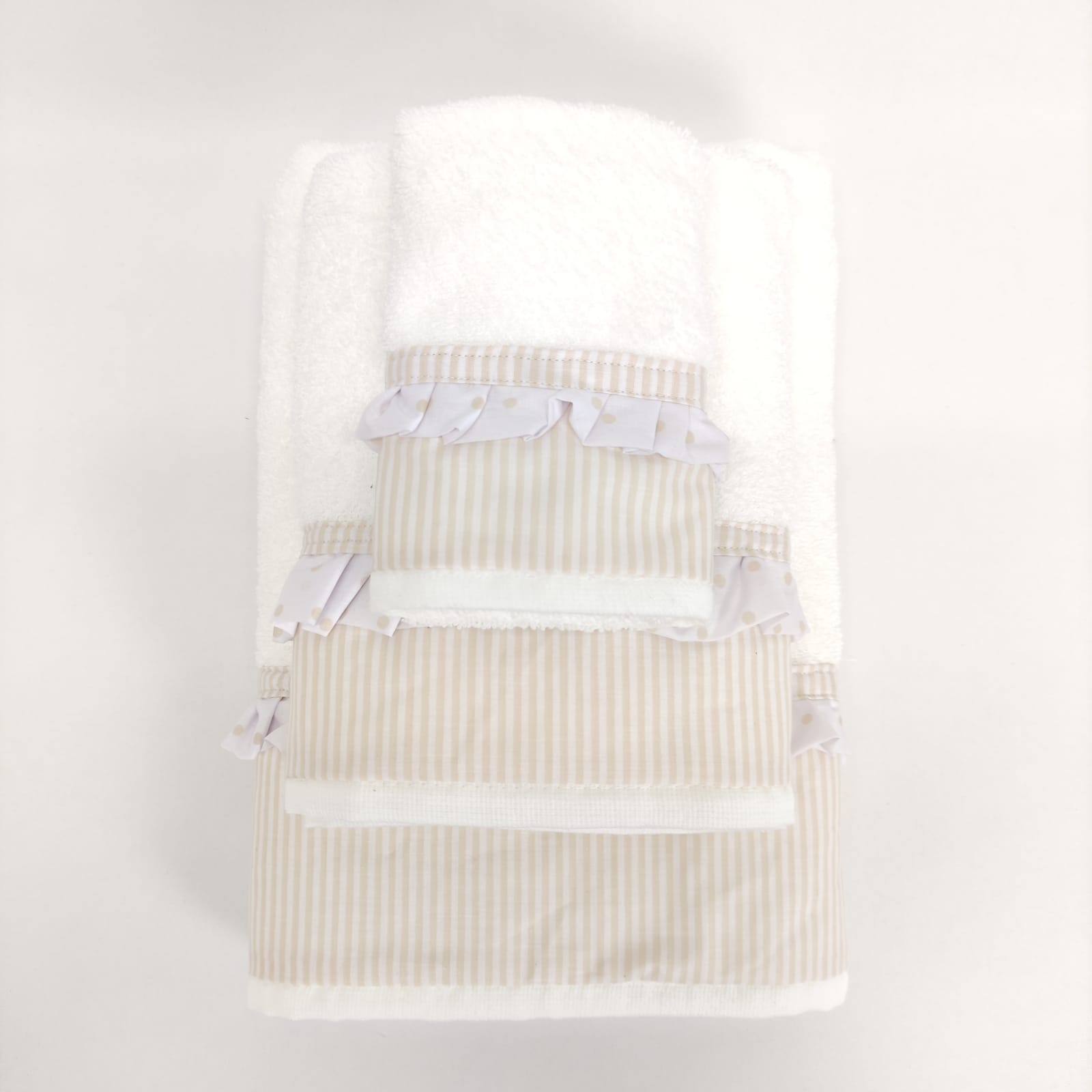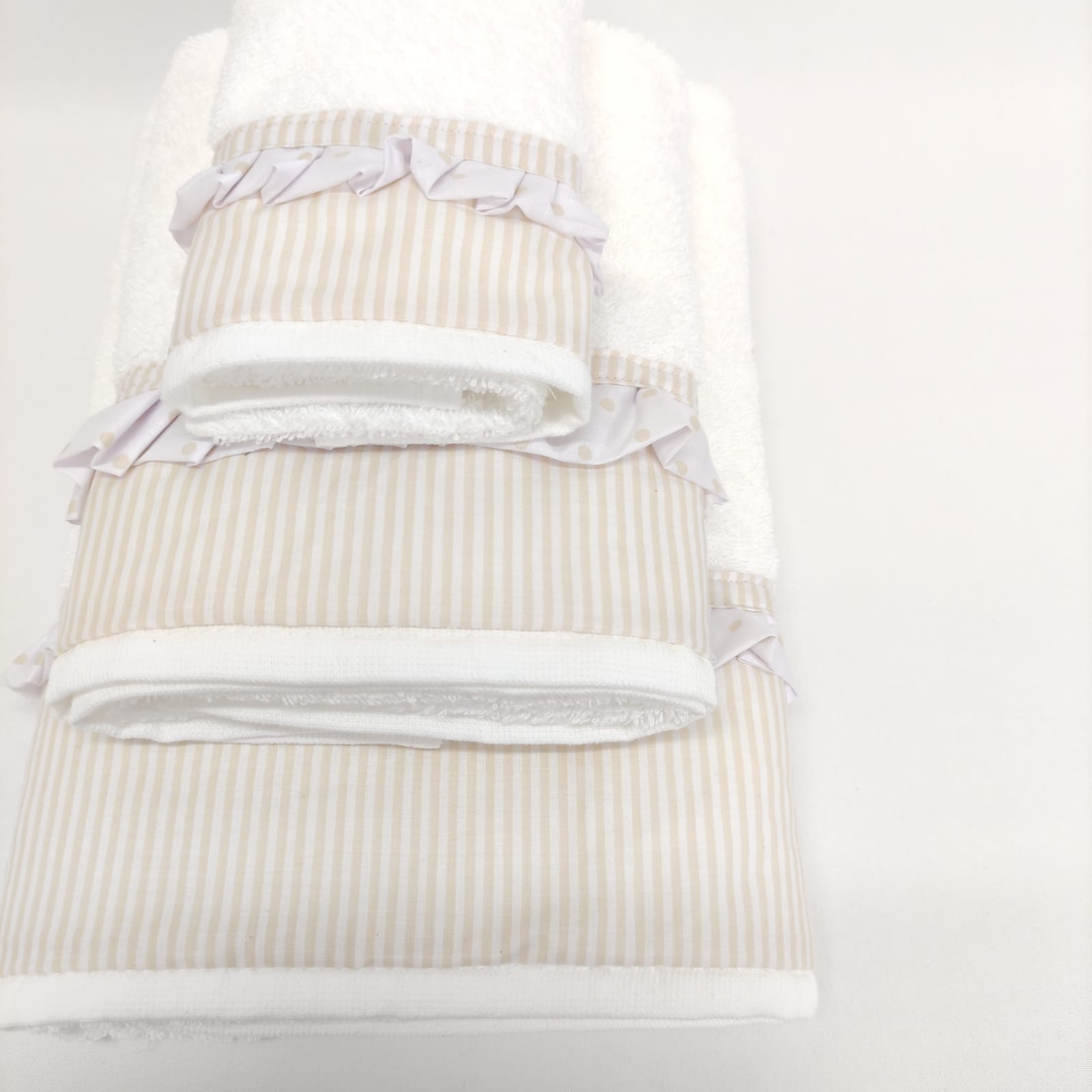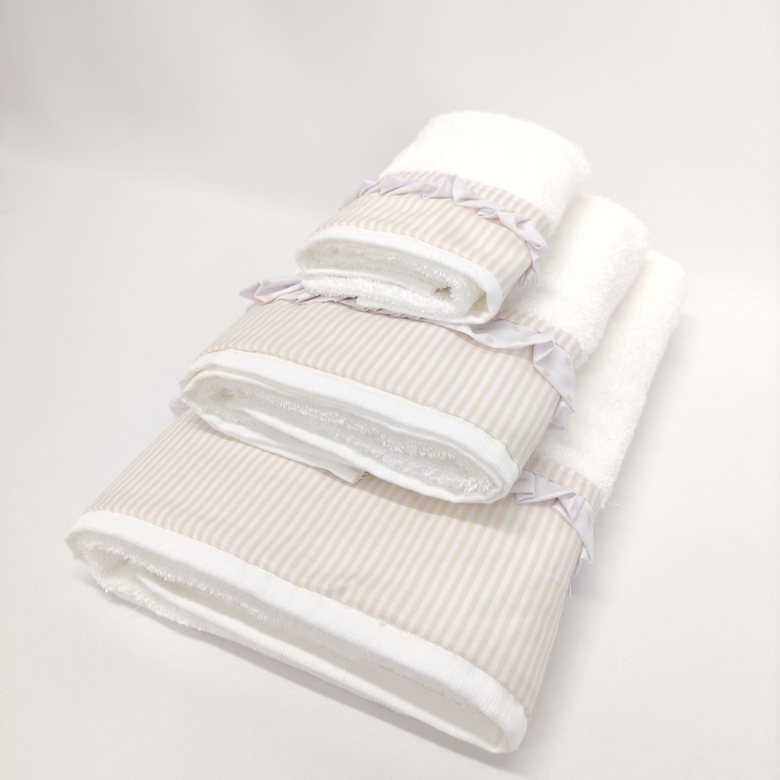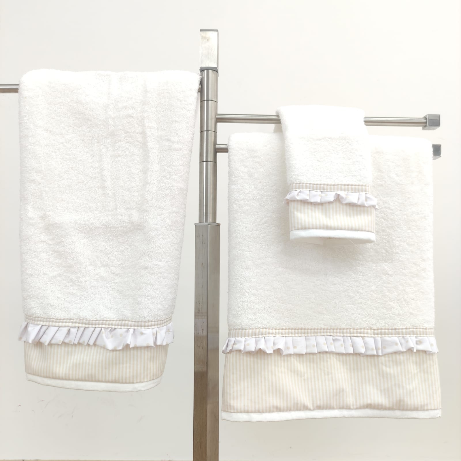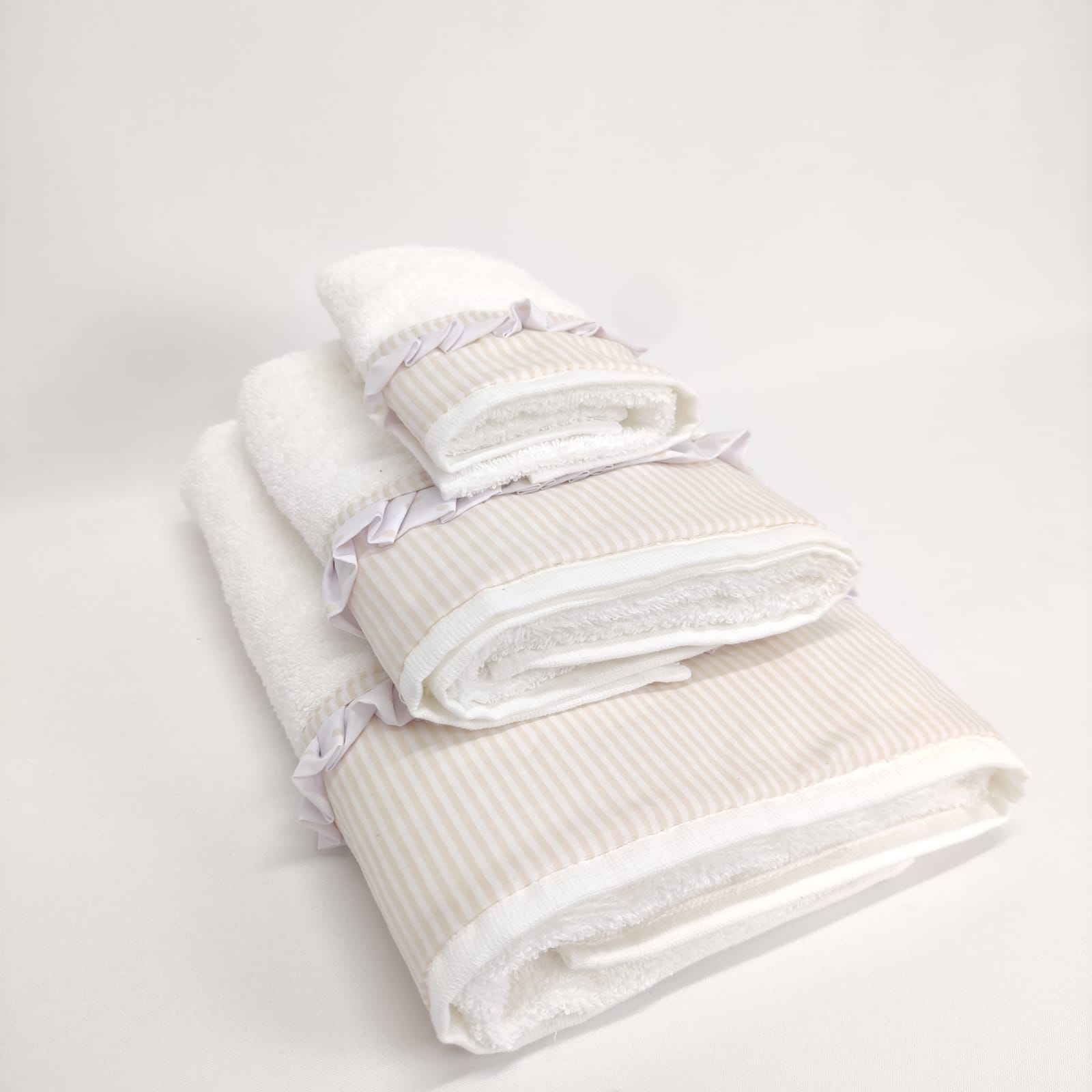 Conjunto de toalhas em algodão 400g/m2 com acabamento em folho.