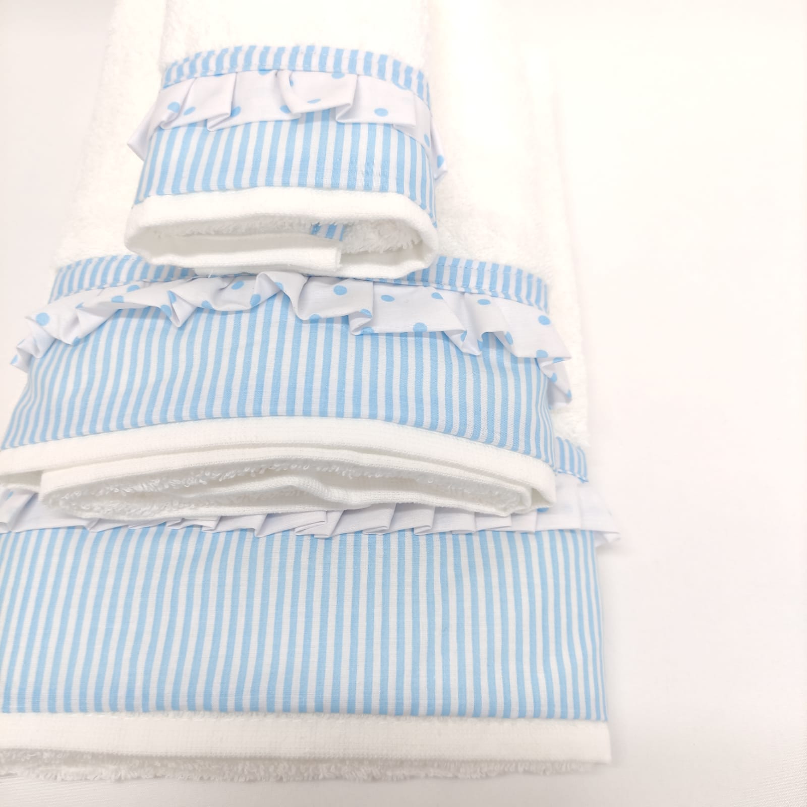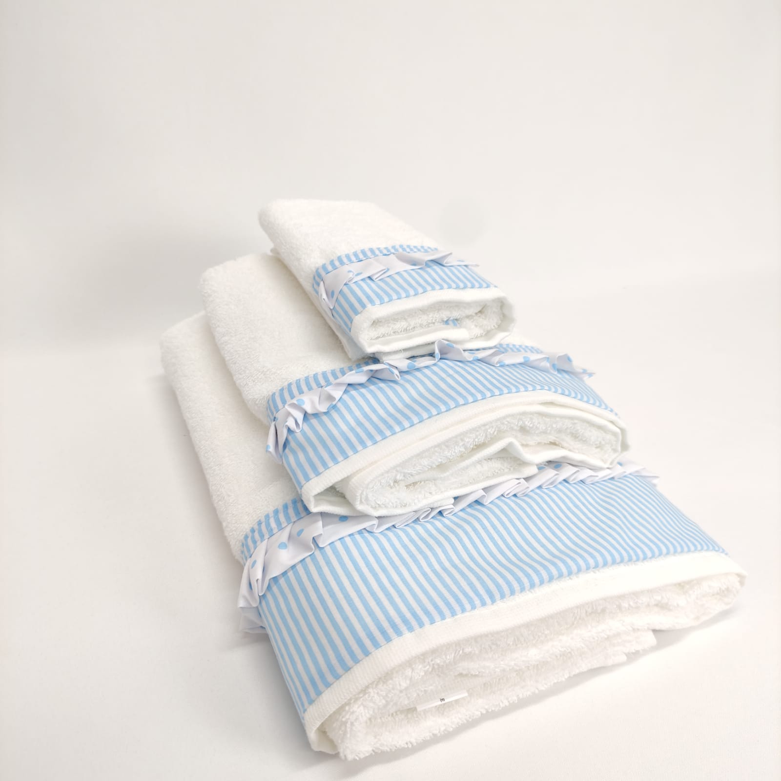 Conjunto de toalhas em algodão 400g/m2 com acabamento em folho.
