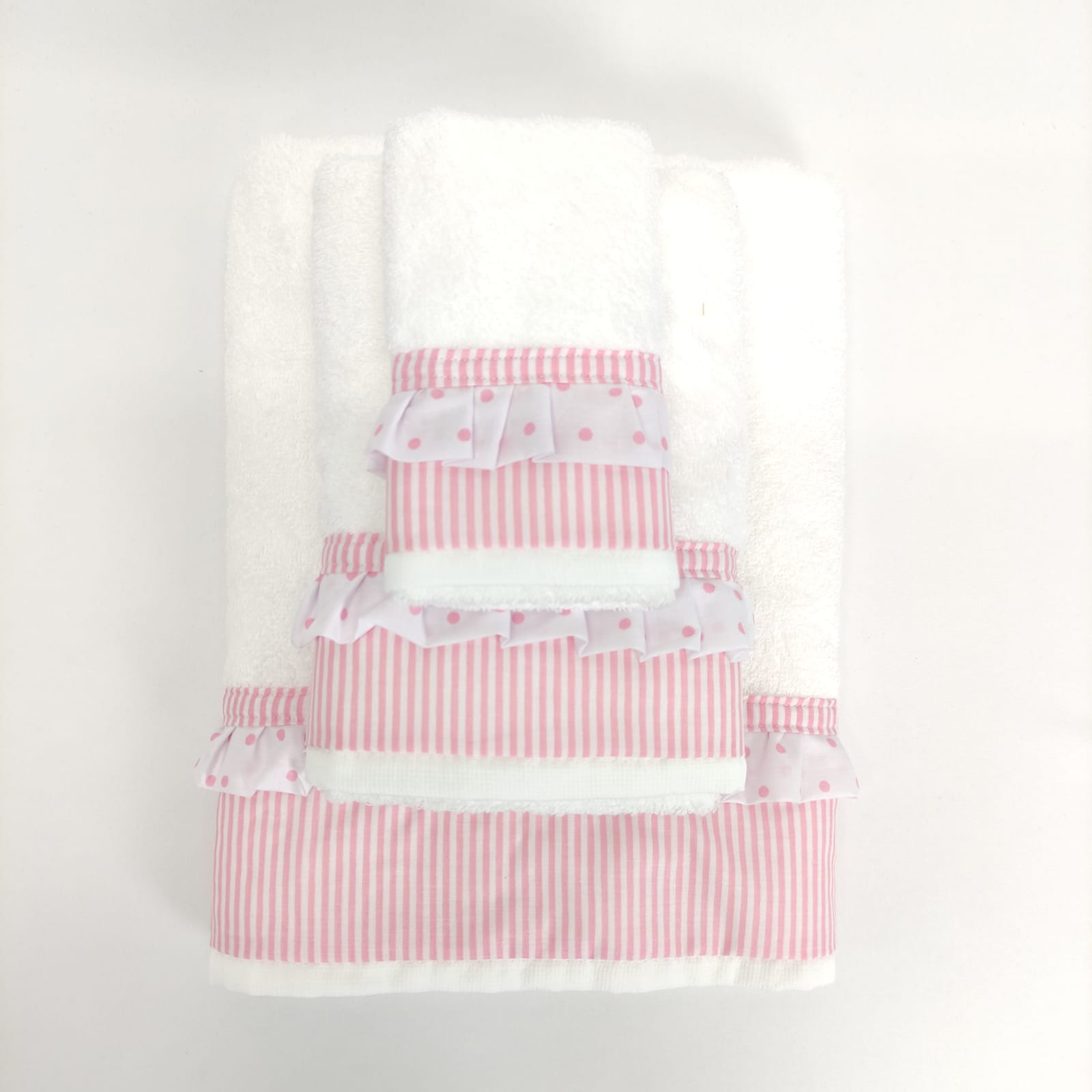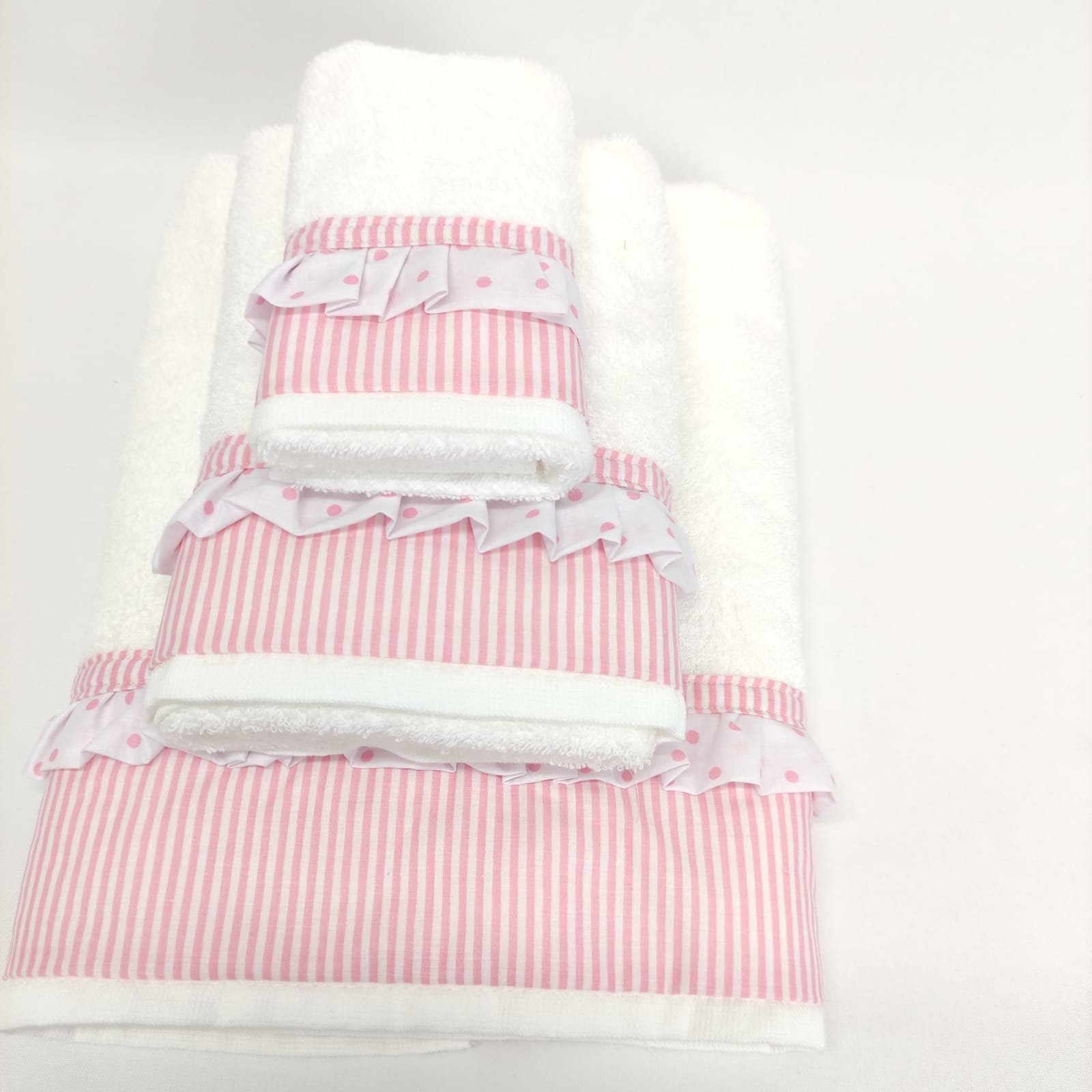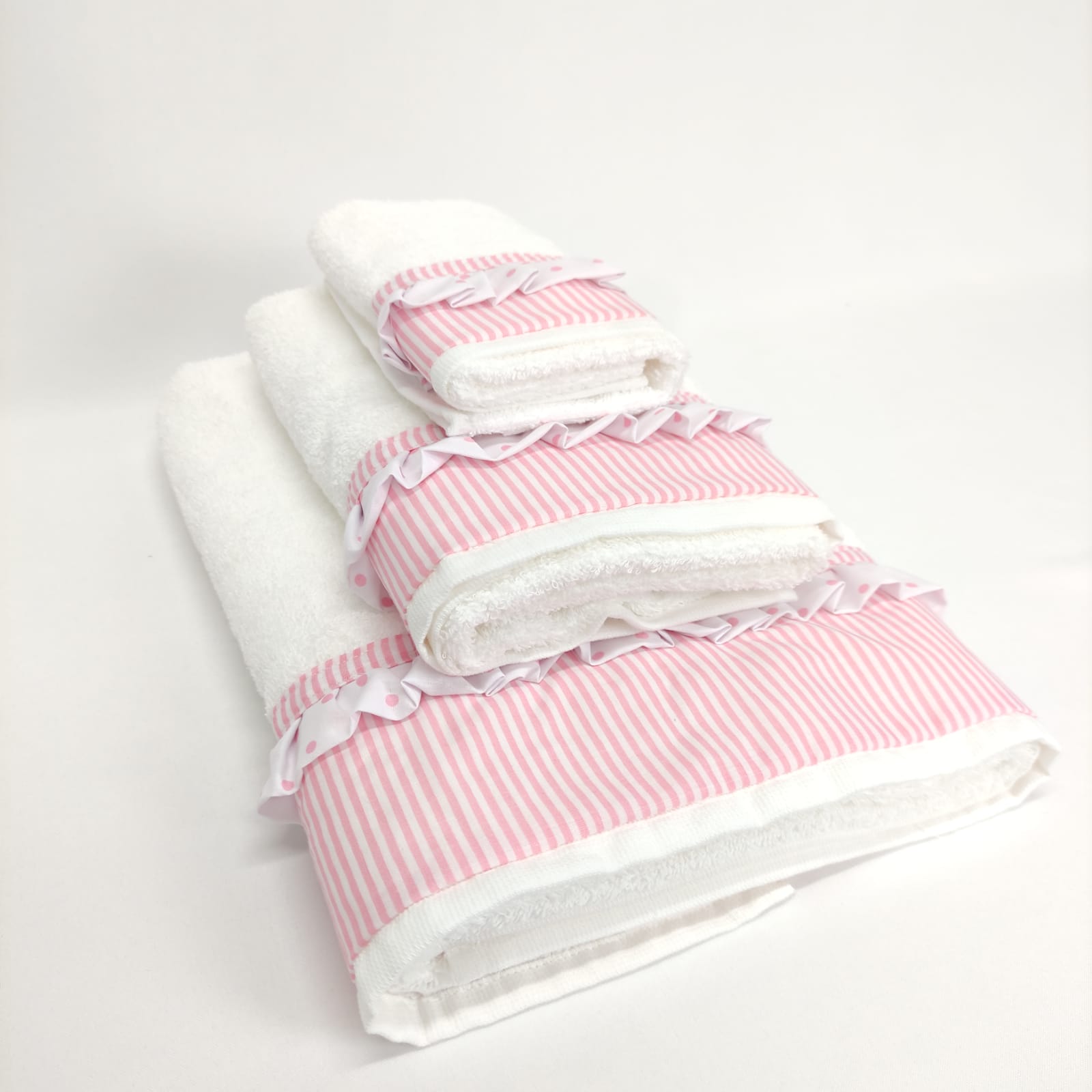 Conjunto de toalhas em algodão 400g/m2 com acabamento em folho.
