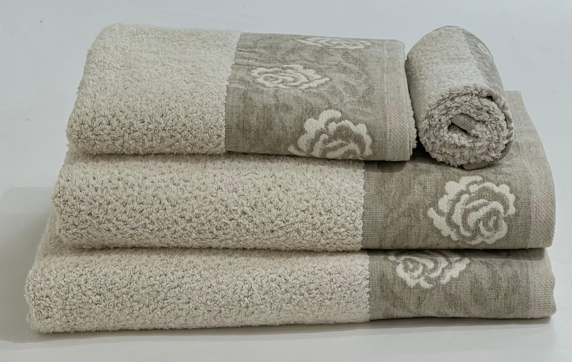 Conjunto de toalhas bege com padrão floral