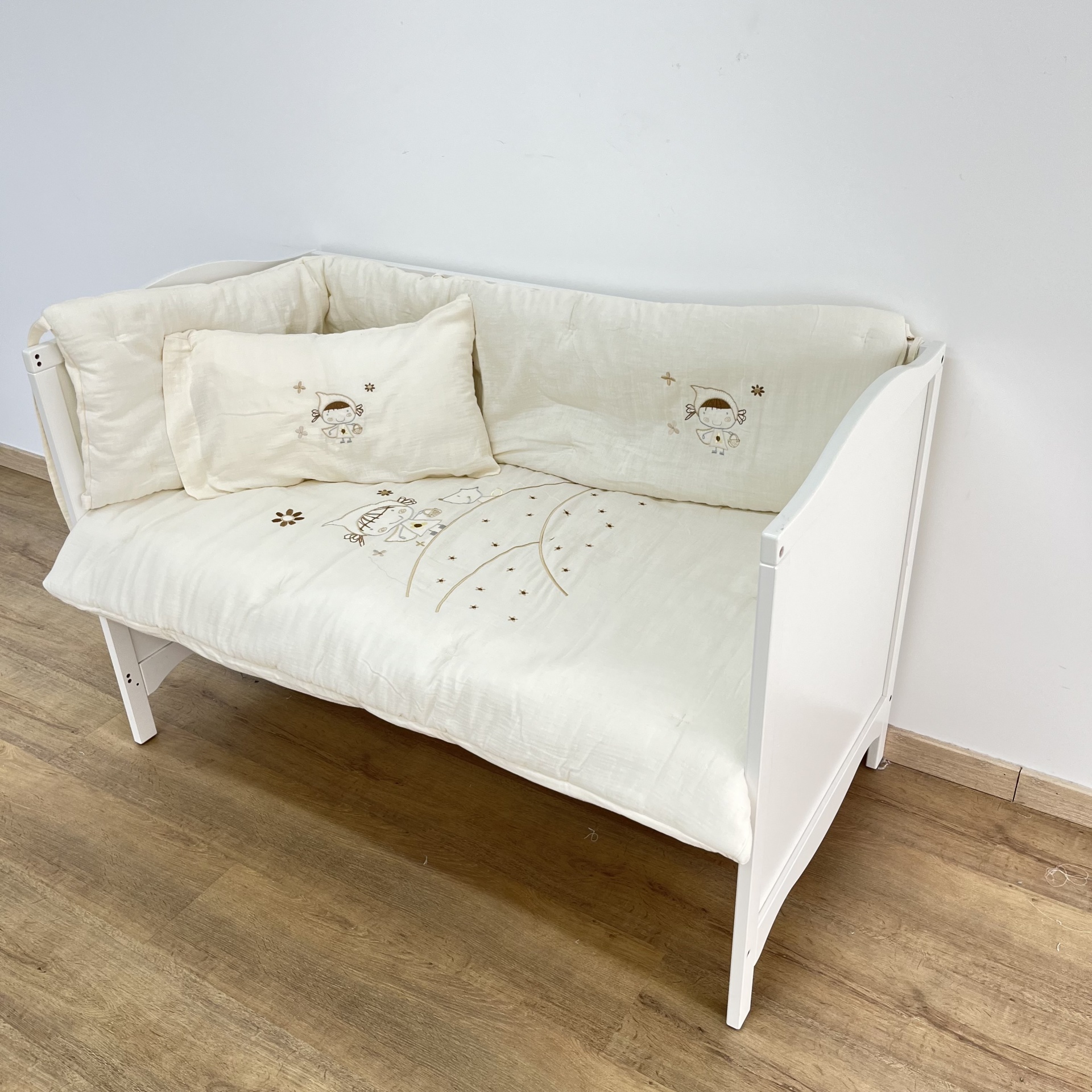 Conjunto de 3 peças, Edredão Bordado , Resguardo e Almofada Bordada em tecido Musselina.
