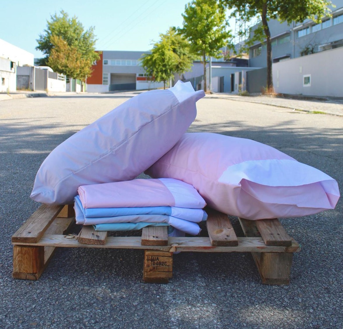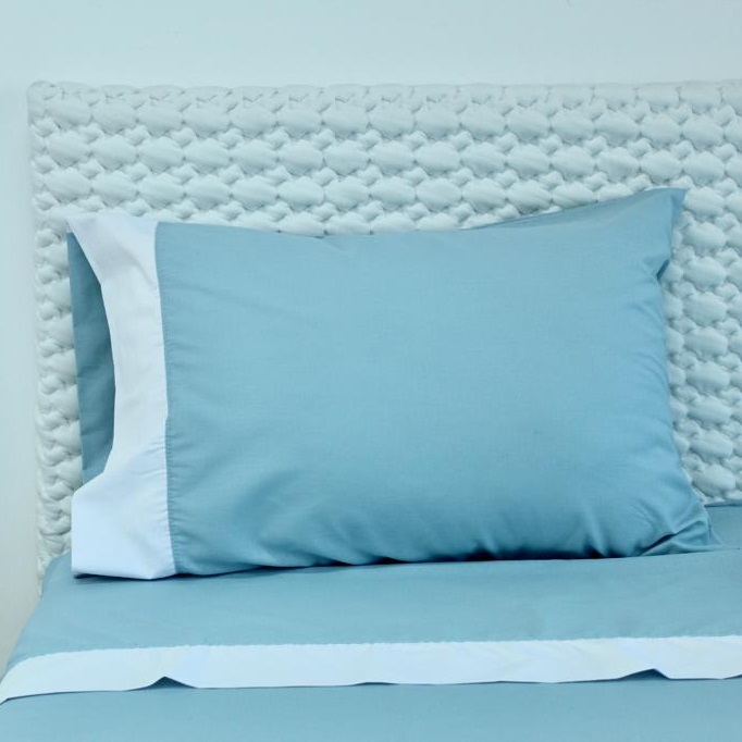 Jogo de lençóis Sintra disponivél em várias cores. Modelo com barra lisa em branco, no lençol de cima e na fronha de almofada, lençol capa liso.