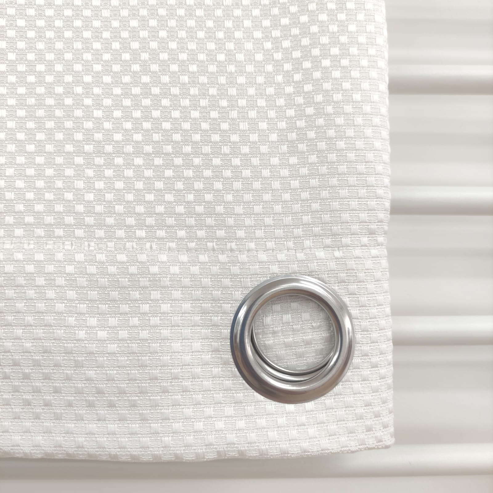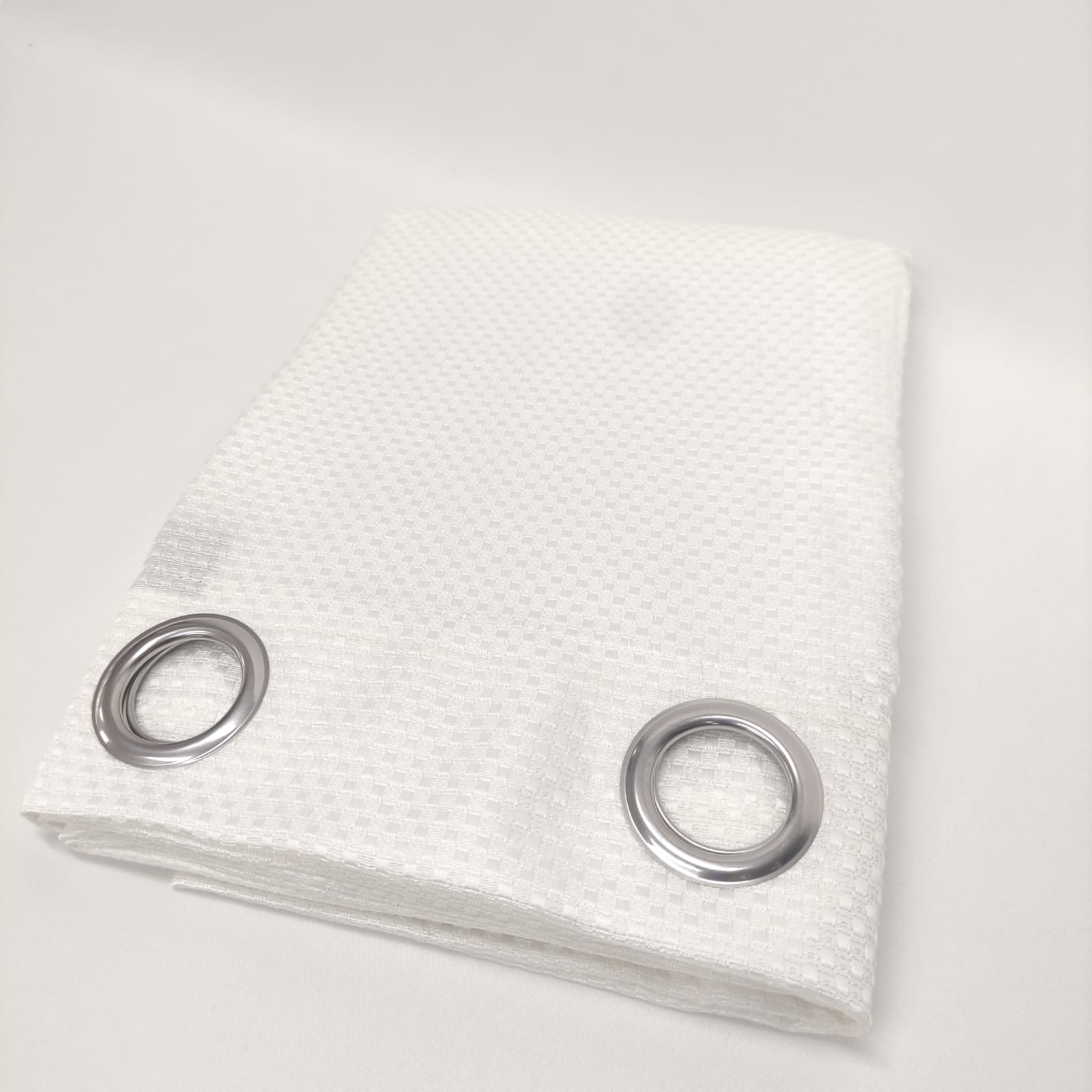 Cortinado com ilhós metálicos pronto a usar, ideal para decorar e aconchegar o ambiente da sua casa.