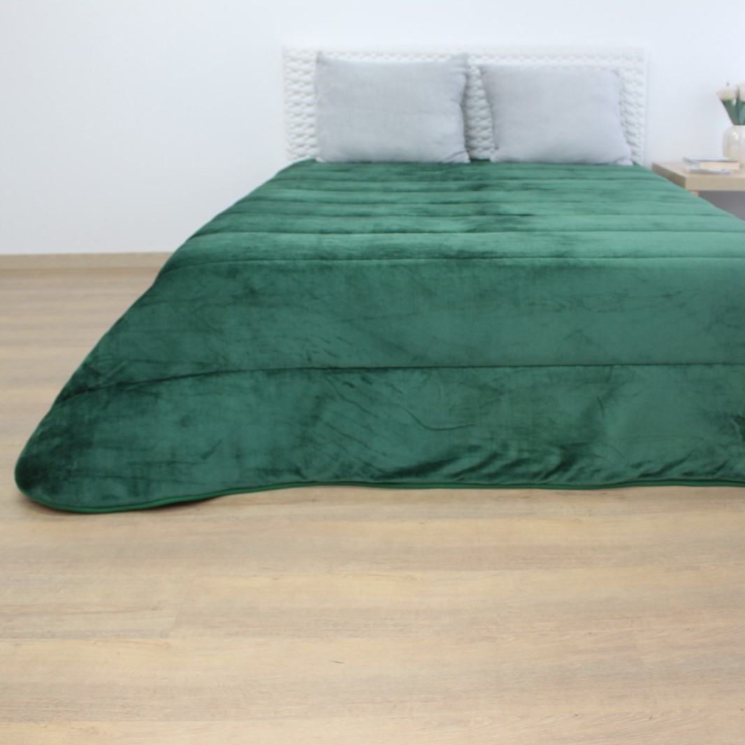 Edredão que possui no exterior veludo para deixar a sua cama mais confortável e no interior têm duas opções: pelo de borrego ou tecido branco.