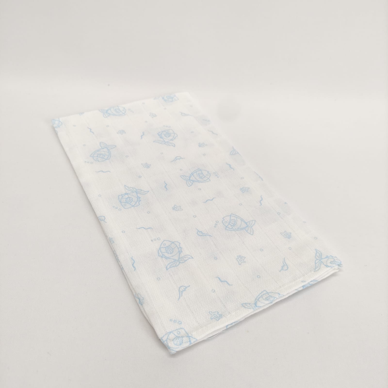 Fralda em algodão com um toque suave e delicado, perfeita para cobrir e aconchegar o seu bebé.