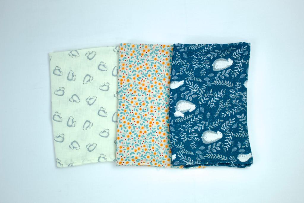 Fralda em musselina de algodão, indispensáveis na proteção e limpeza da pele aveludada e macia do bebé.