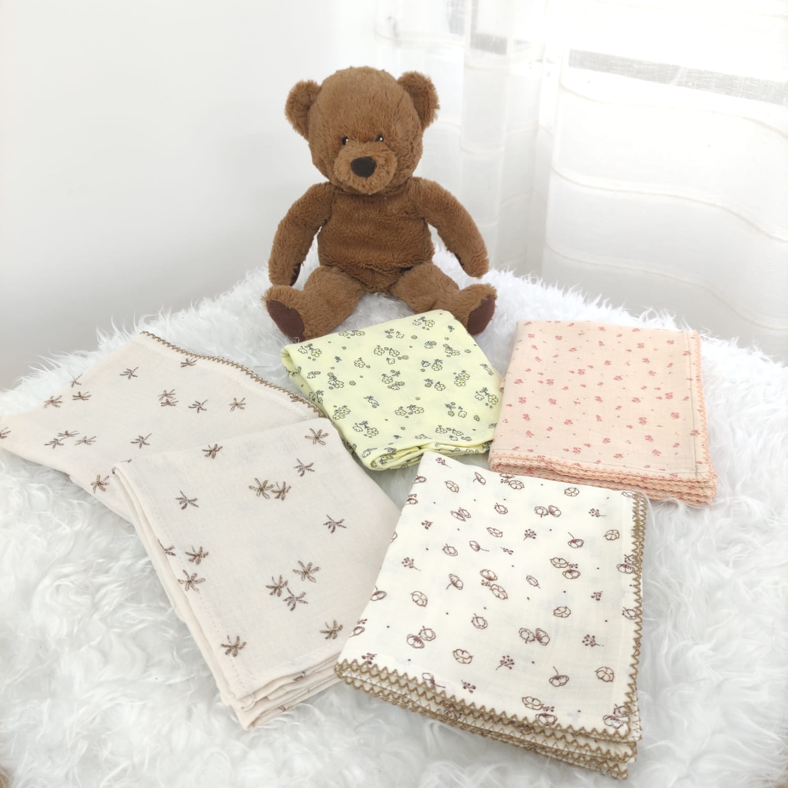 Fralda em musselina Florzinhas, em algodão e com padrão de flores, perfeito para garantir o aconhego dos mais pequeninos. Disponível com acabamento de bainha ou com "beijinho"