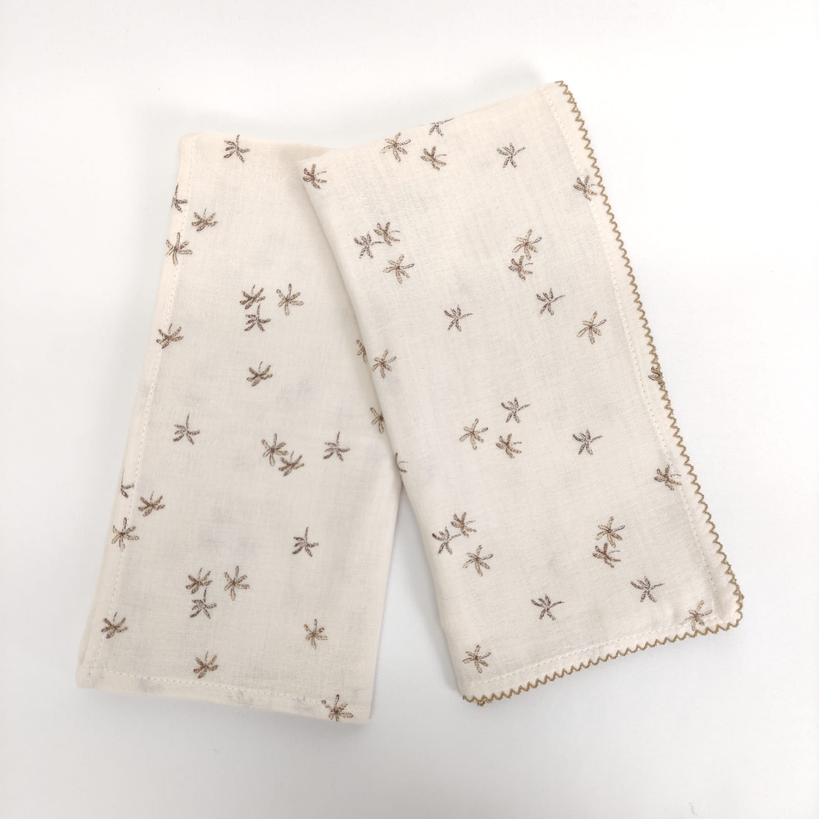 Fralda em musselina Folhas, em algodão e com padrão de pequenas folhas, perfeito para garantir o aconhego dos mais pequeninos. Disponível com acabamento de bainha ou com "beijinho"