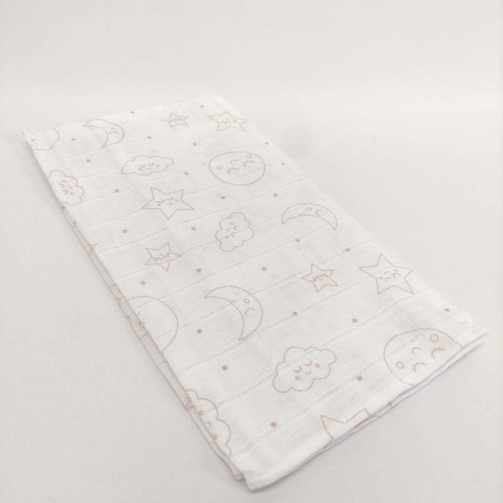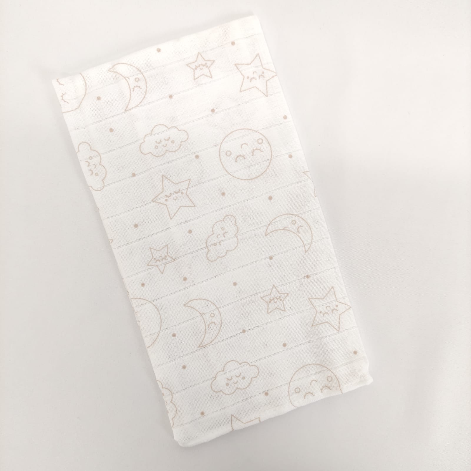 Fralda em algodão muito macia. Pode usá-la para cobrir o bebé ou para o proteger do sol e vento durante os passeios ao ar livre. Muito fácil de lavar e seca rapidamente.