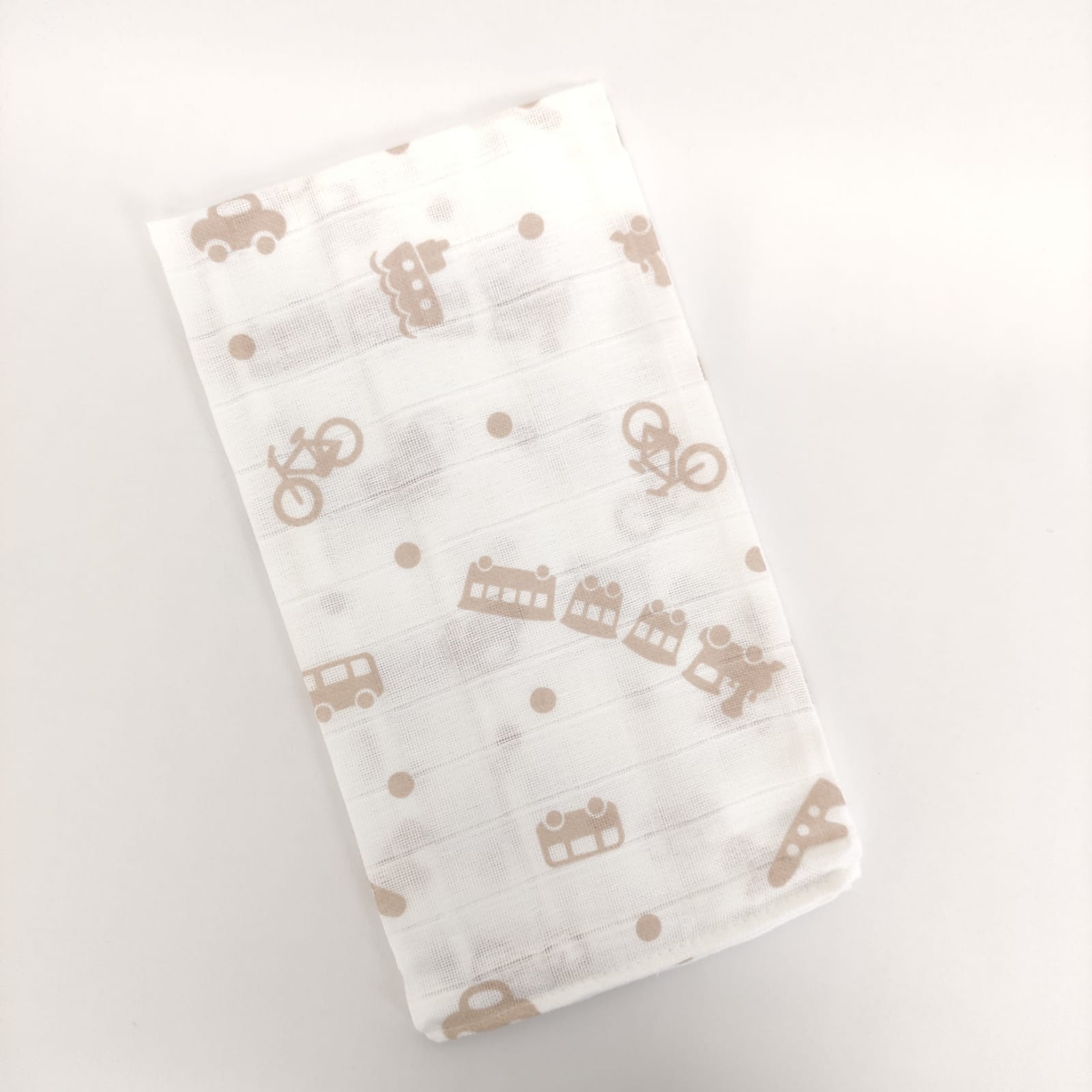 Fralda em algodão muito macia. Pode usá-la para cobrir o bebé ou para o proteger do sol e vento durante os passeios ao ar livre. Muito fácil de lavar e seca rapidamente.