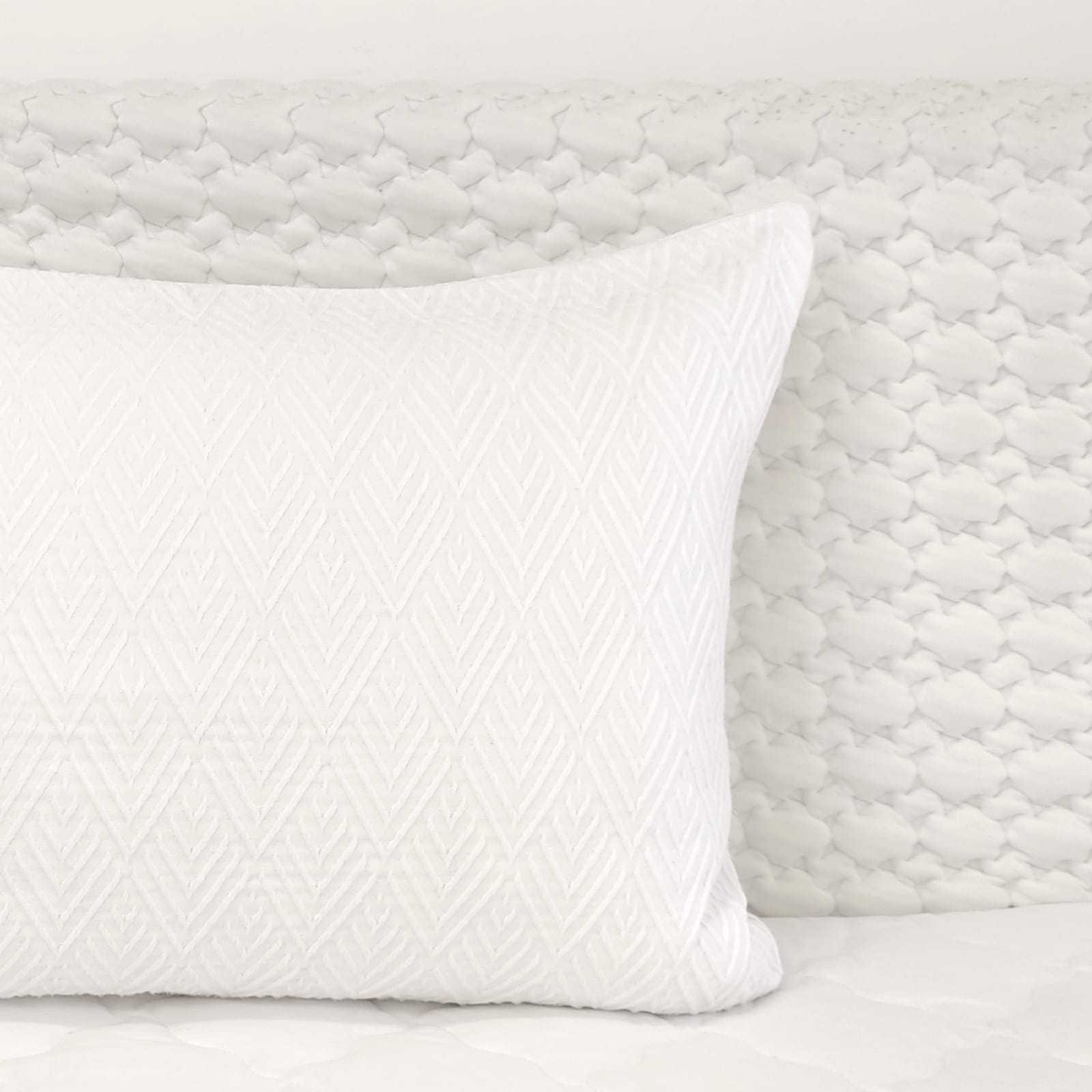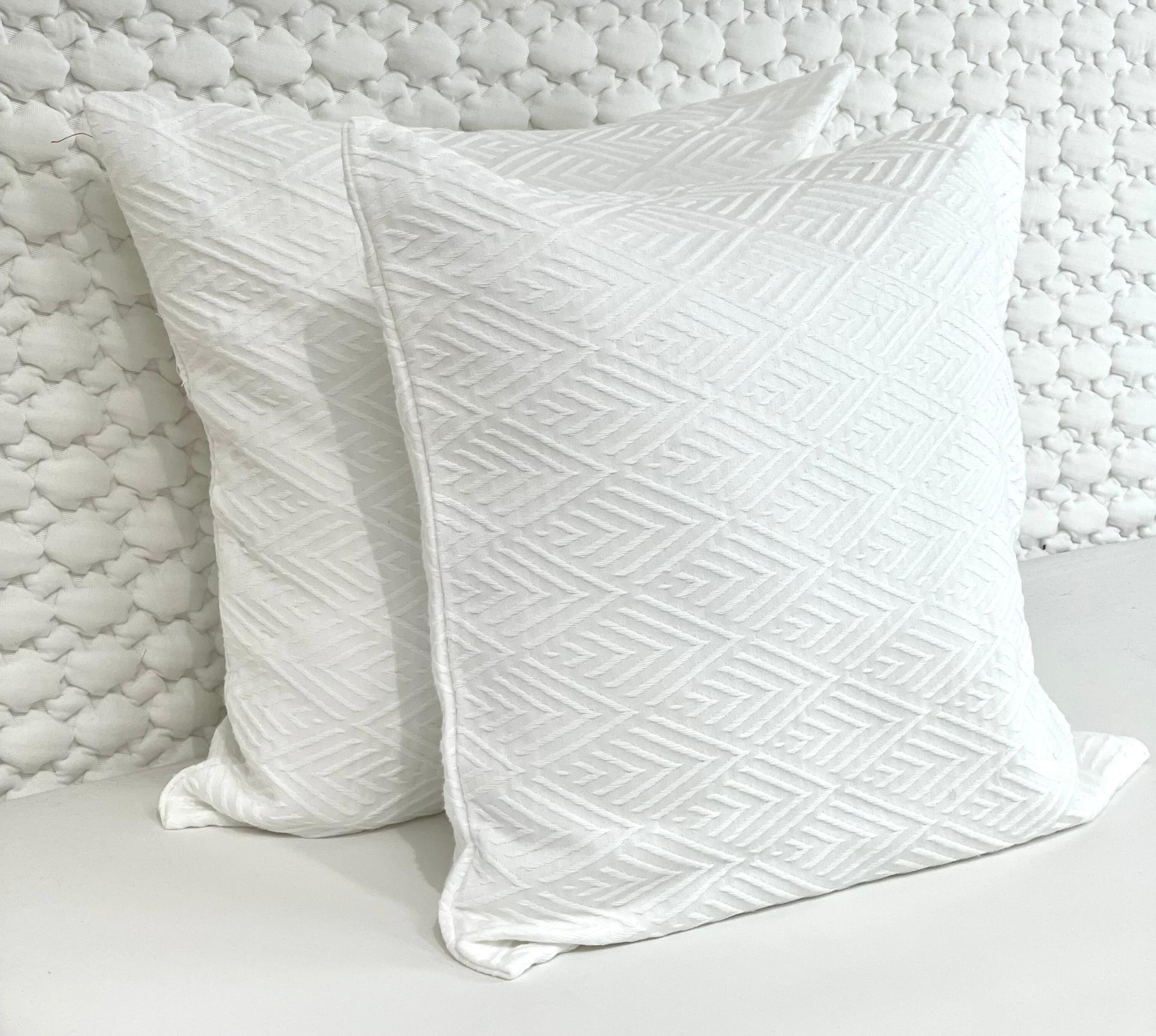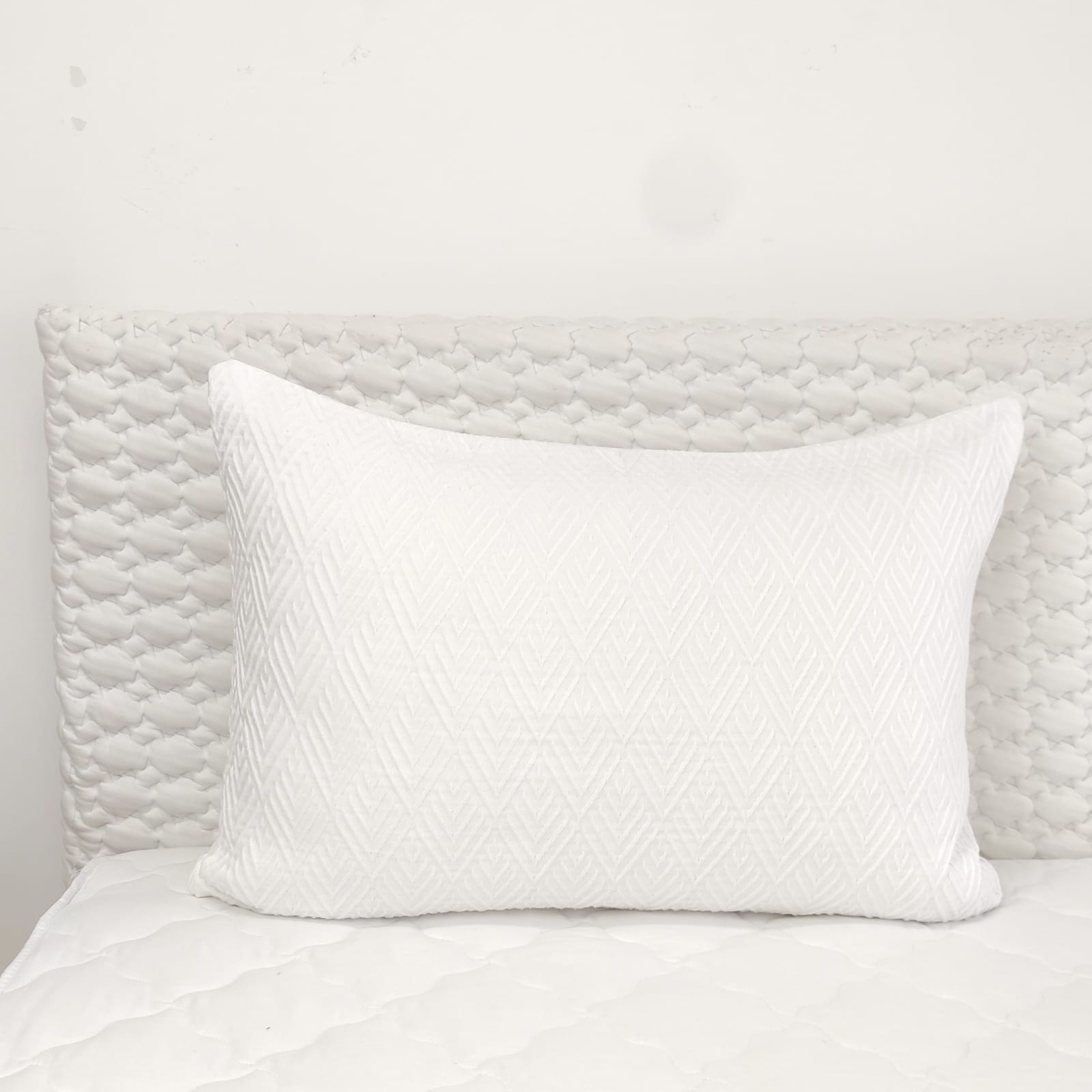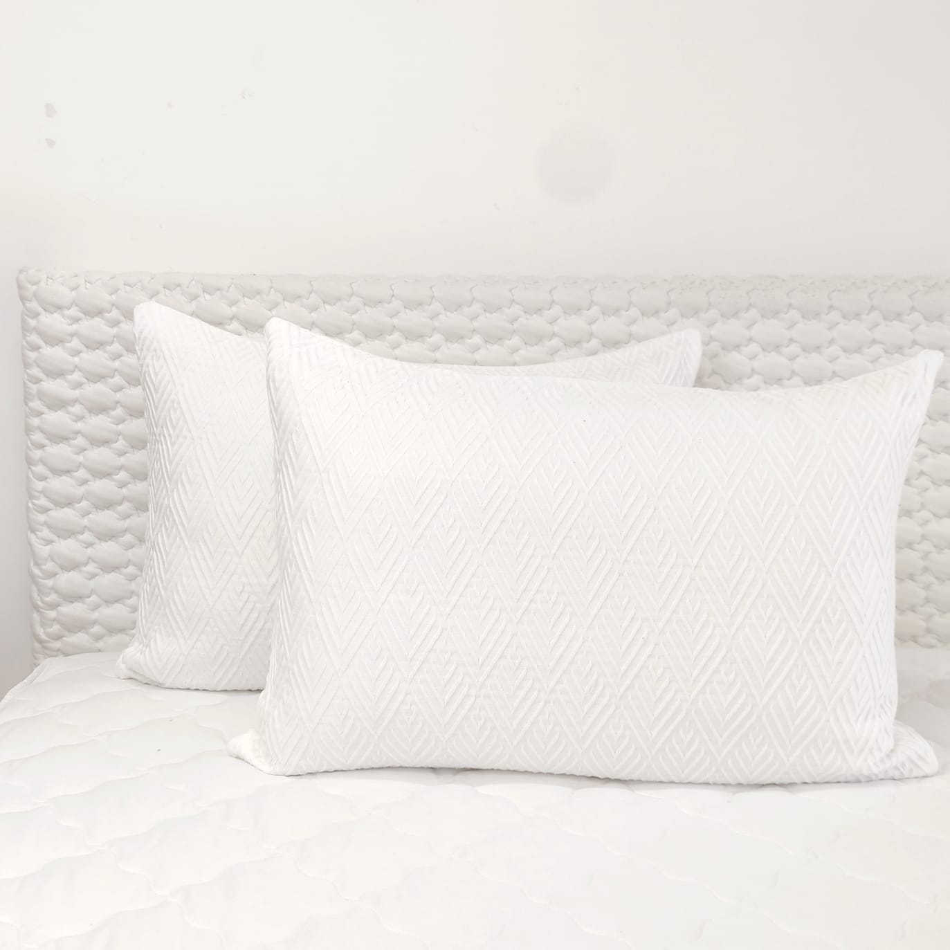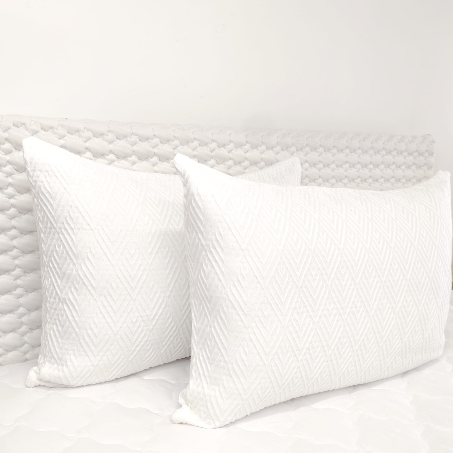 Fronha de almofada decorativa com fecho. Modelo branco com padrão relevo.