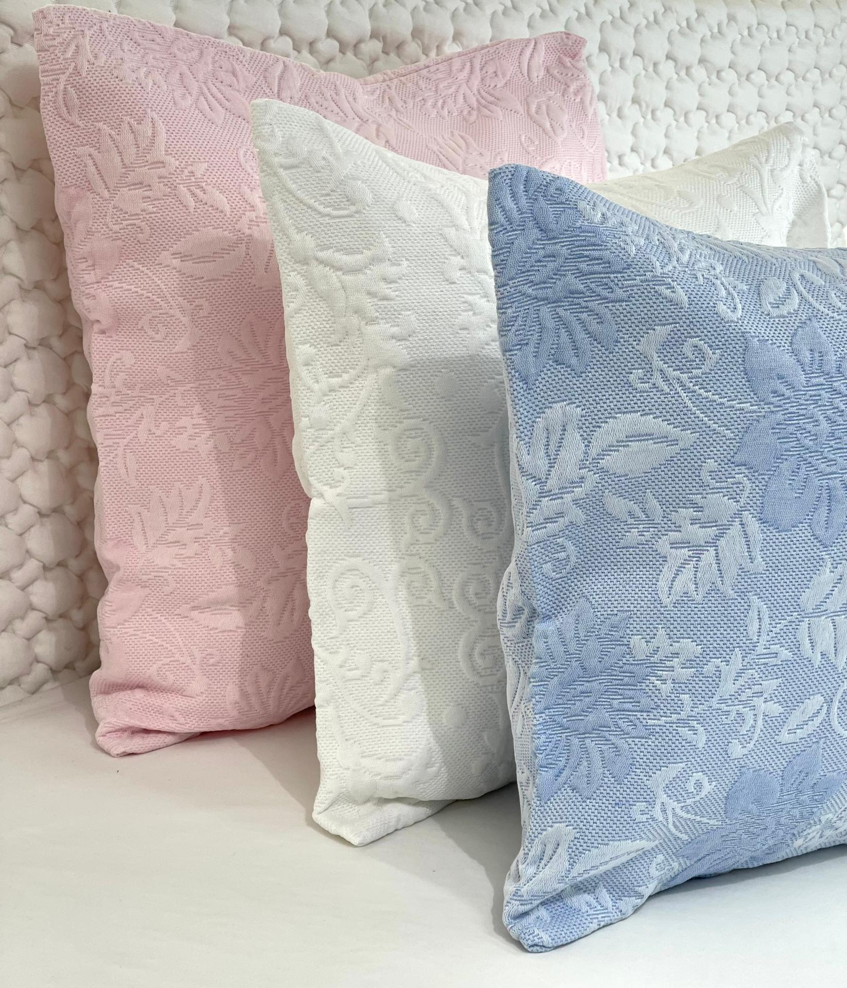 Fronha de almofada decorativa com fecho. Modelo disponível em várias cores.