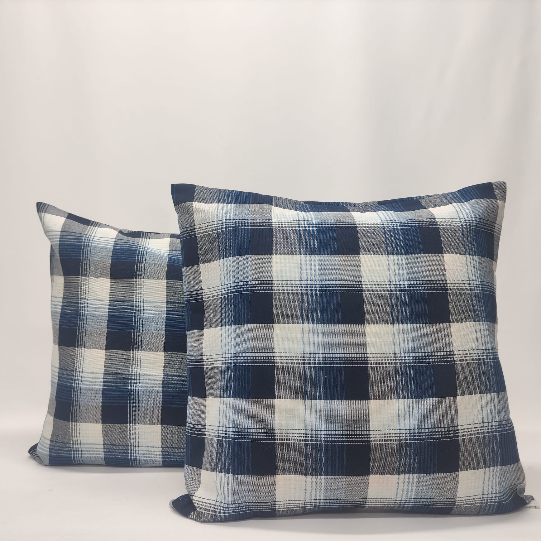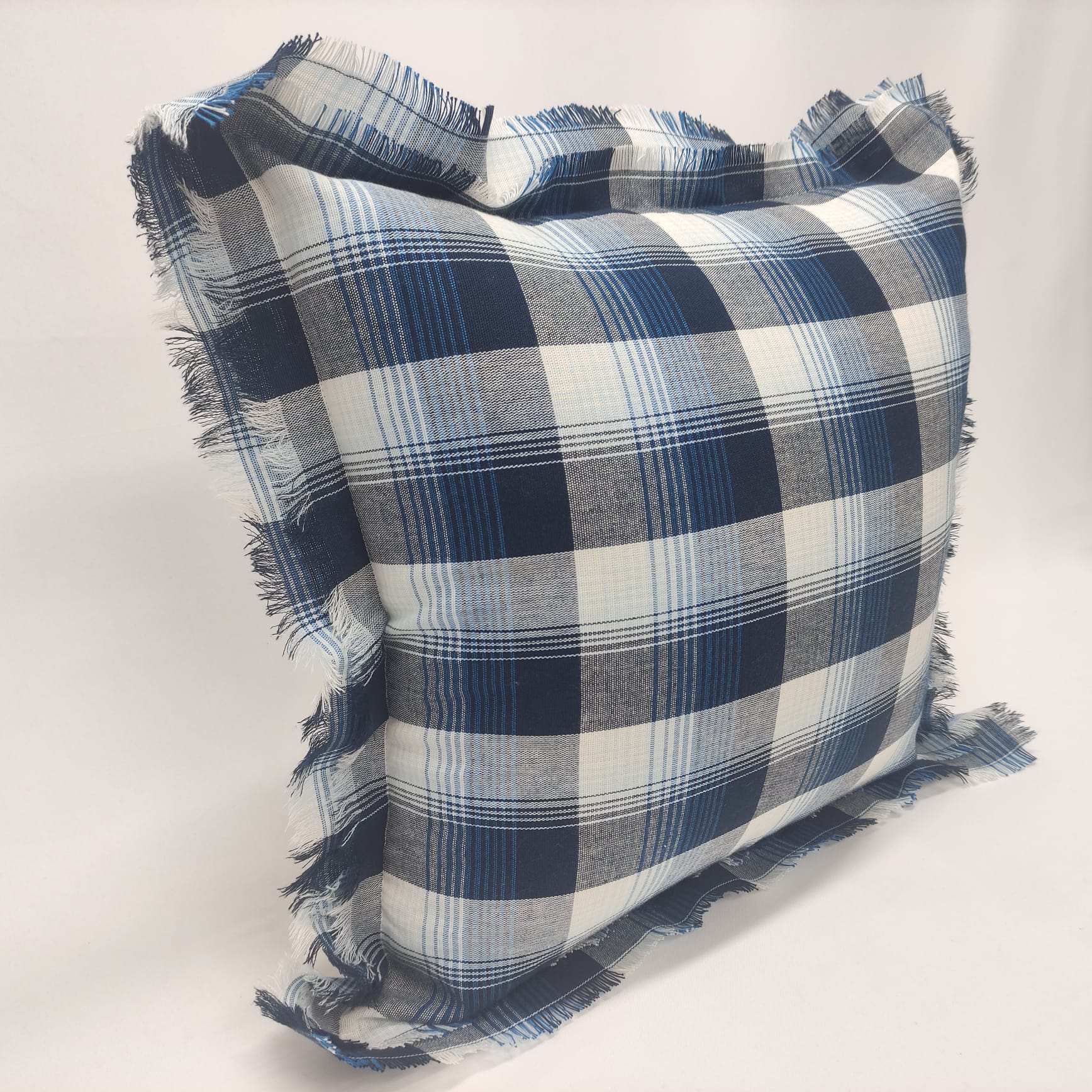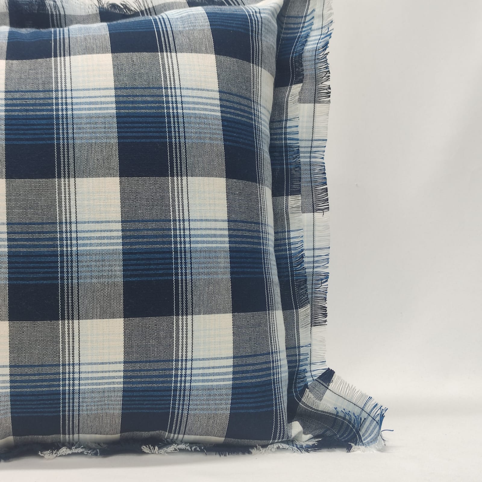 Fronha de almofada decorativa em algodão, padrão xadrez em tons de azul. Disponivel em vários tamanhos. Opção de acabamento com folho desfiado, ou com bainha normal.