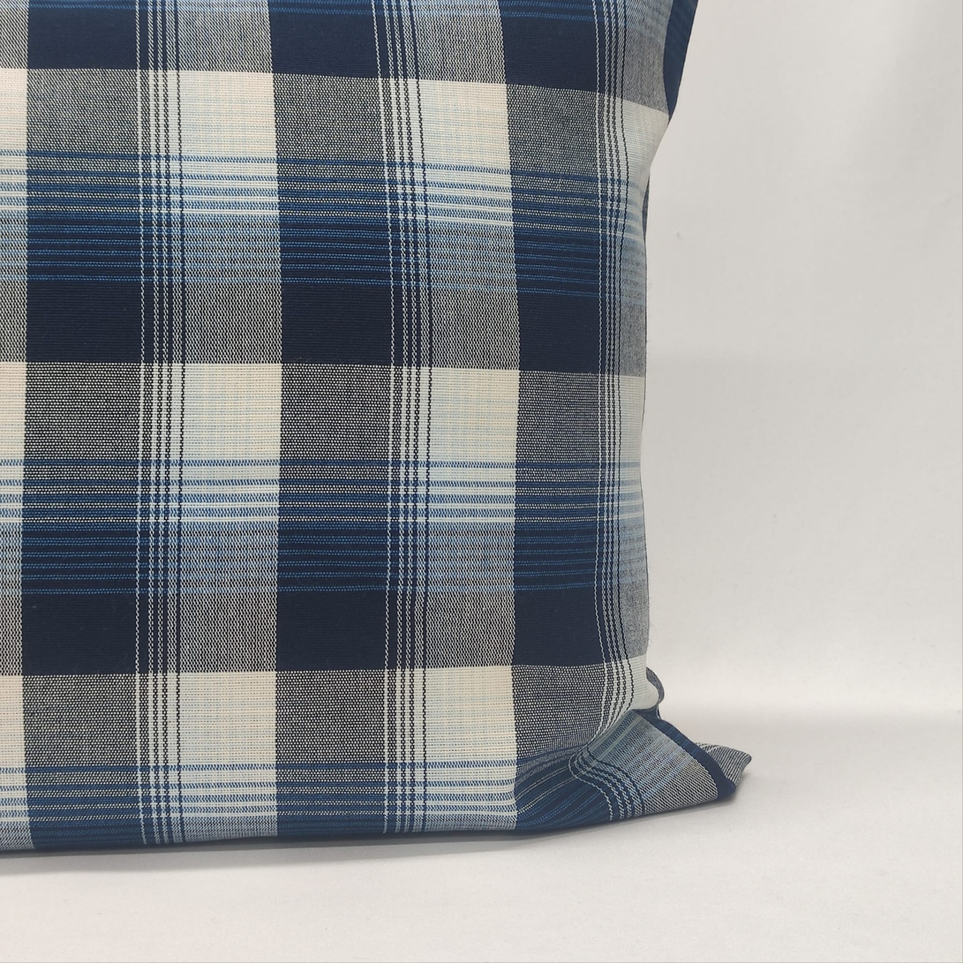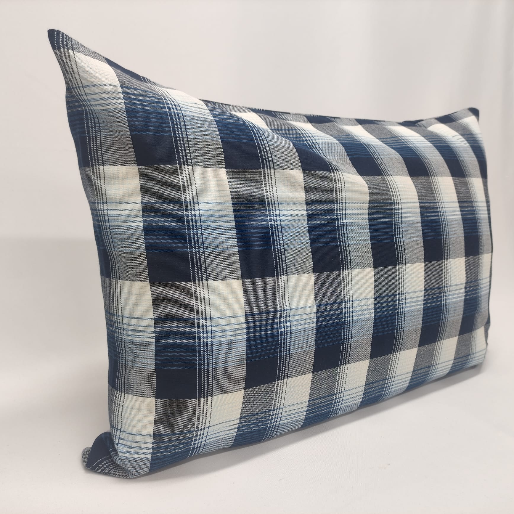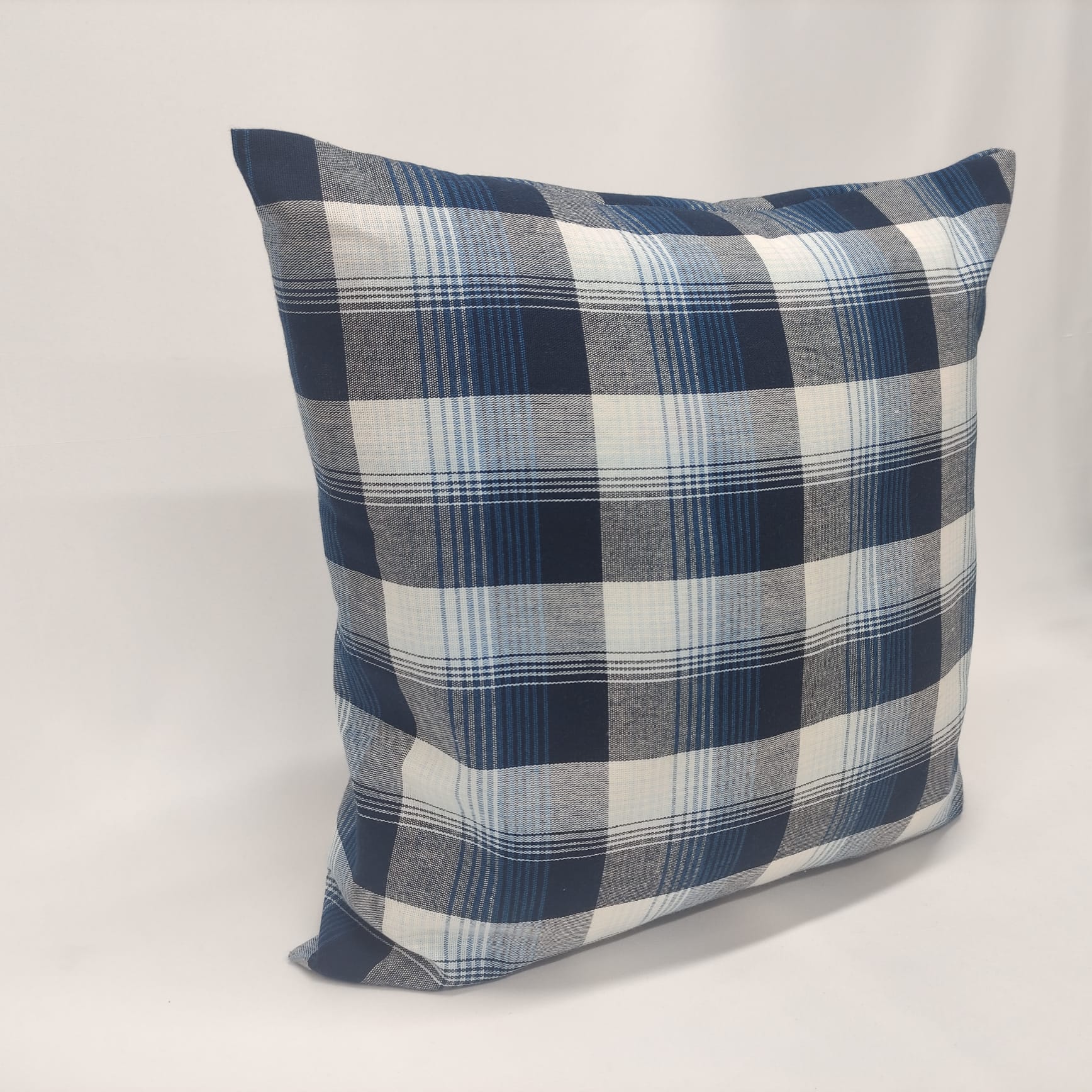 Fronha de almofada decorativa em algodão, padrão xadrez em tons de azul. Disponivel em vários tamanhos. Opção de acabamento com folho desfiado, ou com bainha normal.